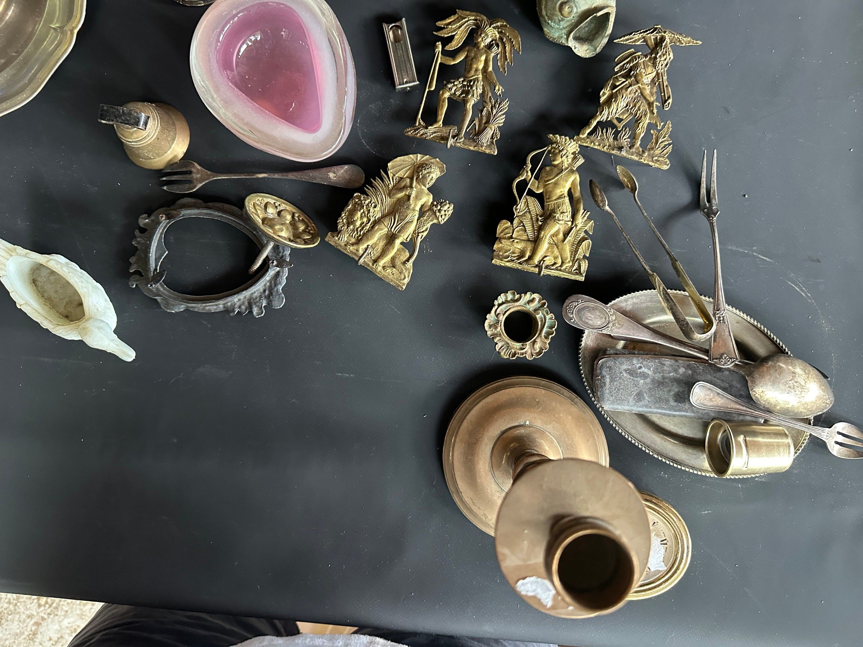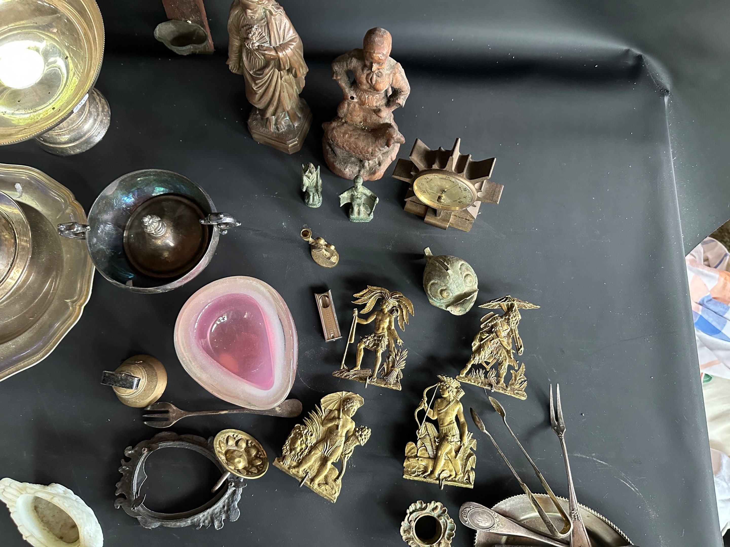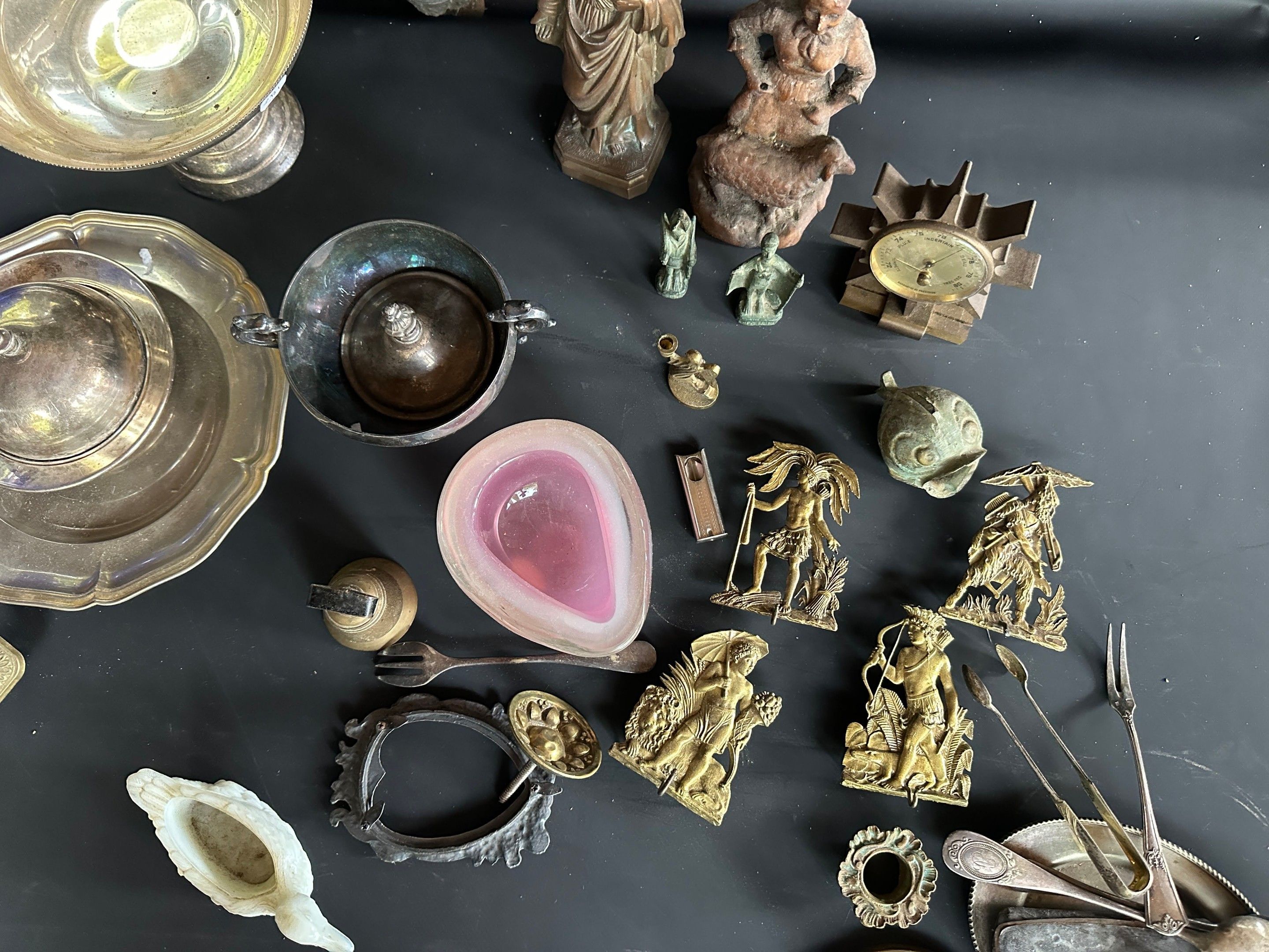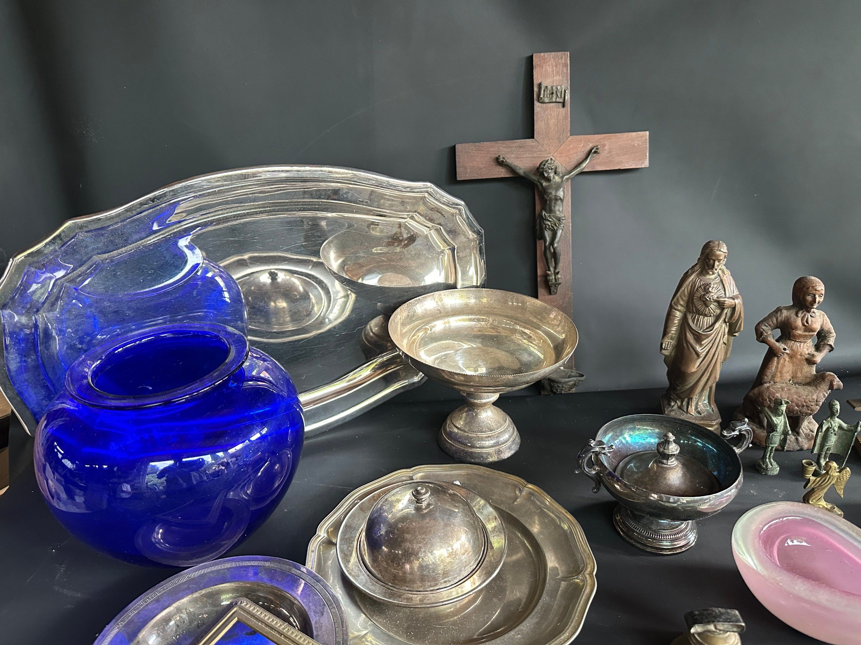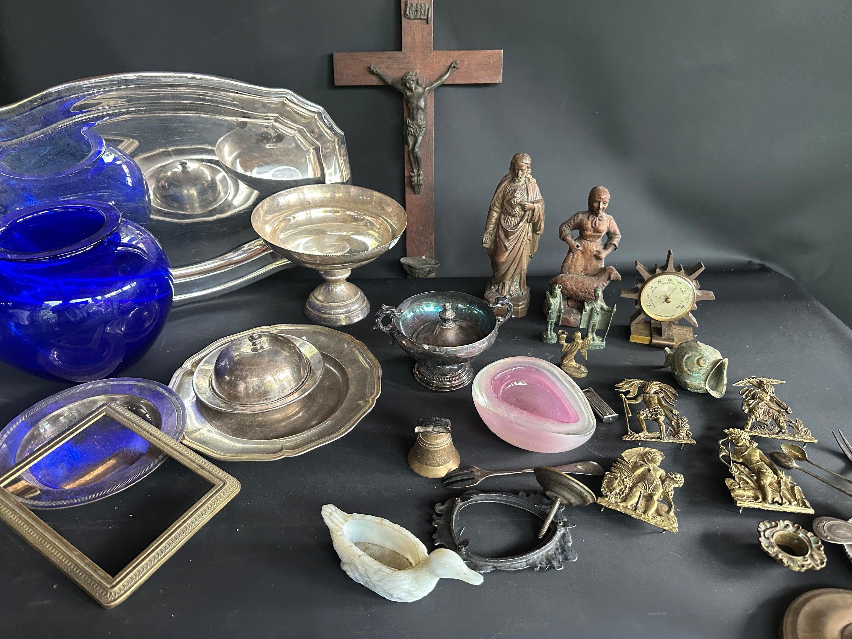 Lot including crucifix, vase, silver plated metal and brass …
