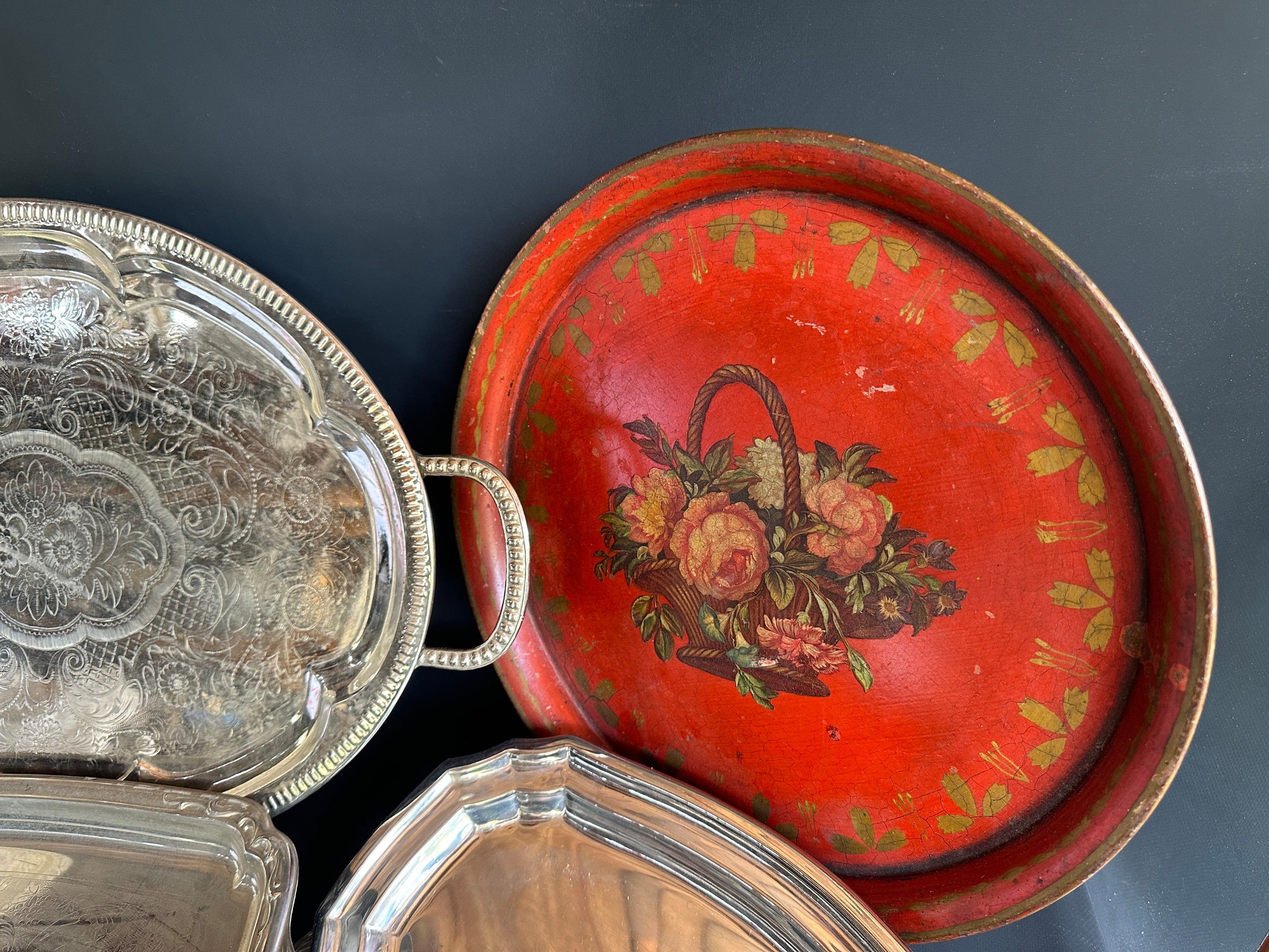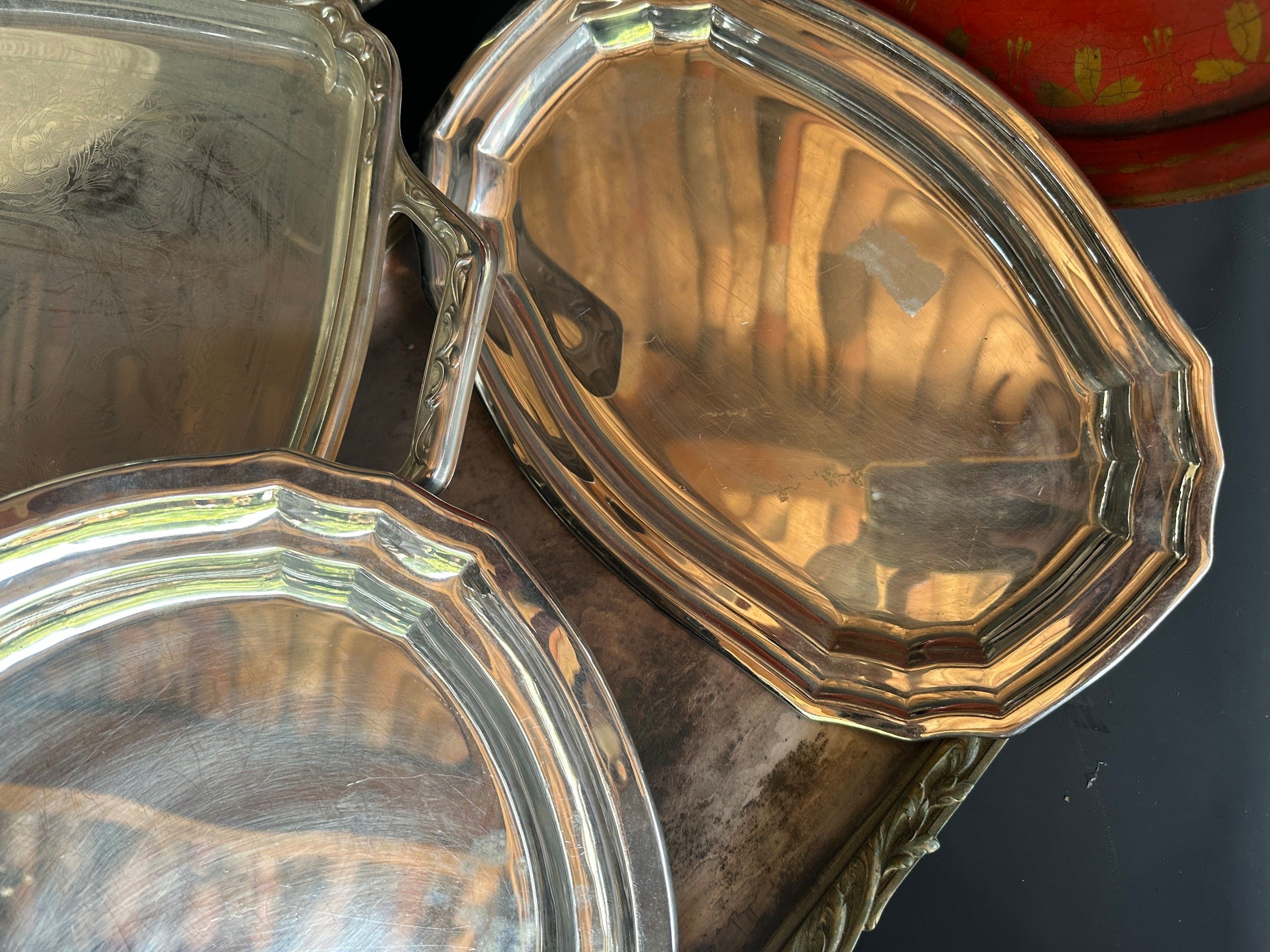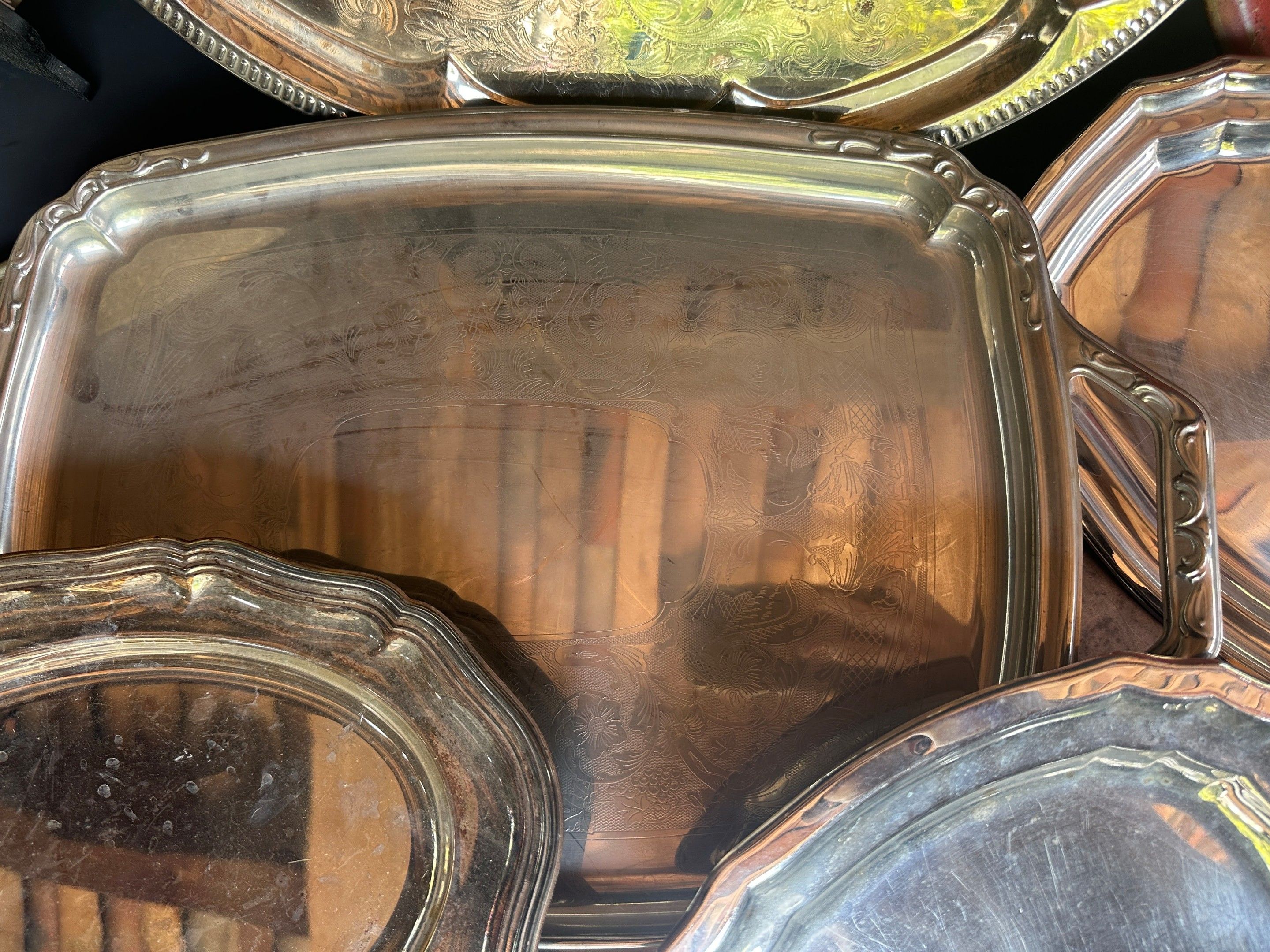 Set of silver plated dishes and trays, sheet metal and vario…