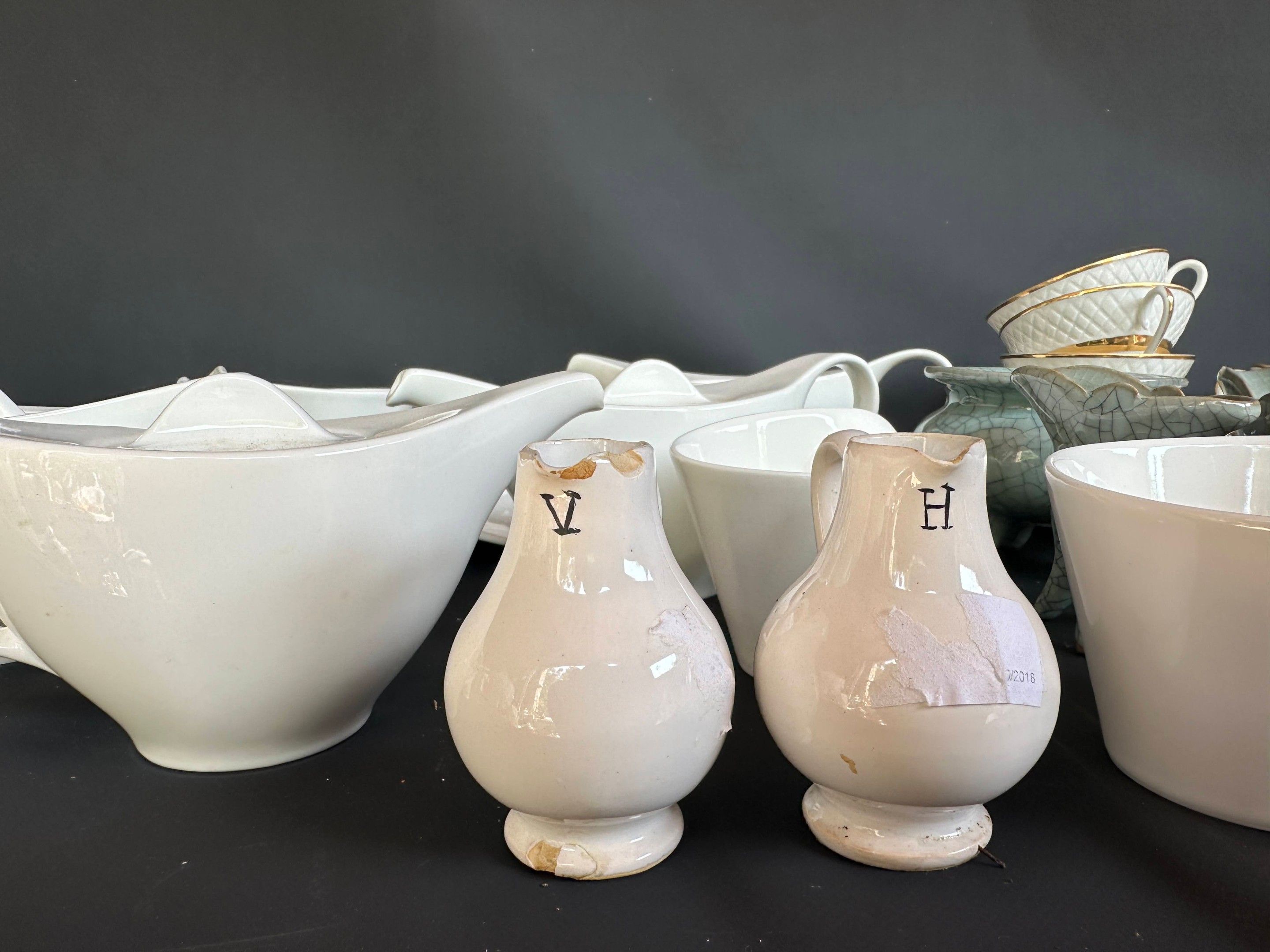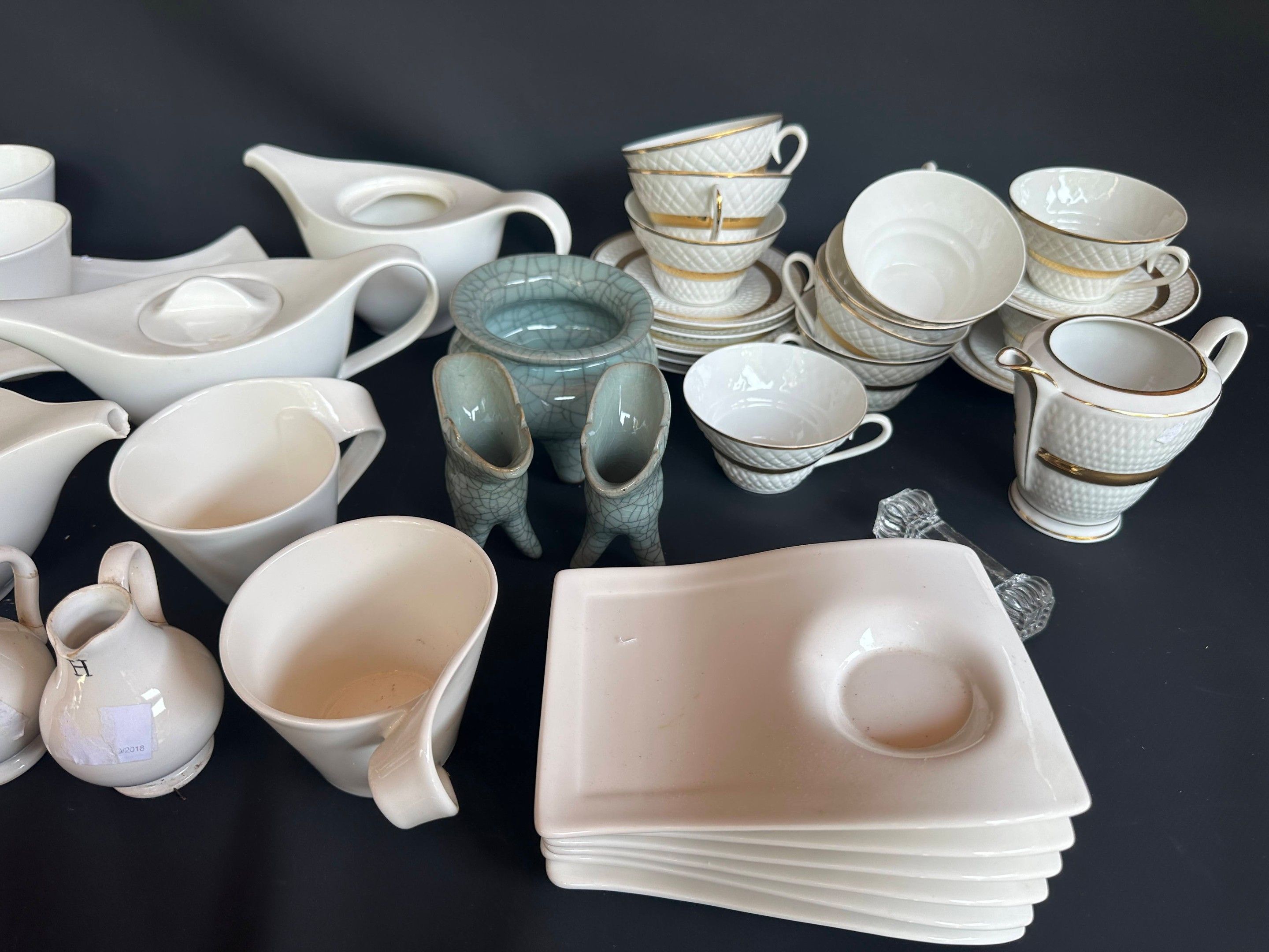 Villeroy et boch, part of services (chocolate cups) and coffee pot or pourer, plates, saucers, and part of coffee services A BLIN in and various earthenware plates