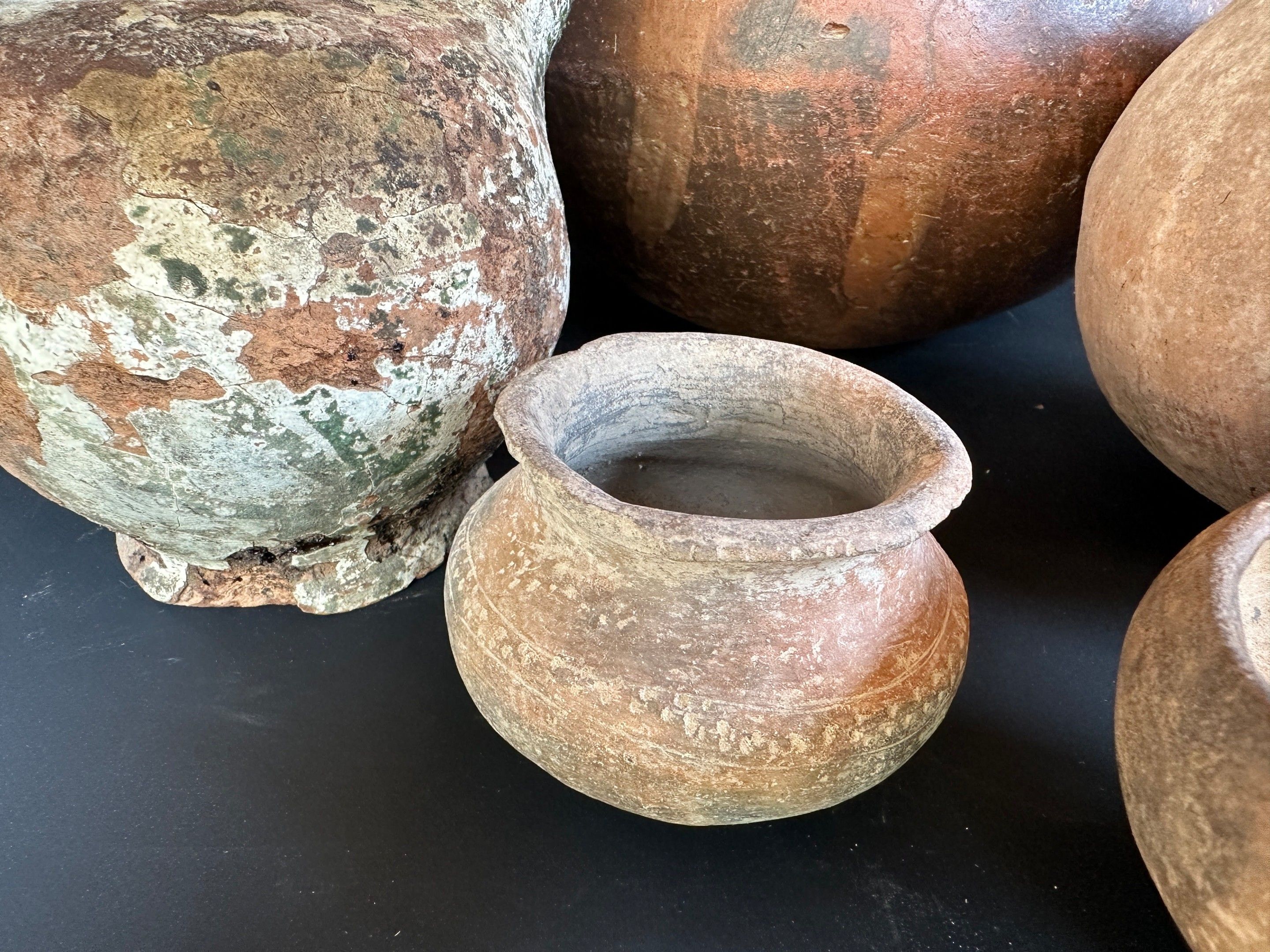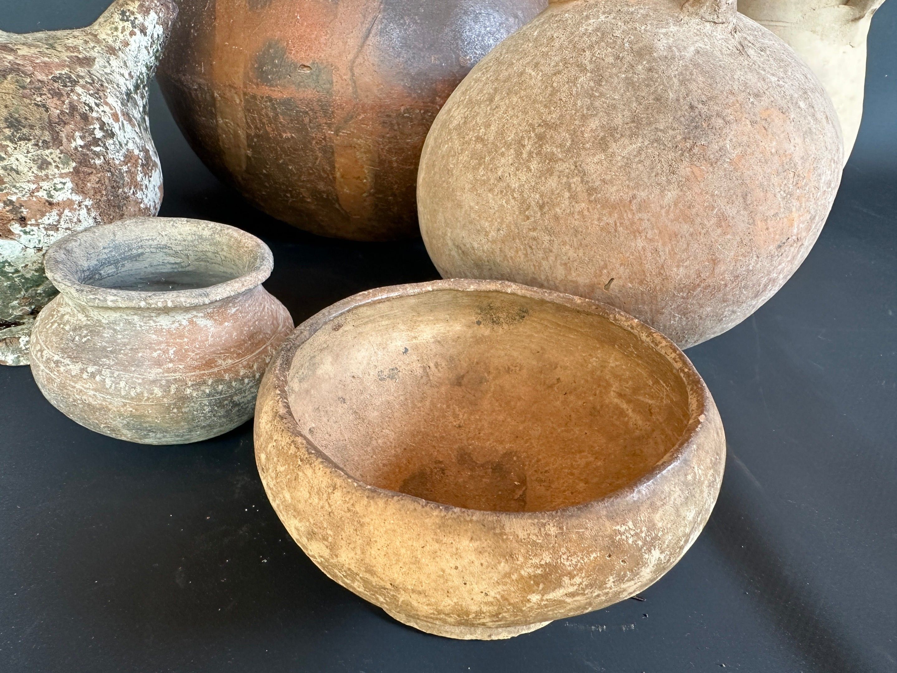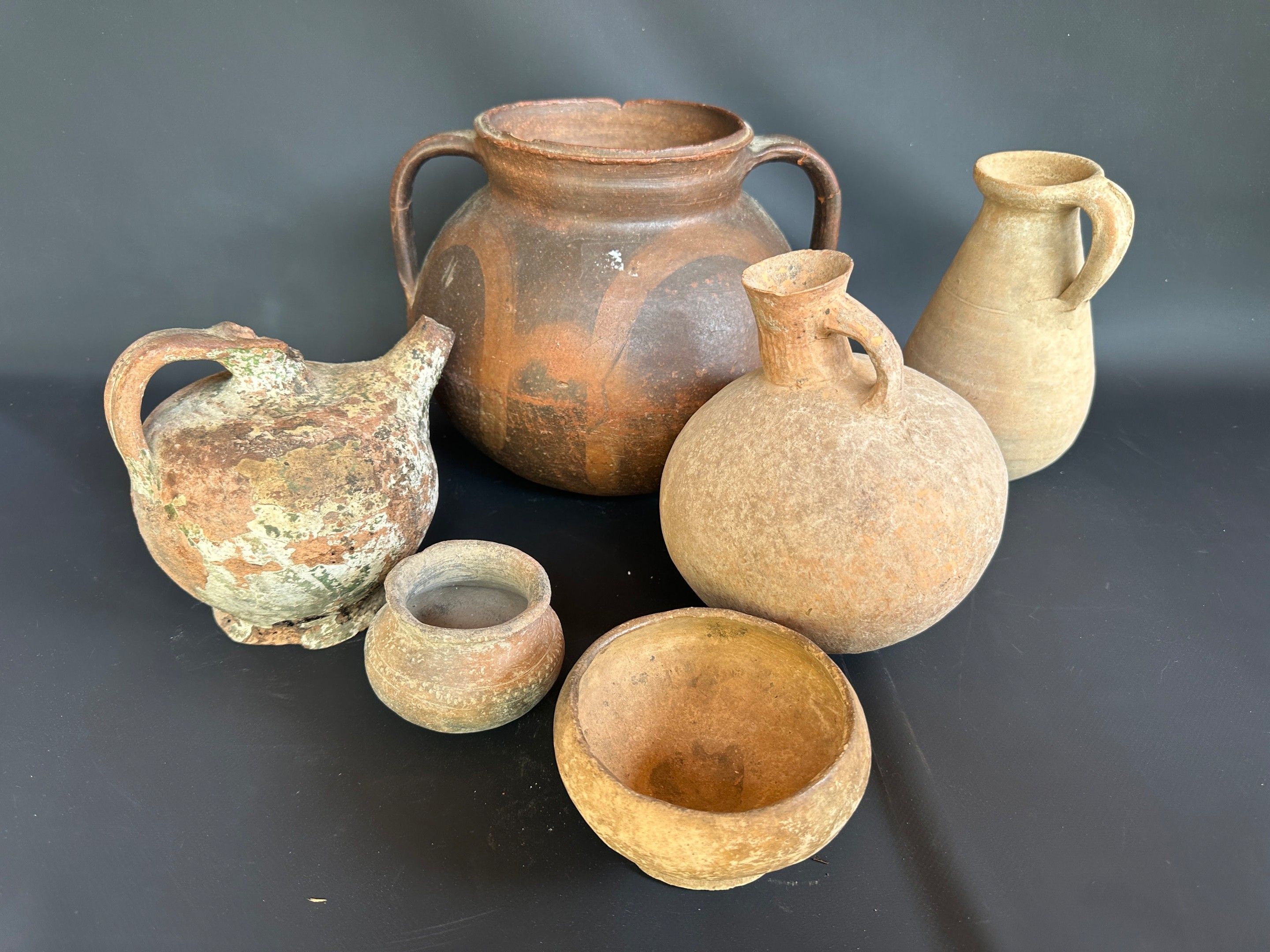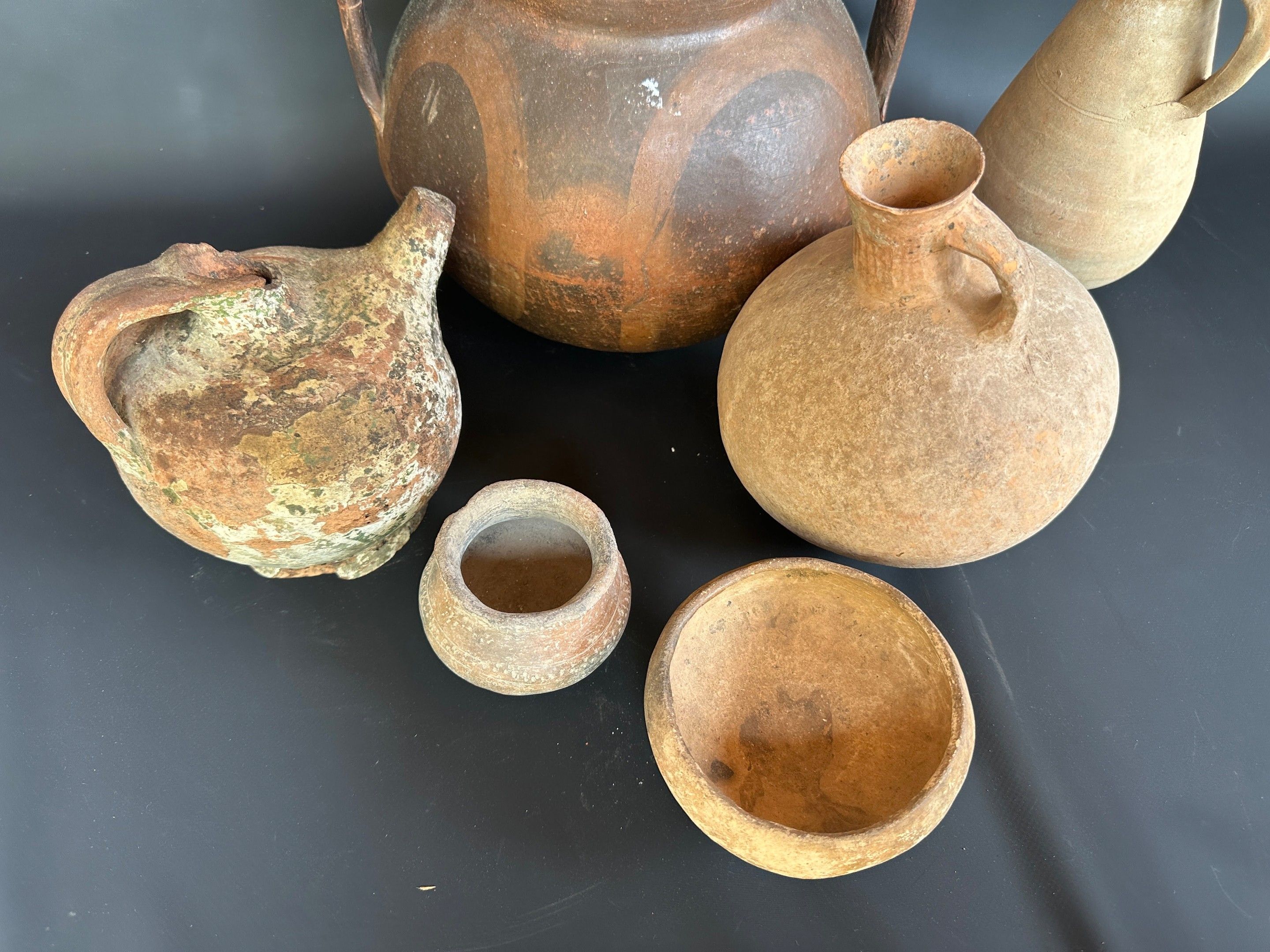 Batch of old pottery out of cooked ground, a large polychrome jar (North Africa)