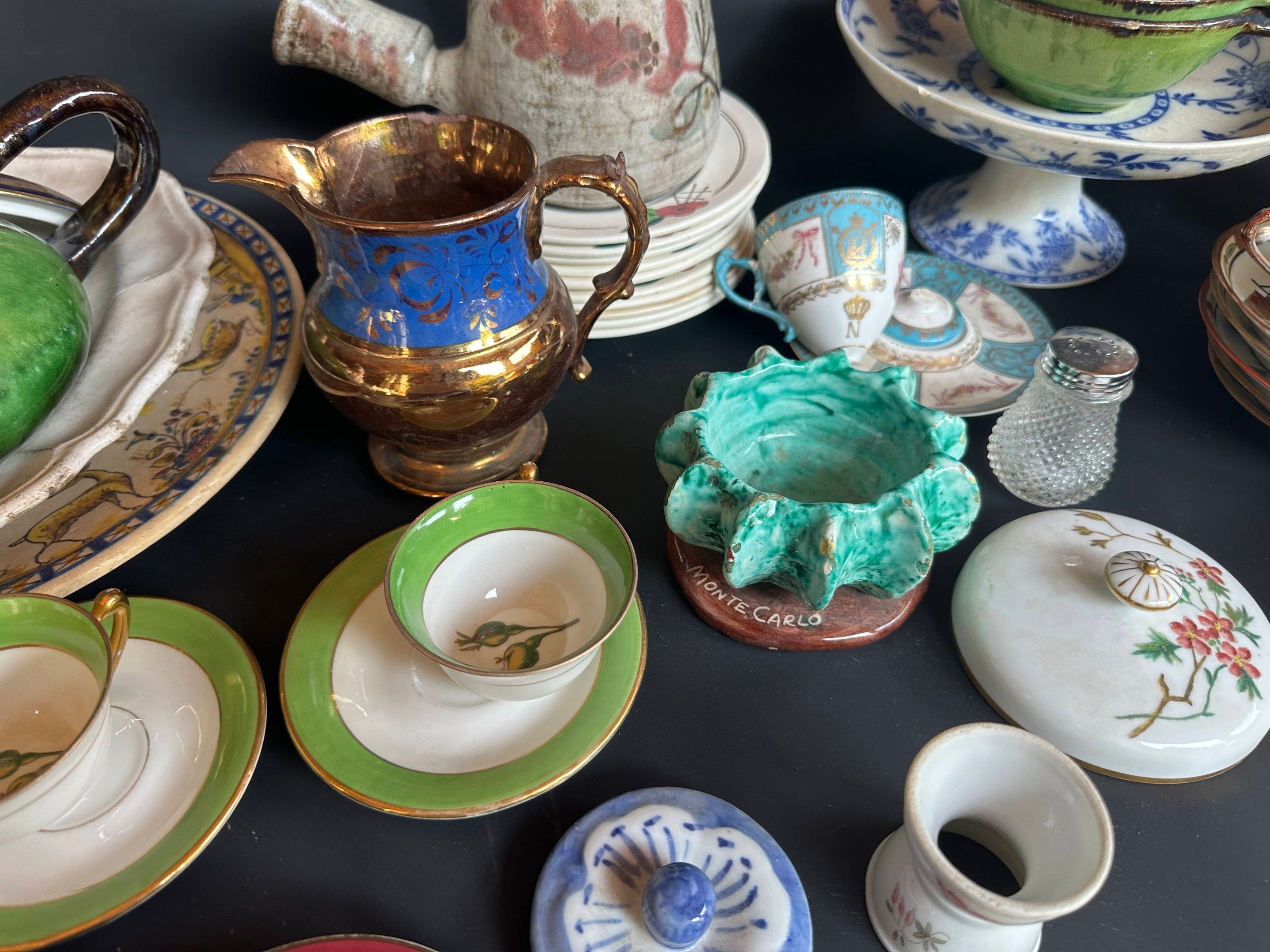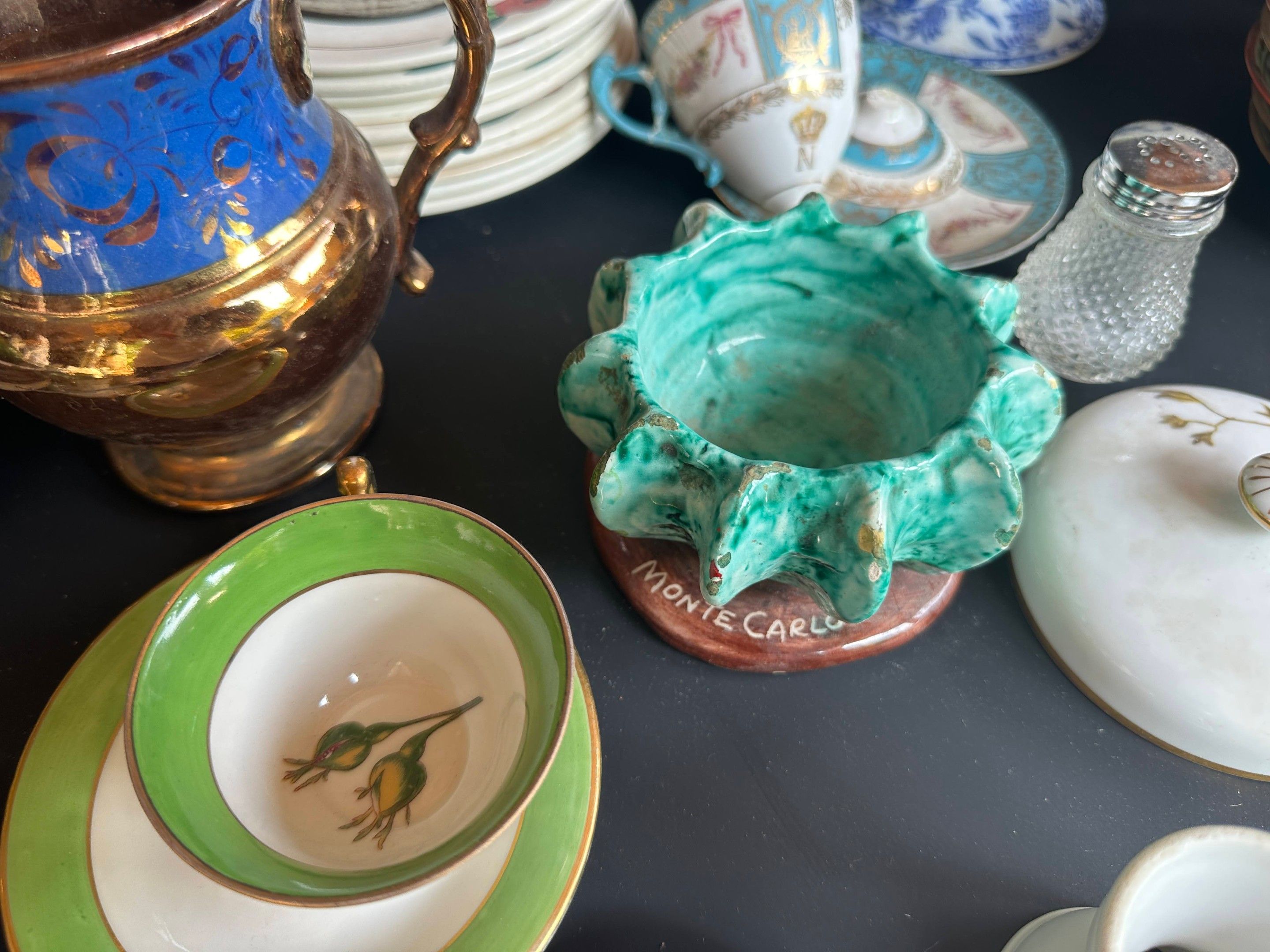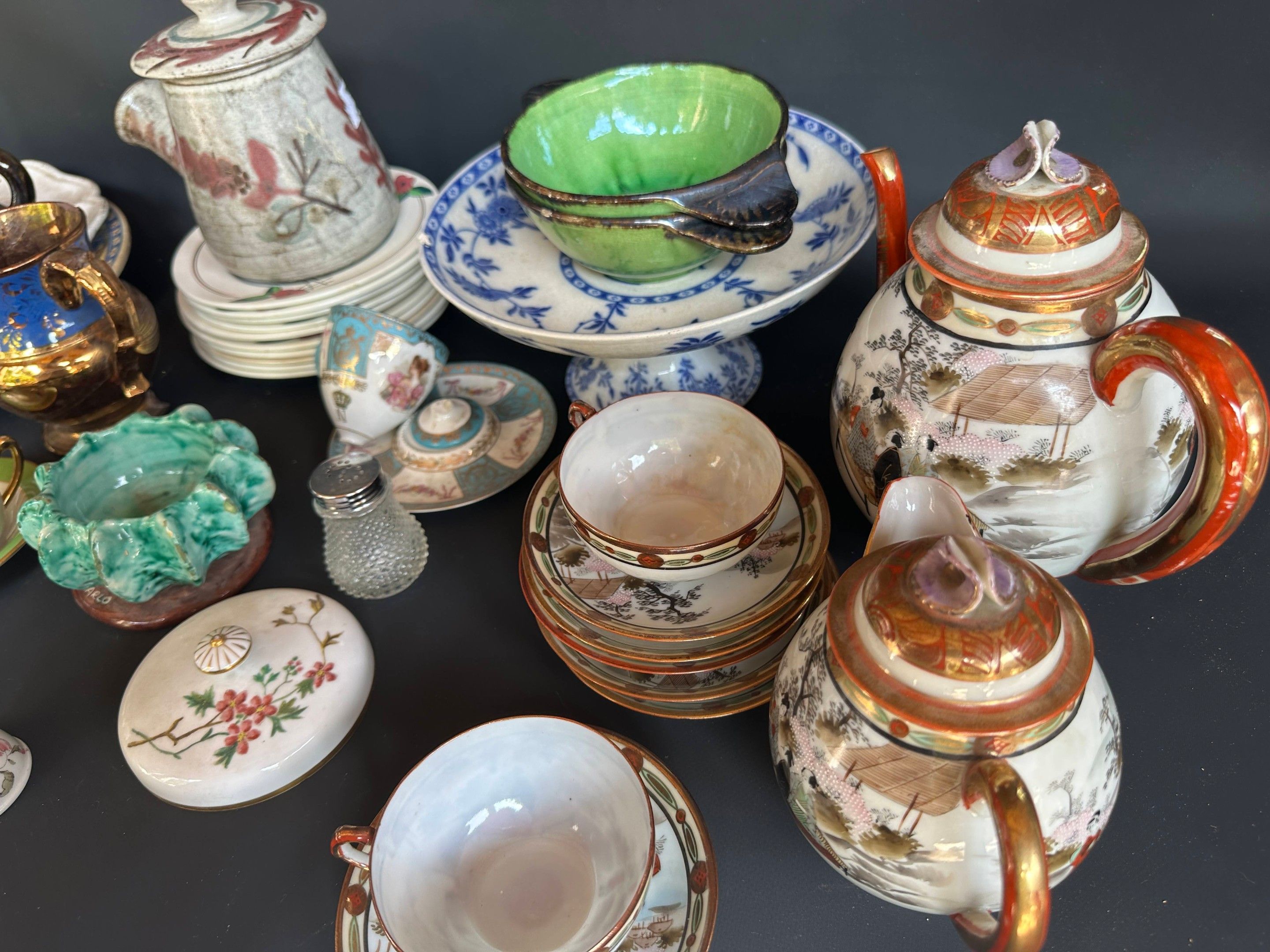 lot including cut crystal cup, jersey pot, ashtray in barbotine from Monte Carlo and suite of coffee cups and saucers, Japanese porcelain service including saucers, milk pot, teapot, Provençal earthenware