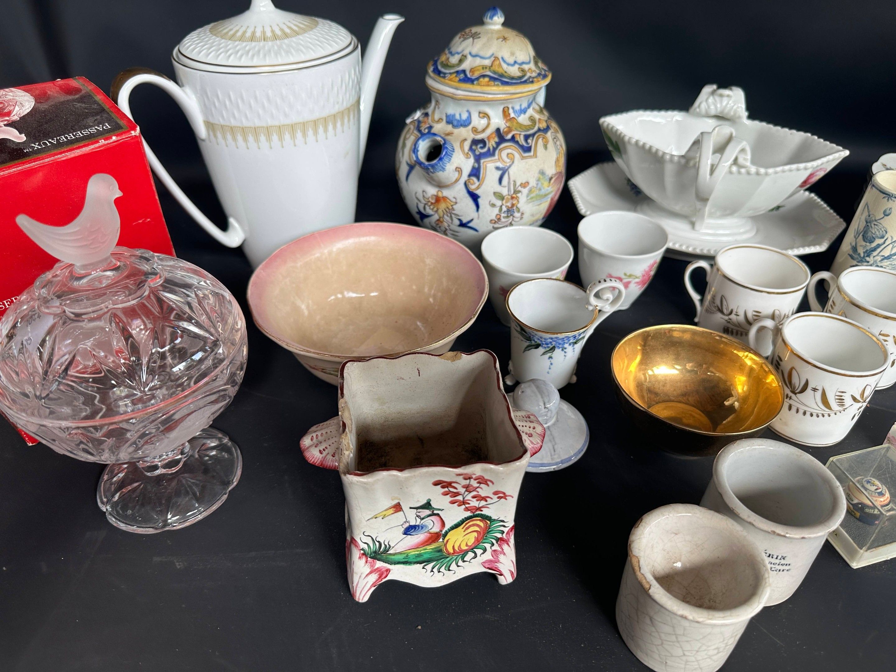 Lot including sauceboat with adherent tray, crystal candy box n broc, coffee pot and a pot in earthenware of the east with Chinese dcor.