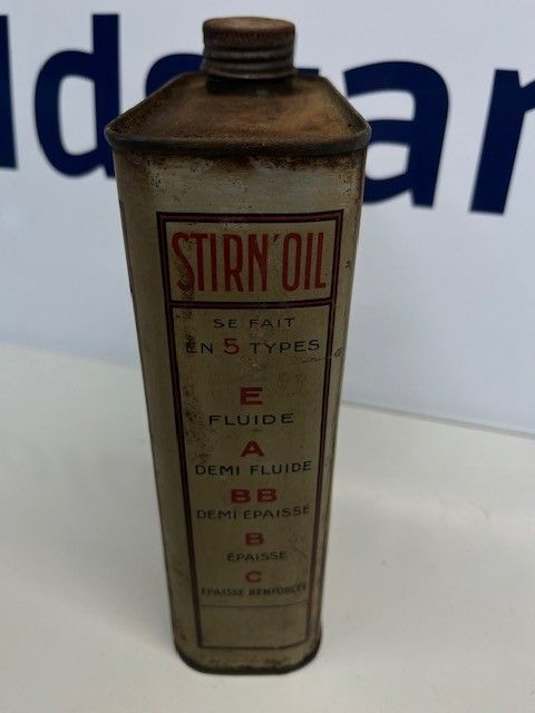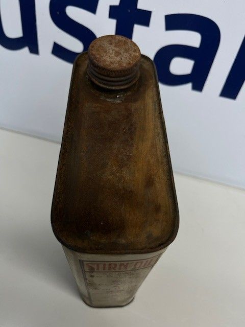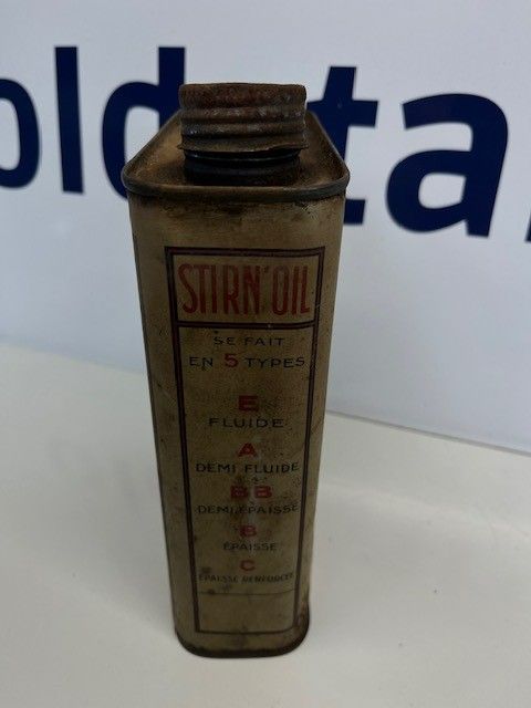 Rare, VINTAGE OIL BOTTLE of the brand STIRN OIL "the queen of oils". Can in original condition.