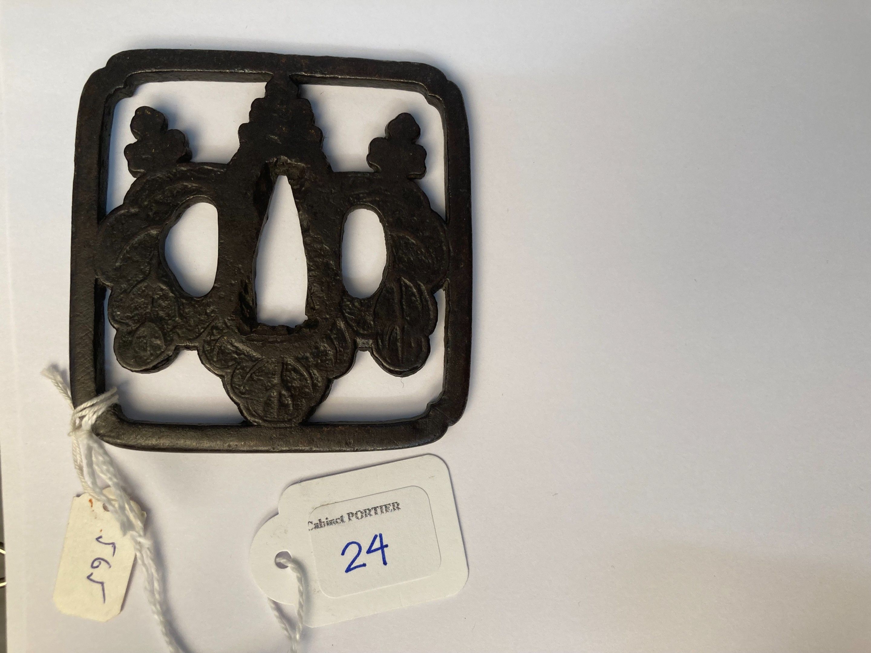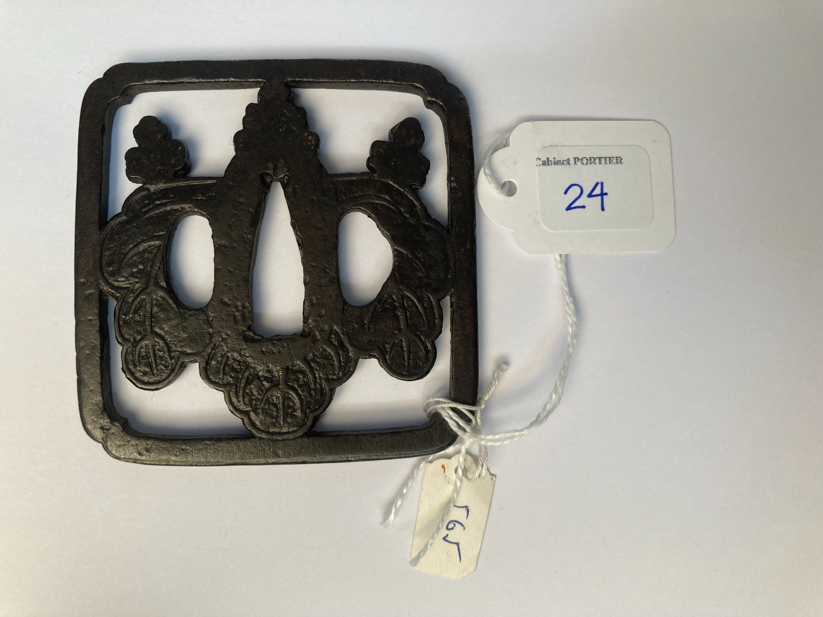 JAPAN - MIDDLE EDO period (1603 - 1868), - Sumi iri kaka gata in iron with a paulownia flower in yo-sukashi. Unsigned. - H. 7,2 cm - - Expert : Cabinet Portier