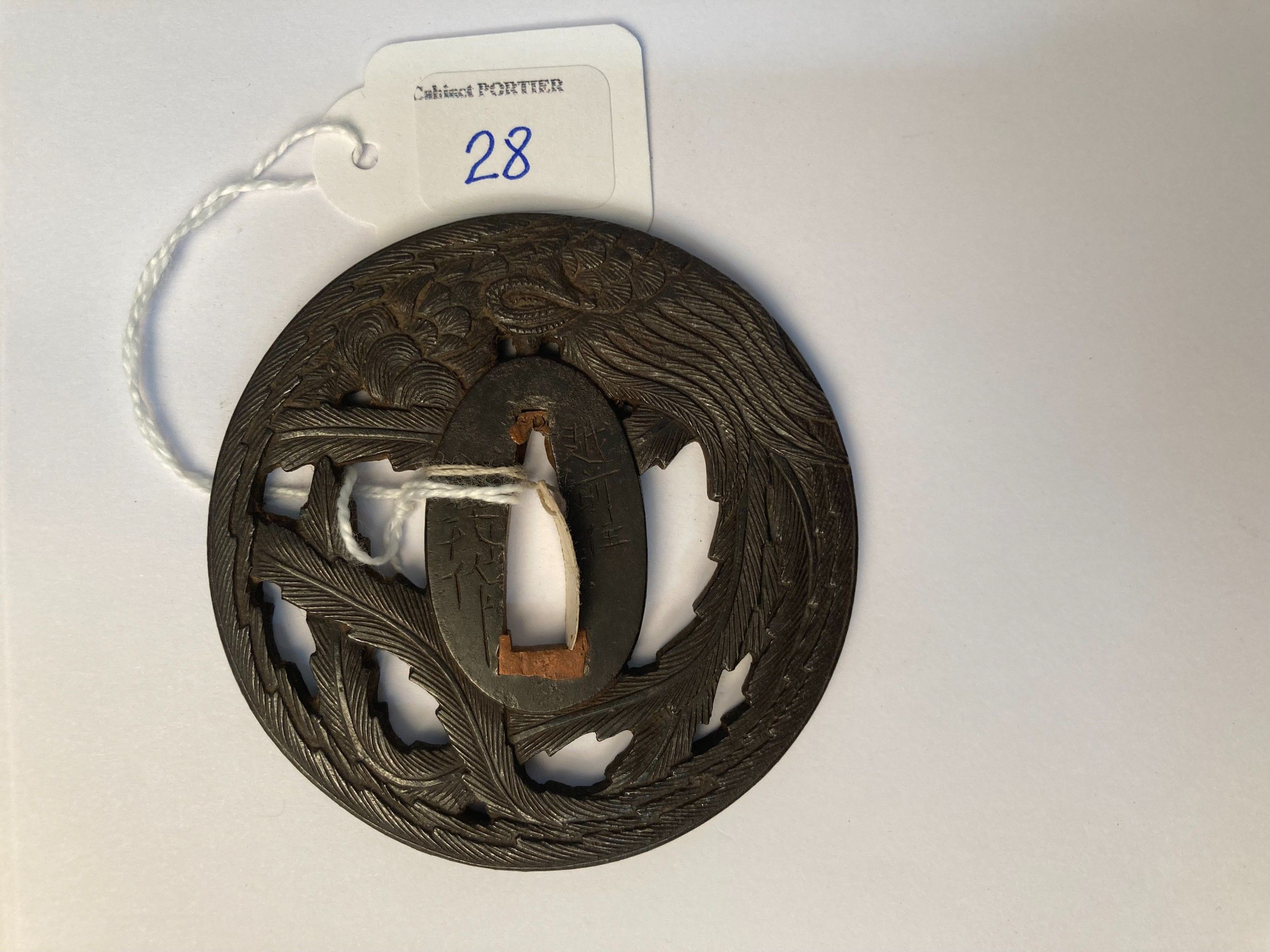 JAPAN, KINAI SCHOOL - EDO period (1603 - 1868), 19th century - Iron Kawari gata in the form of a coiled phoenix. Signed Echizen (no) ju Kinai saku. - H. 7,2 cm - - Expert : Cabinet Portier