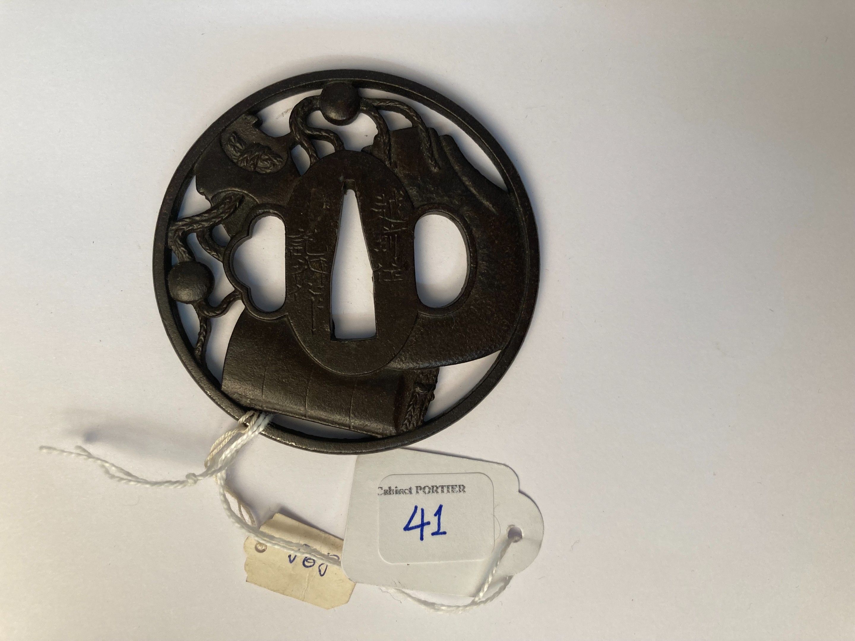 JAPAN, KINAI SCHOOL - EDO period (1603 - 1868), 19th century, - An openwork iron maru gata with a hannya mask, inro and tobako-ire. Signed Echizen (no) ju Kinai saku. - H.7,1 cm - - Reference : A similar tsuba in the Ashmolean museum, Oxford, Accession no. EAX.10515 - - Expert : Cabinet Portier