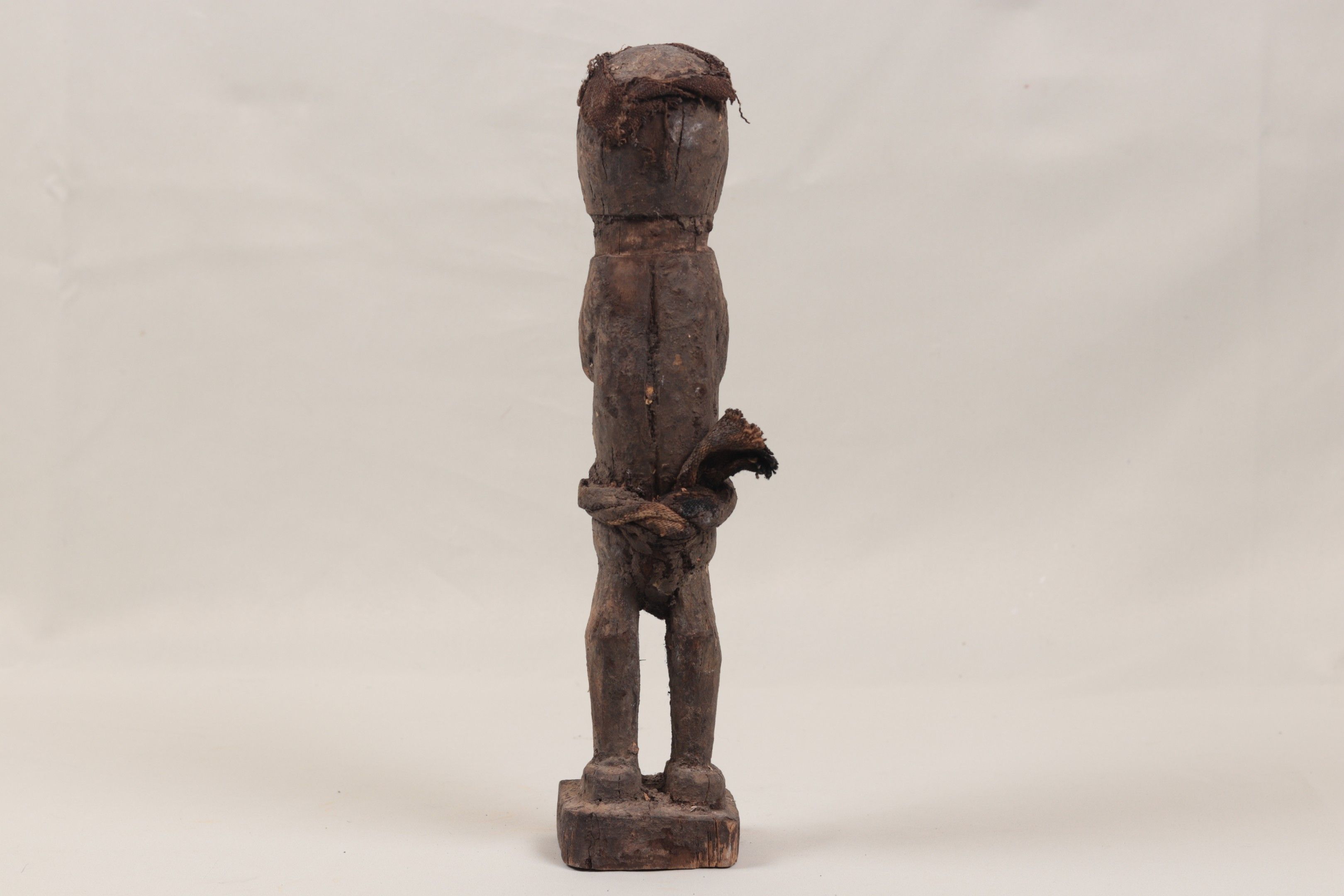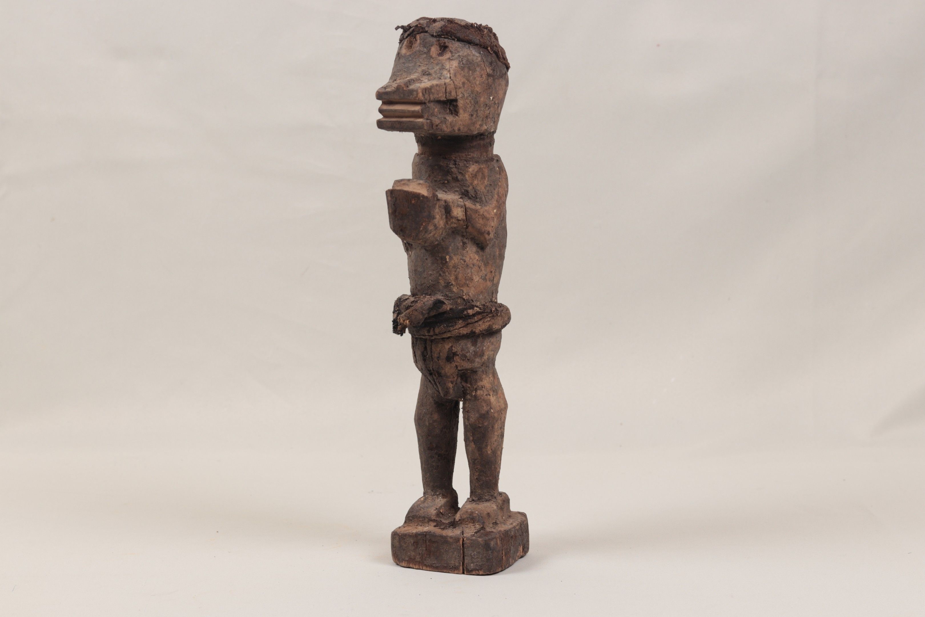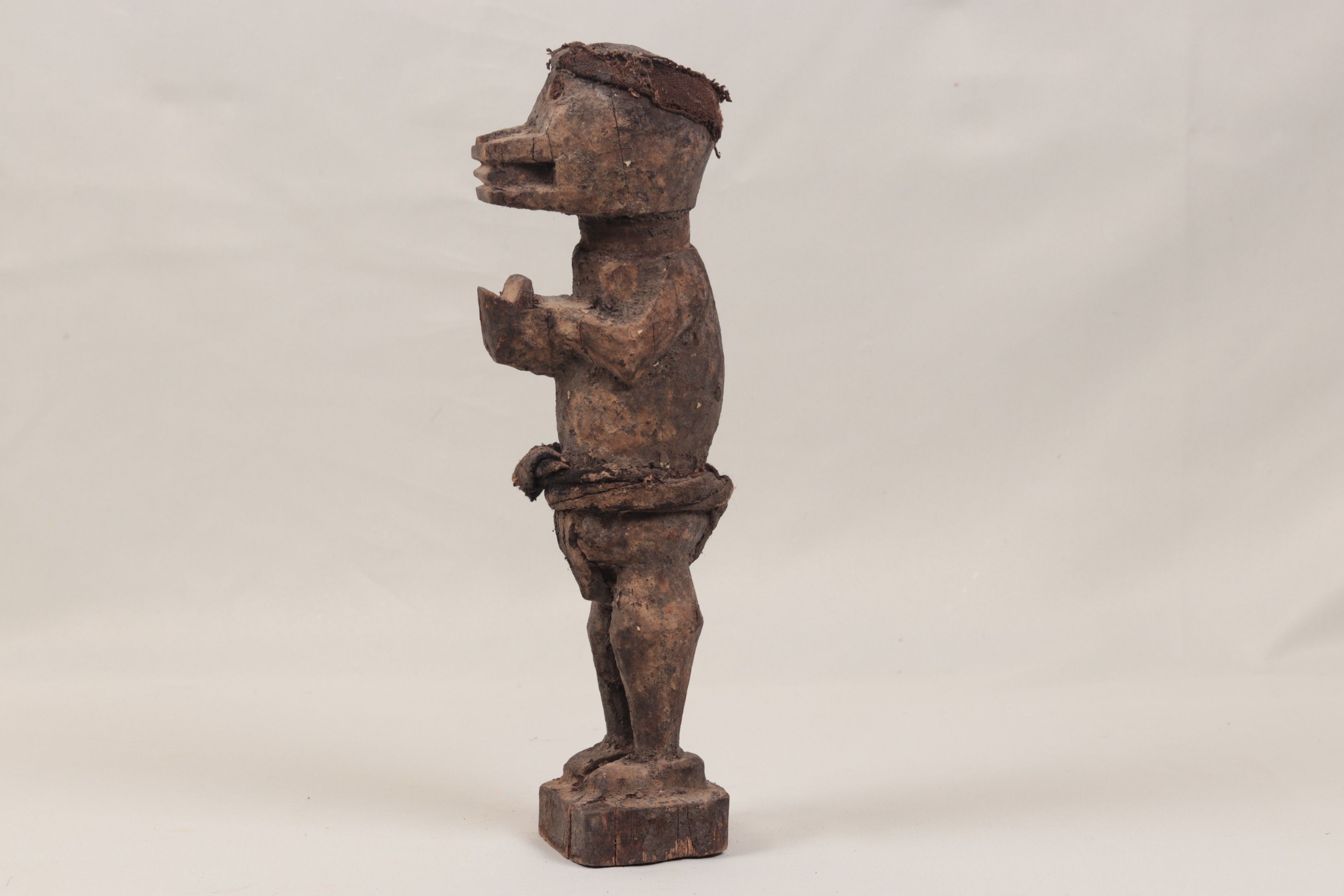 Baule ? (Ivory Coast), Cup-carrying monkey, wood, textiles, remains of ashes and libations, - H. 38 cm. - (acquired in 1969 with blackpoint). - Provenance: Former collection of Mr and Mrs FREUDENREICH, collected between 1969 and 1970 - Consultant: Mr Jacques BEAUFFET