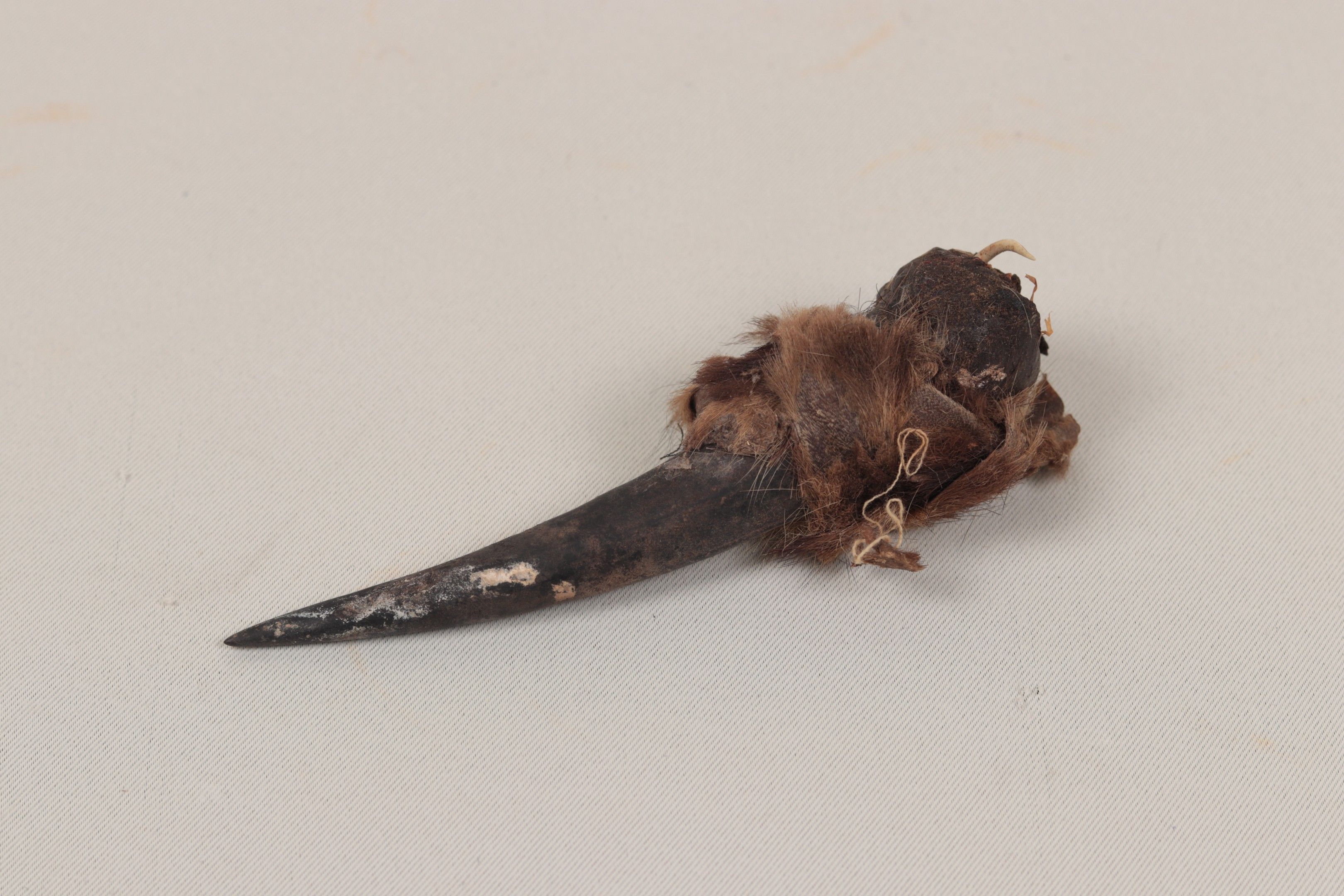 Yombe (Republic of Congo), "Nkisi nyambi", fetish object, horn with a charge glued to it, small "Nkoko" percussion instrument made of wood and blackened textiles. - approx. 25 x 25 cm - (collected in 1969 in Kakamoeka, Mayombe). - Provenance: Former collection of Mr and Mrs FREUDENREICH, collected between 1969 and 1970 - Consultant: Mr Jacques BEAUFFET