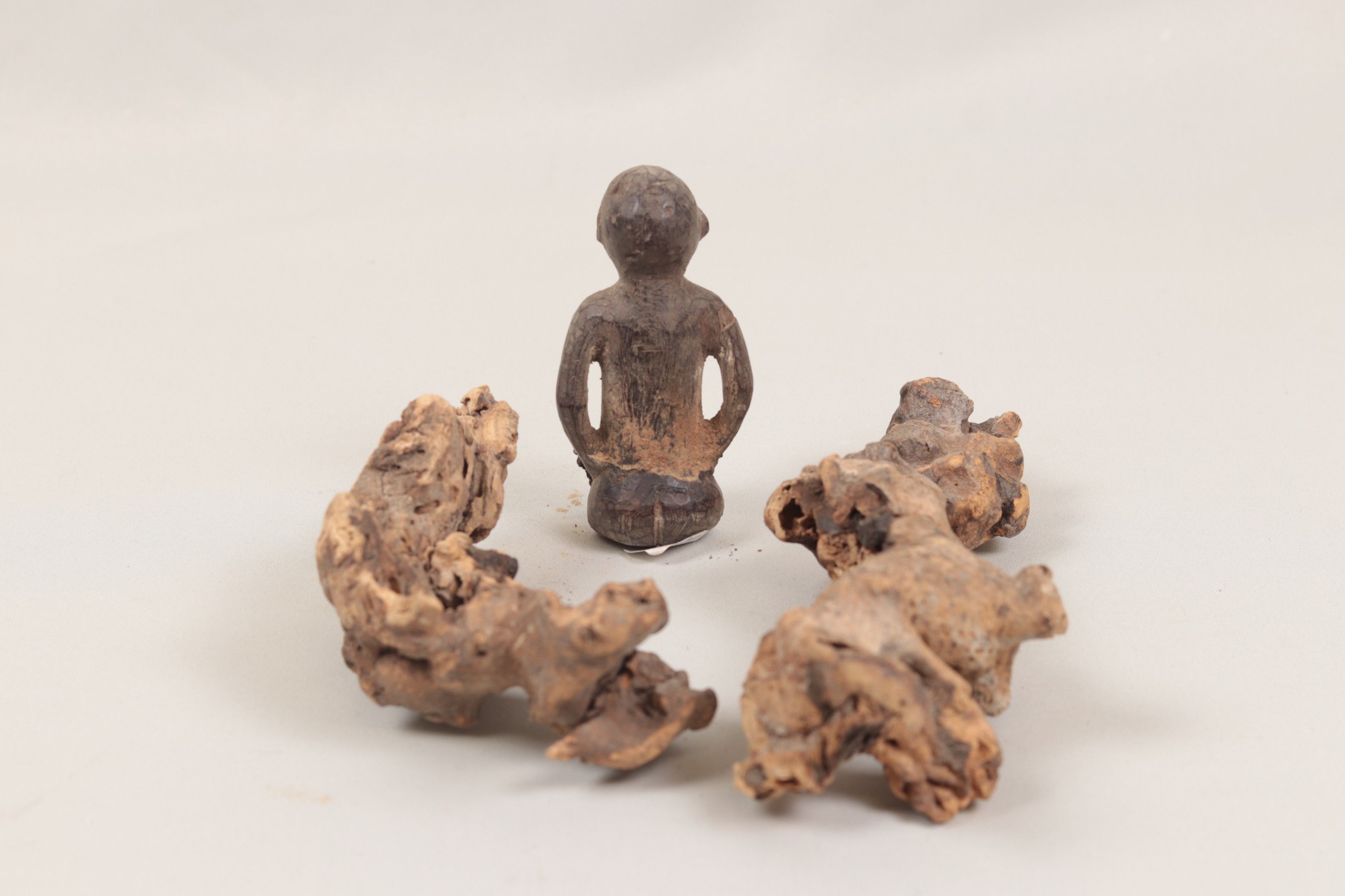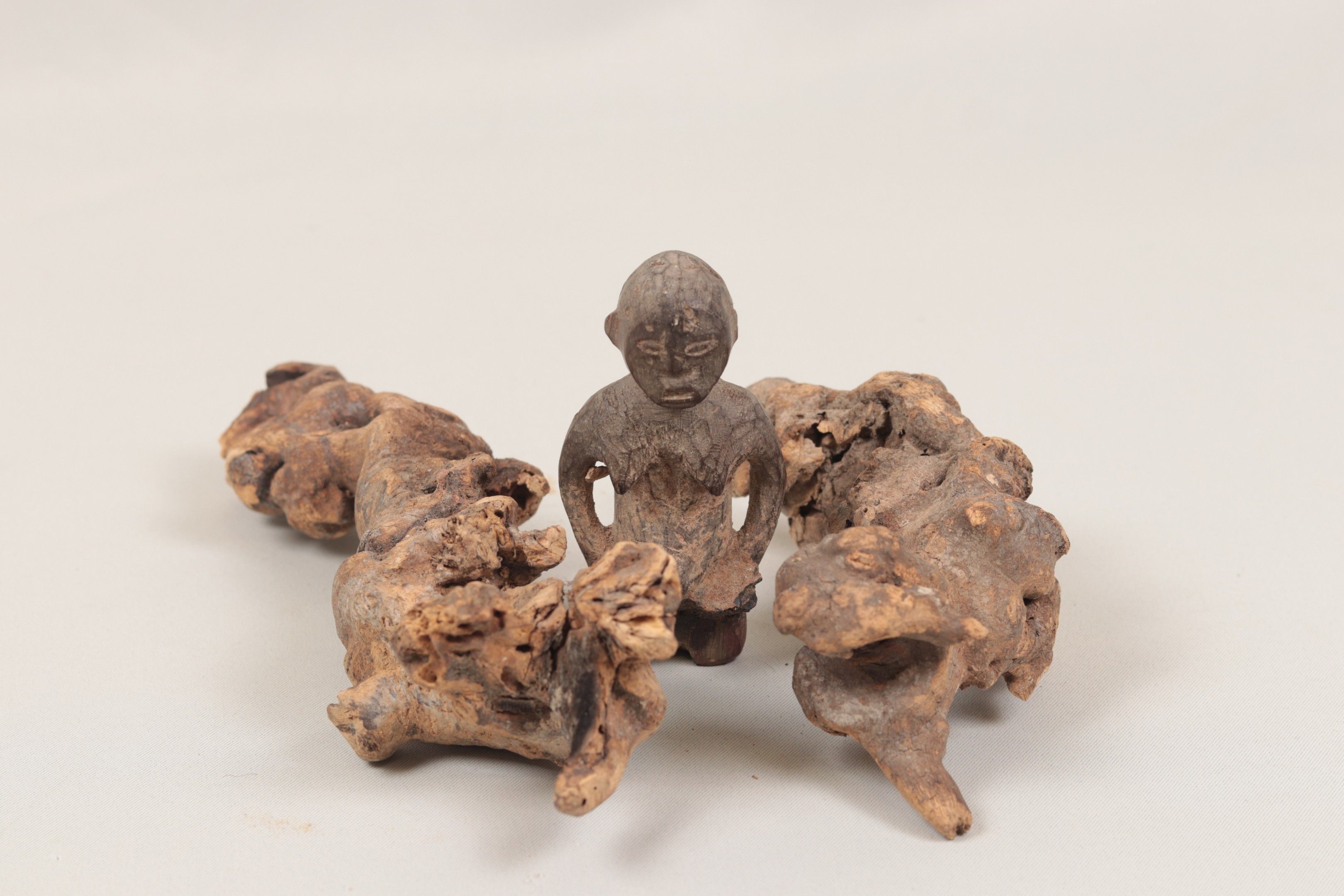 Yombe (Republic of Congo), fetish statuette, wood and its vegetable gangue (3 elements), - (collected in 1969 in Kakamoeka, Mayombe). - Provenance: Former collection of Mr and Mrs FREUDENREICH, collected between 1969 and 1970 - - Consultant: Mr Jacques BEAUFFET