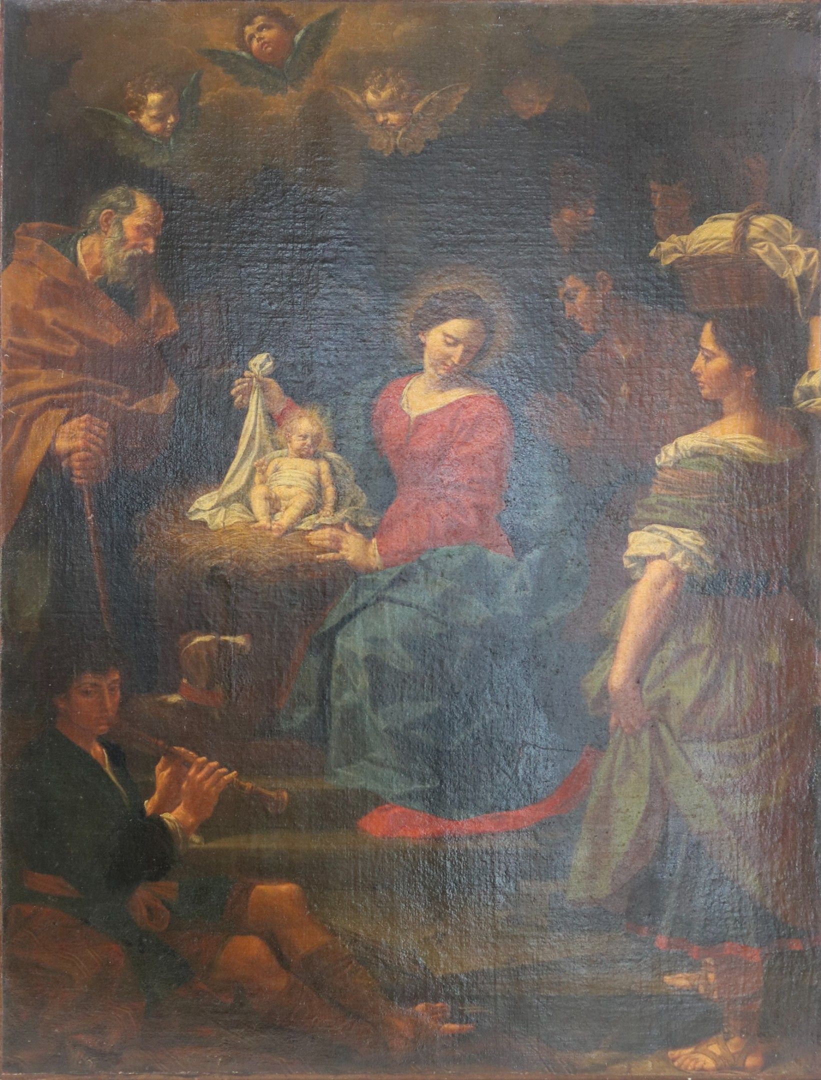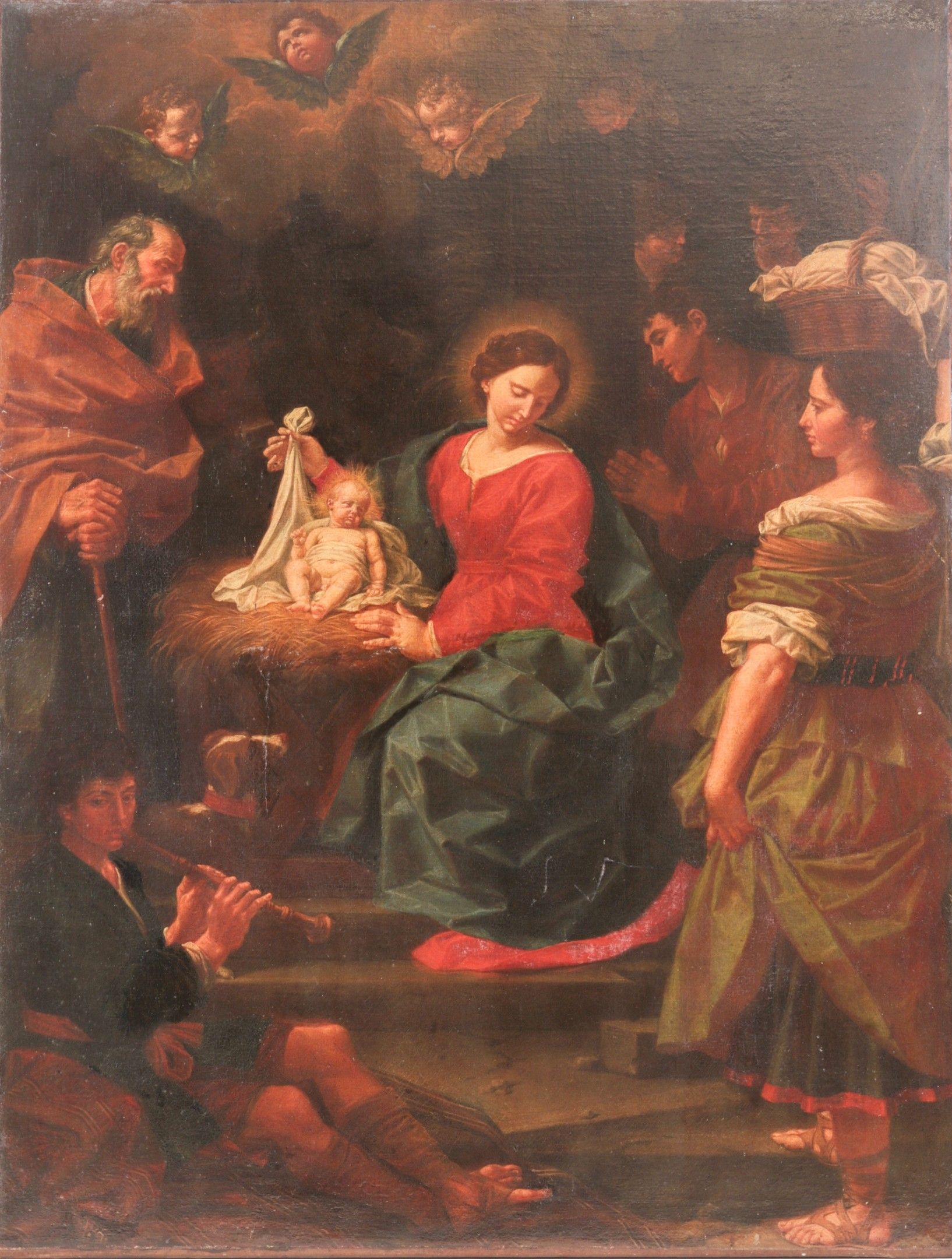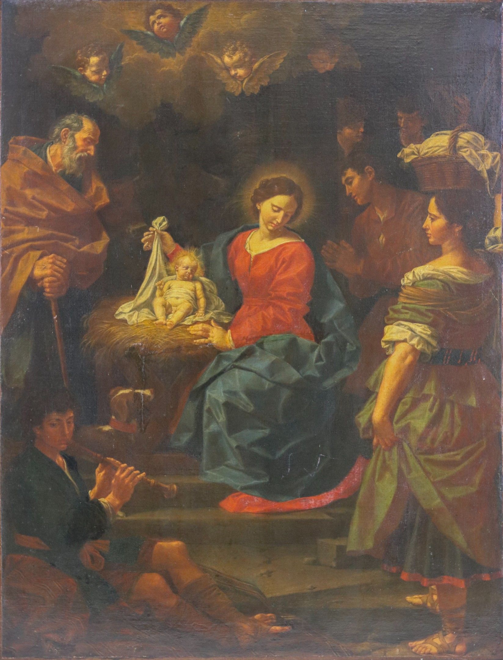 Attributed to Simone CANTARINI (1612-1648), - Nativity, - oil on canvas - (lining, restoration) - 107 x 82 cm - - Expert : René MILLET