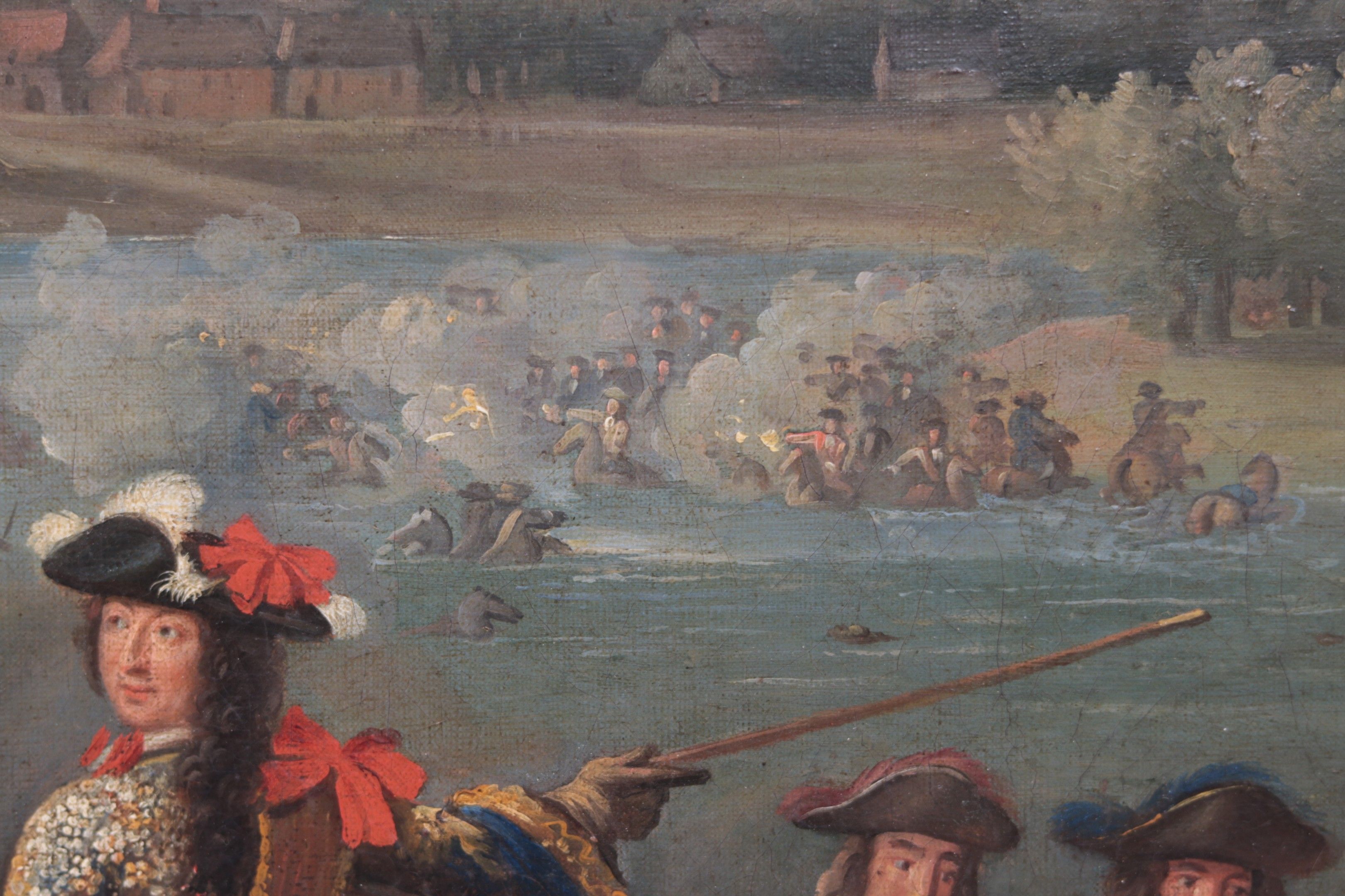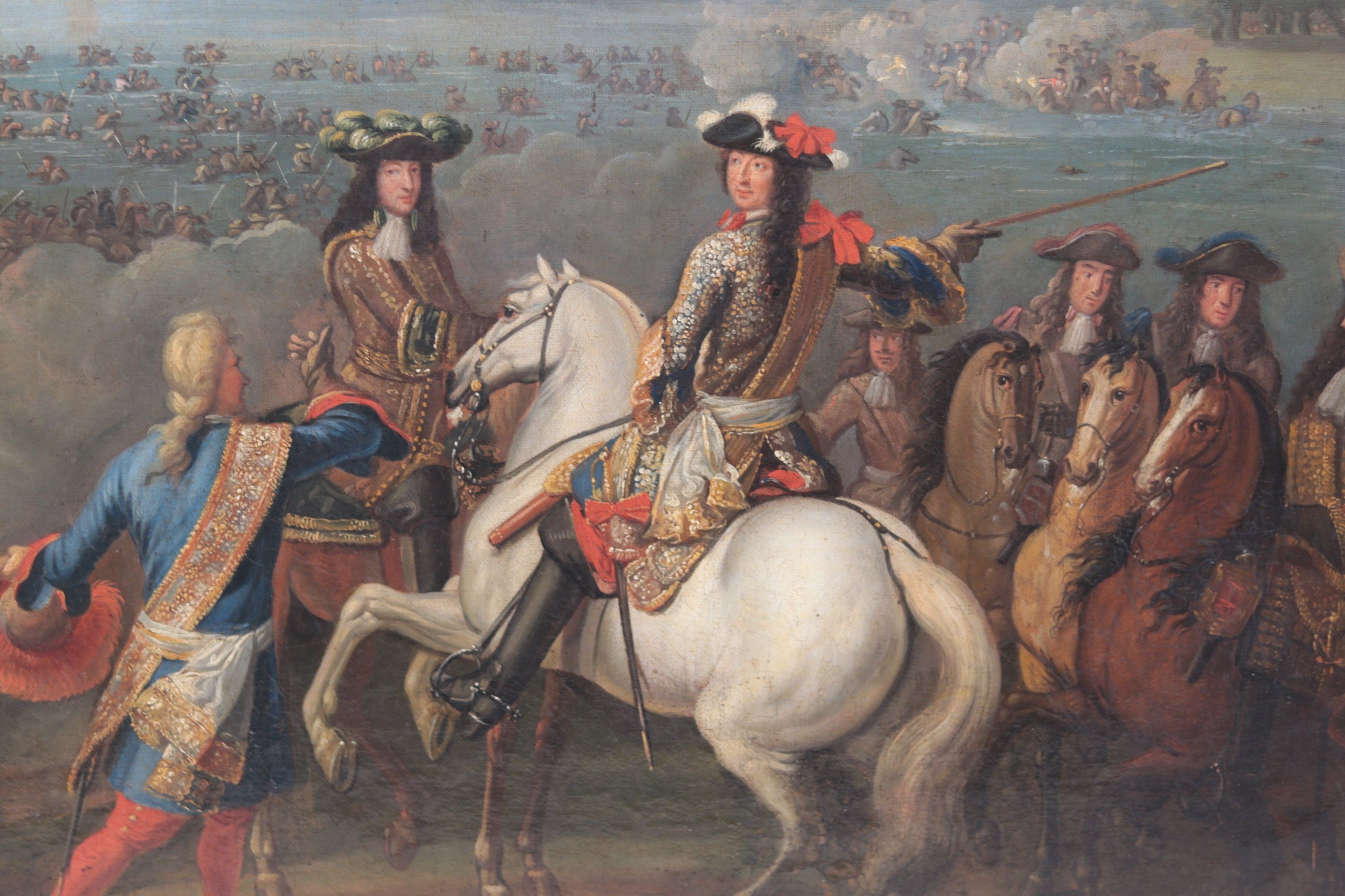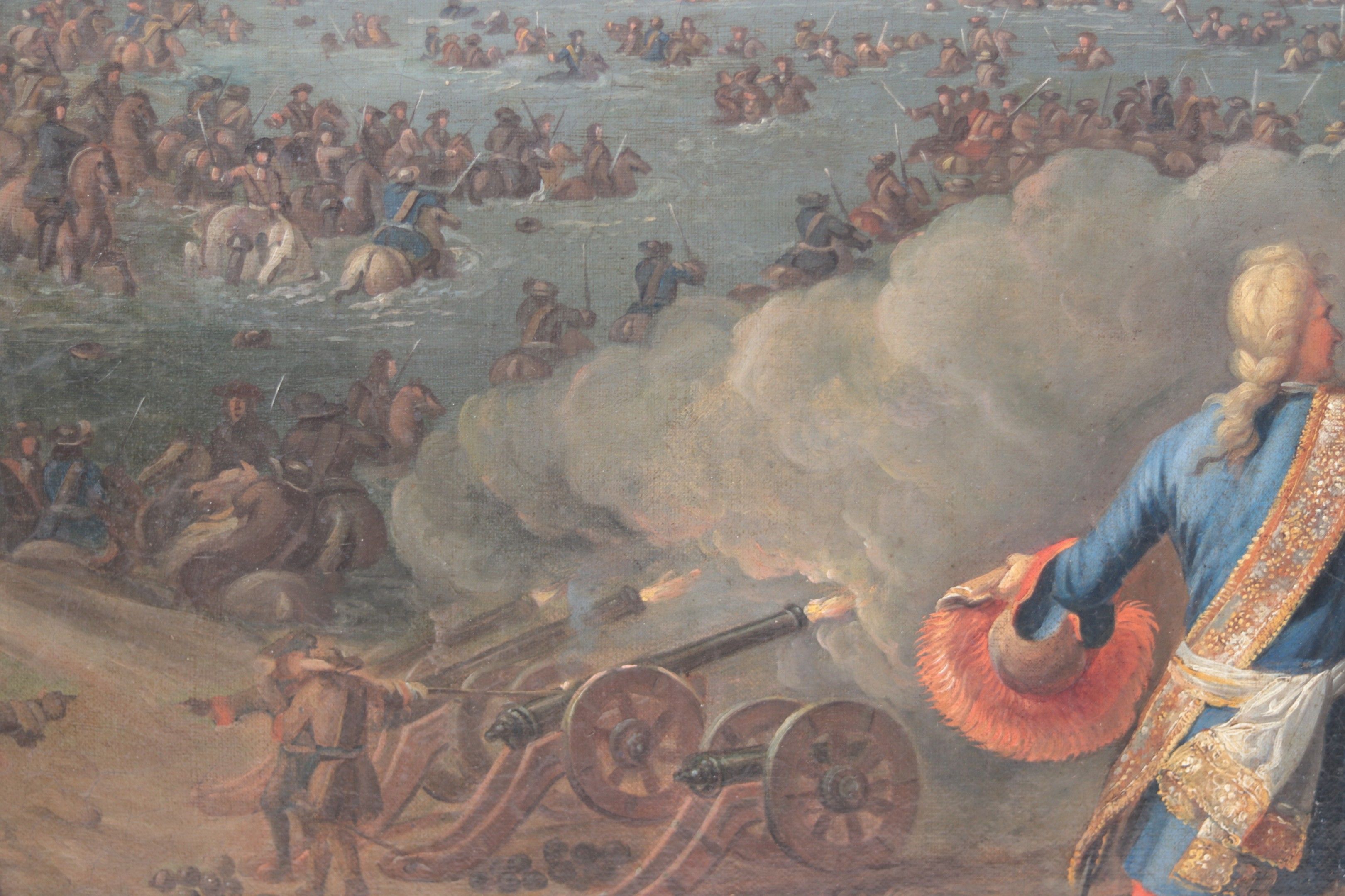 FRENCH SCHOOL circa 1700 follower of Adam Frans Van der MEULEN The Crossing of the Rhine, Oil on canvas, 70 x 90 cm Reproduced from a painting by Van der Meulen in the Musée des Beaux-arts de caen (See exhibition catalogue A la gloire du Roi, Van der Meulen, peintre des conquêtes de Louis XIV, Dijon 1998 , N° 40 reproduced)