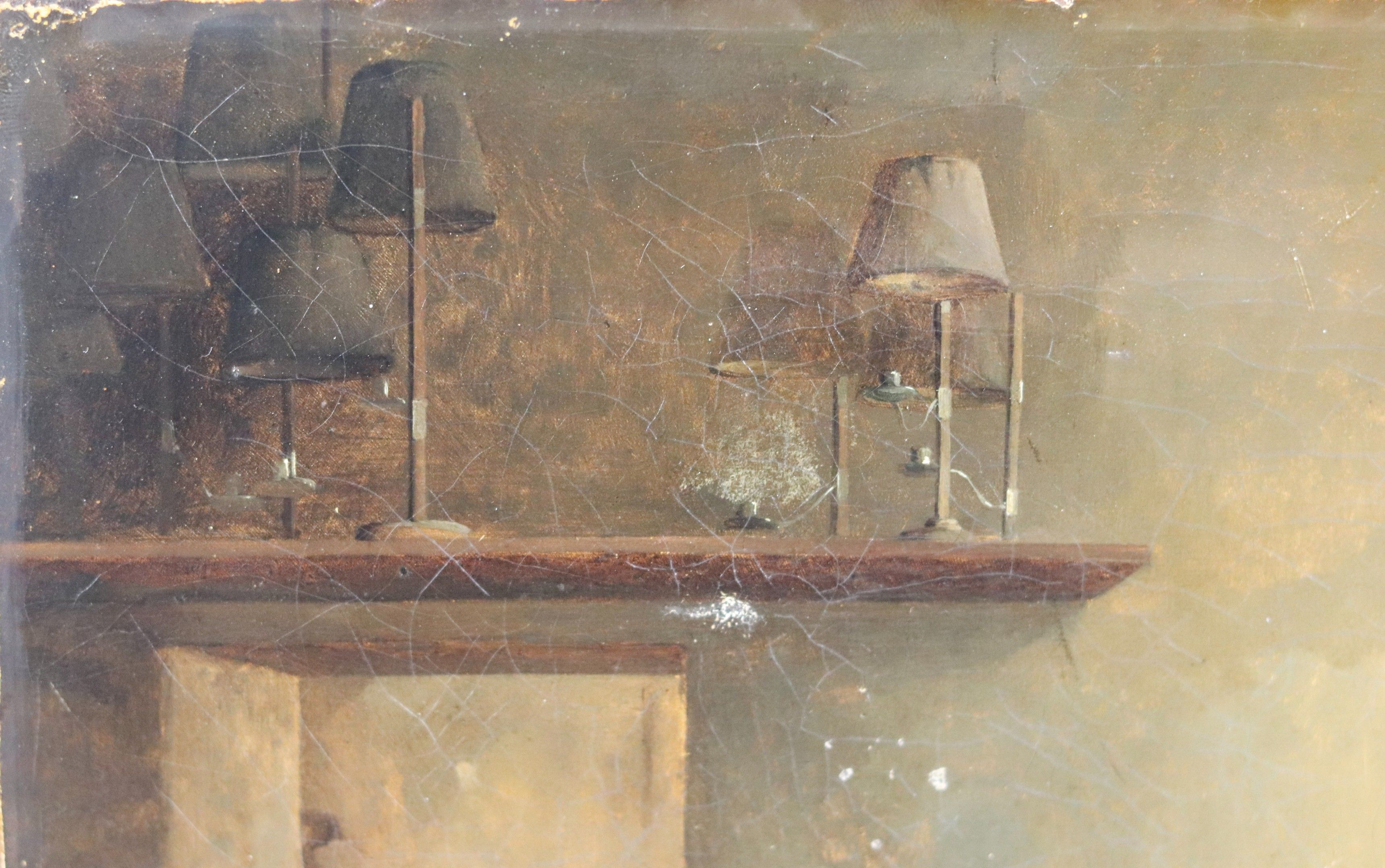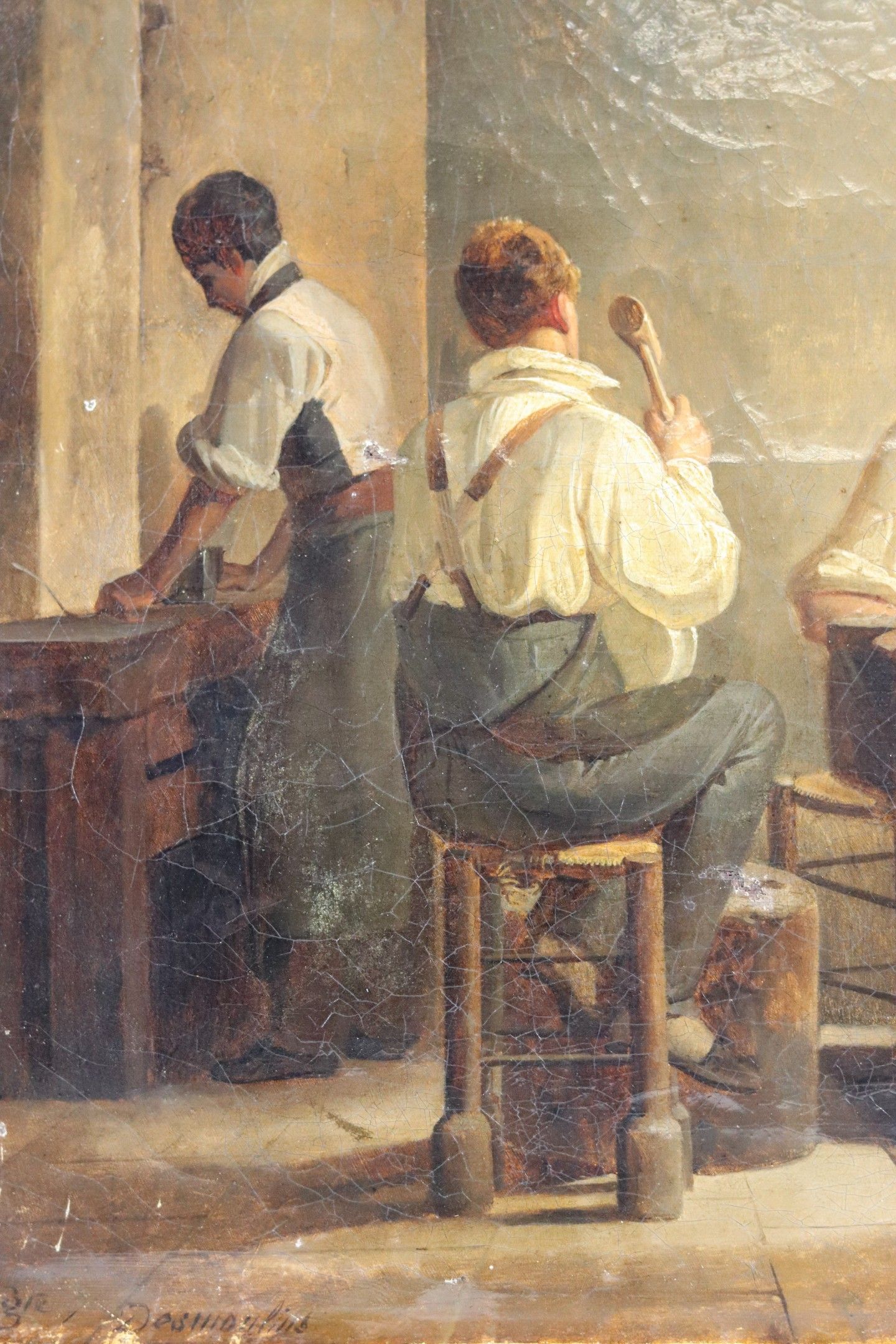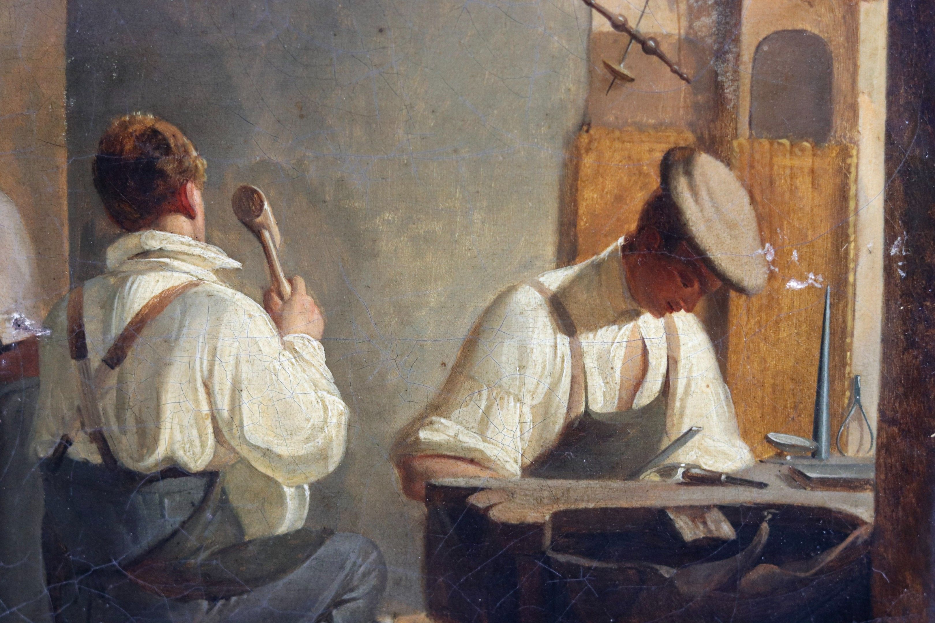 François Barthélémy Augustin DESMOULINS (Paris 1788 - 1856), Vers 1822, - l'atelier de l'Orfèvre Odiot (1763-1850), rue Saint-Honoré, - oil on canvas signed lower left - 32,5 x 24,5 cm - (paint chips, small accidents, oil on paper pasted on canvas?) - - Related work: - - L'atelier de l'orfèvre Odiot, 1822, Paris, musée Carnavalet. - François Barthélémy Auguste DESMOULINS (Paris 1788 - 1856), vue intérieure des ateliers d'orfèvrerie de Monsieur Odiot, 1822, Exposition - Salon de Paris de 1822, n°354. Sale Garden Party, Rouillac, - 8 June 2008, lot 586 - - Expert : René MILLET