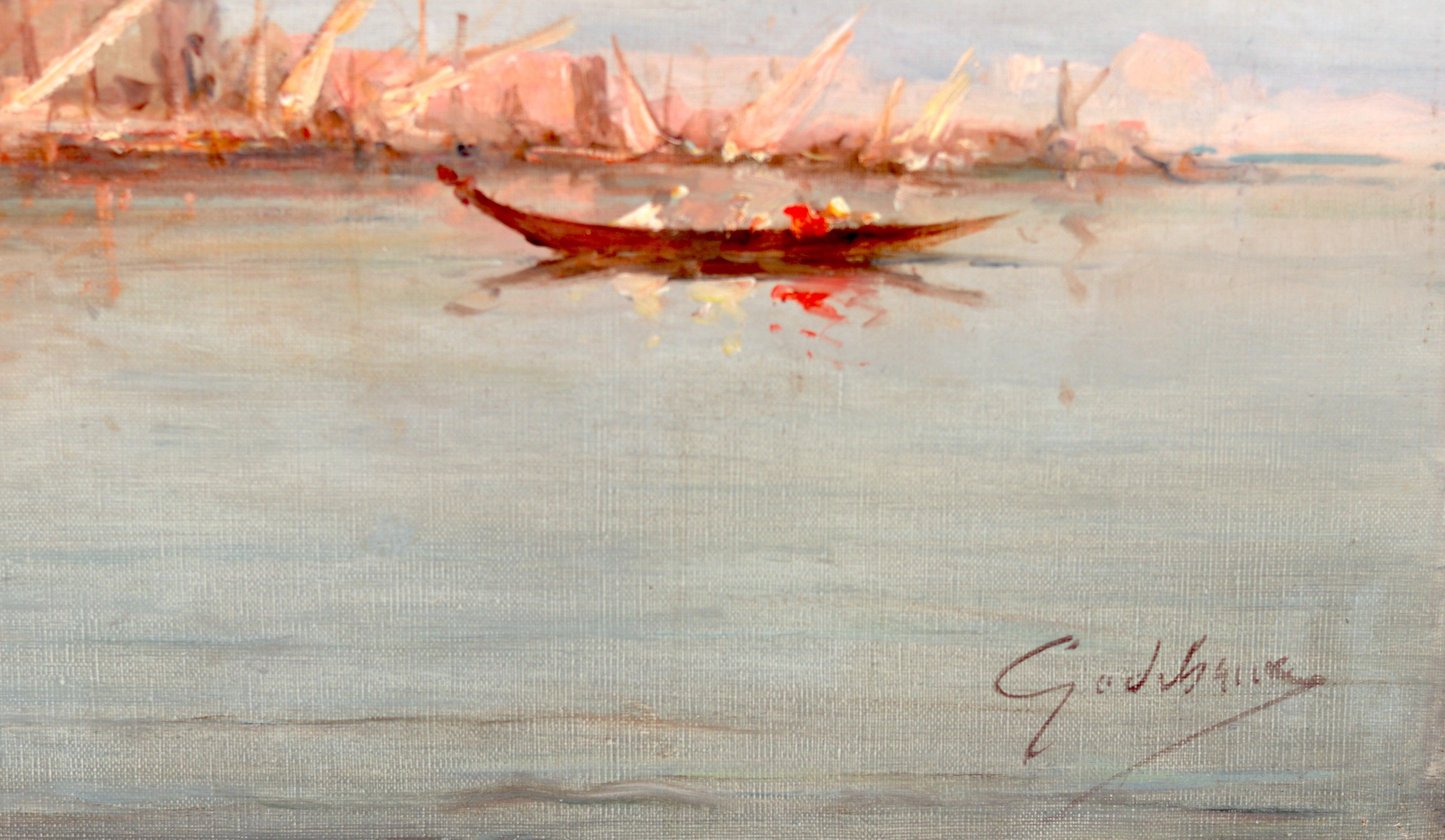 Emile GODCHAUX (1860-1938), - Istanbul, view of the Bosphorus, - oil on canvas signed lower right - 62.5 cm x 92.5 cm - (previously lined)