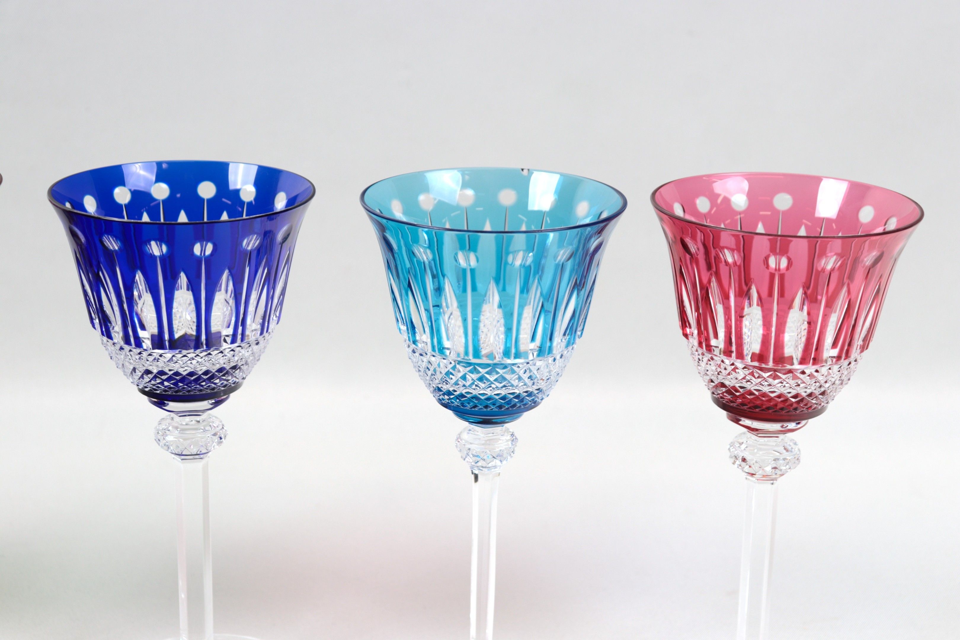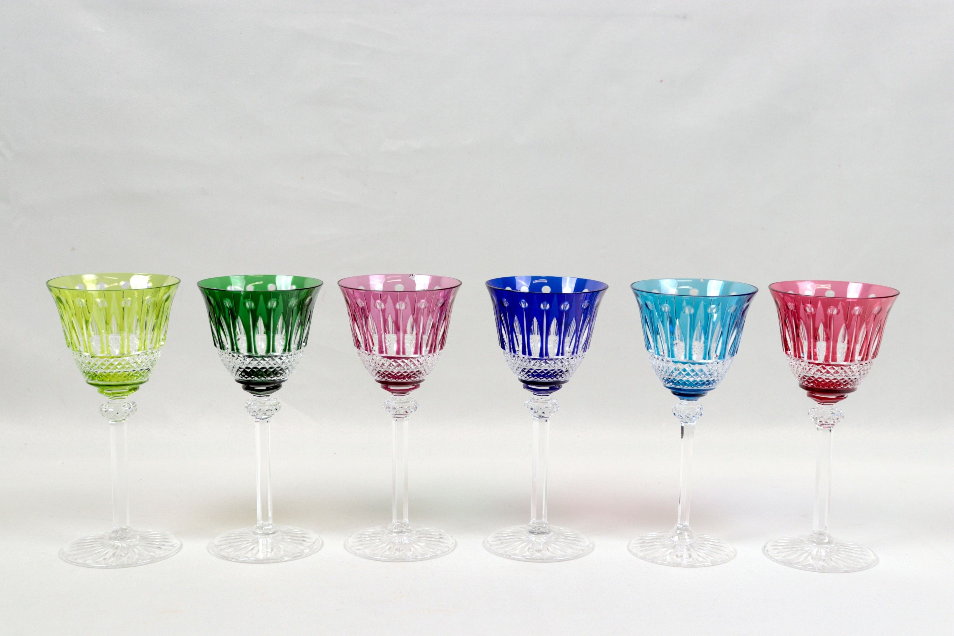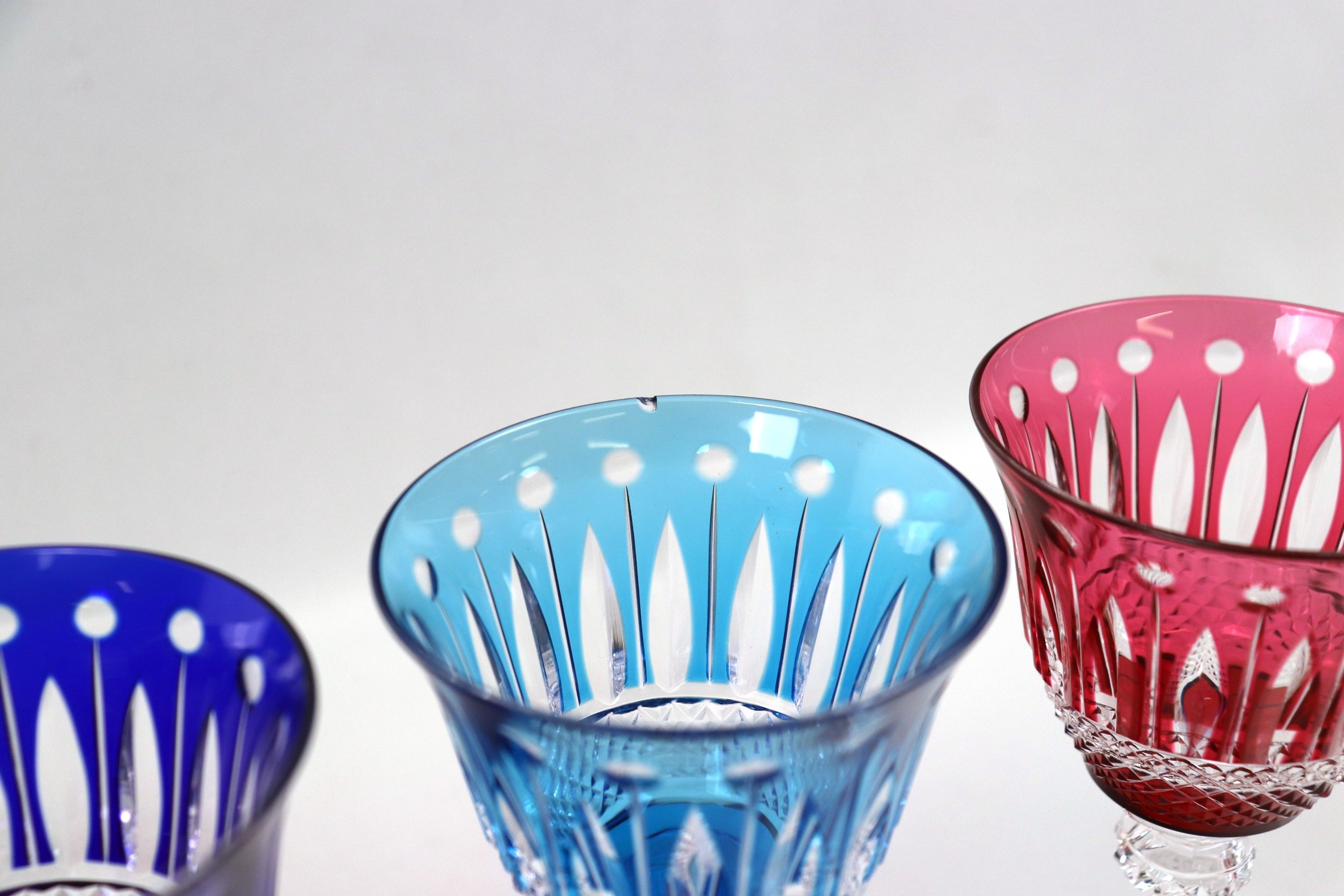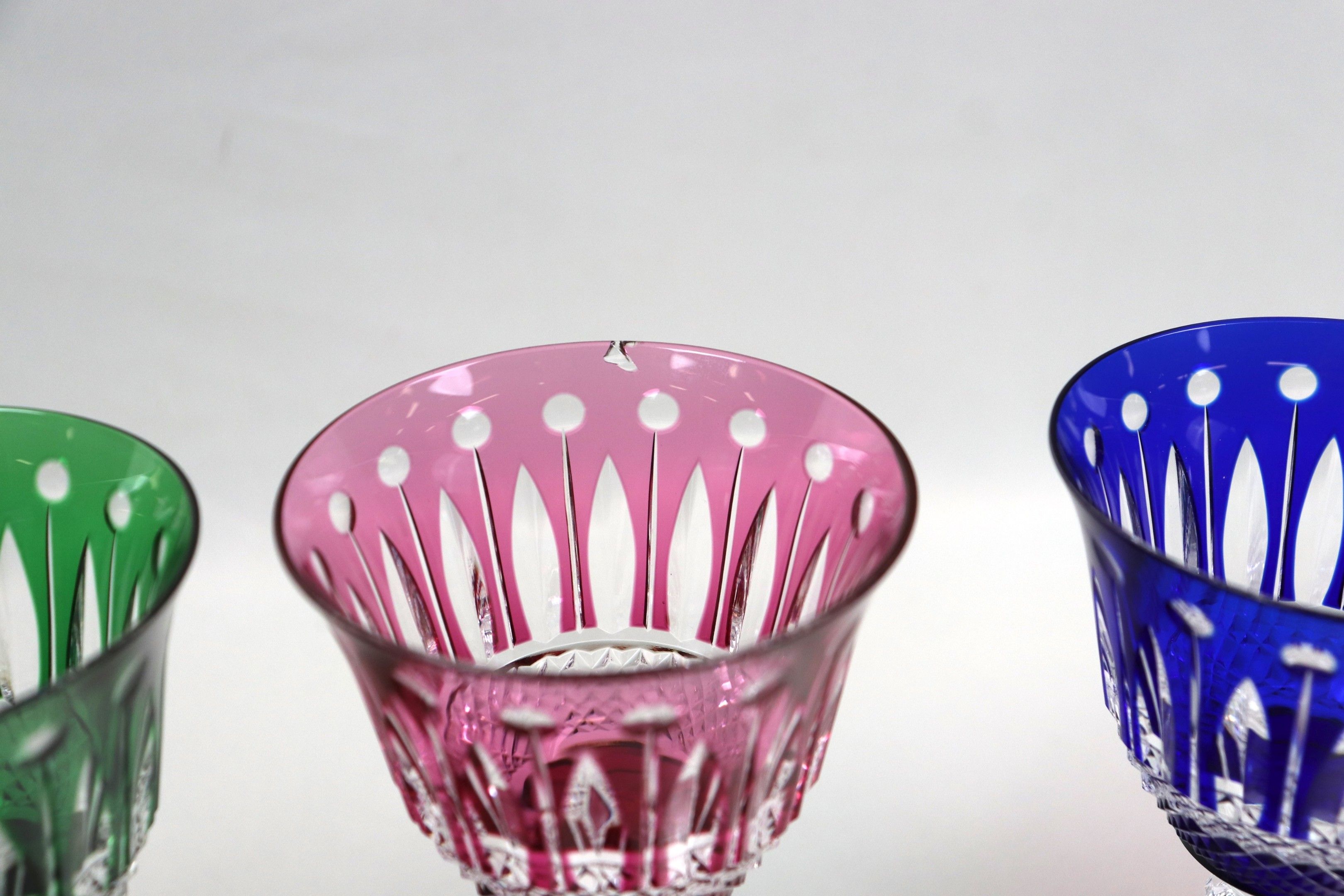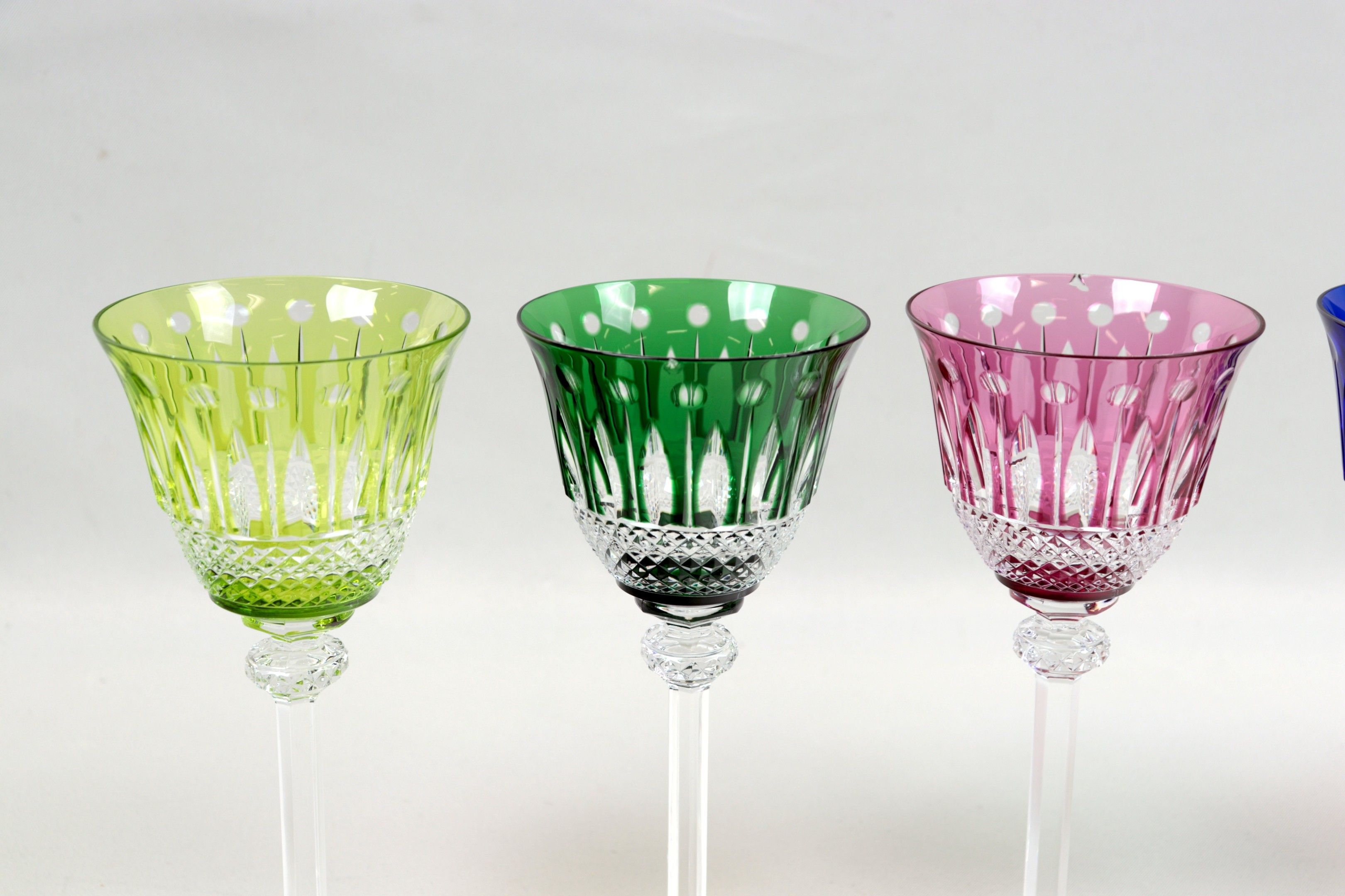 Cristallerie SAINT-LOUIS, suite of six glasses, TOMMY model, Roemer type in coloured overlay crystal. Signed under the foot. - (three small chips)