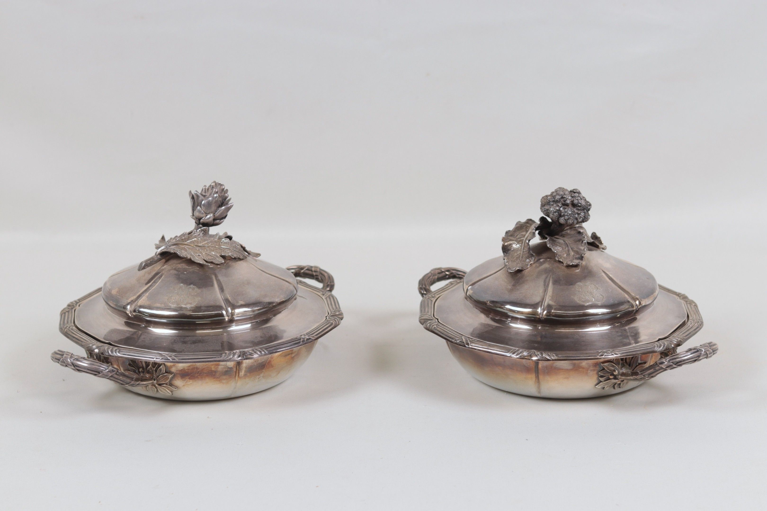 Pair of silver vegetable dishes 950 thousandths with their l…