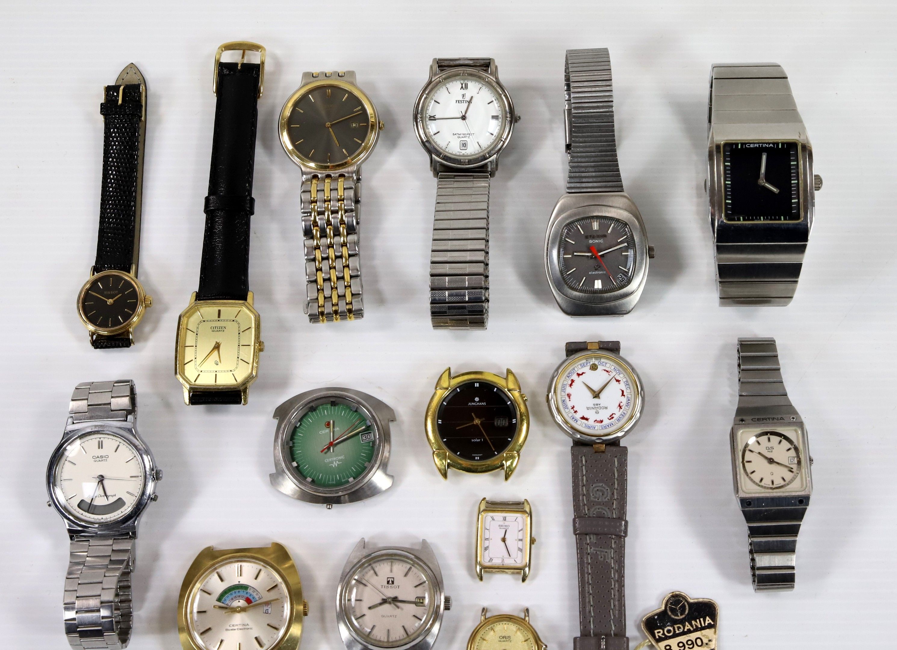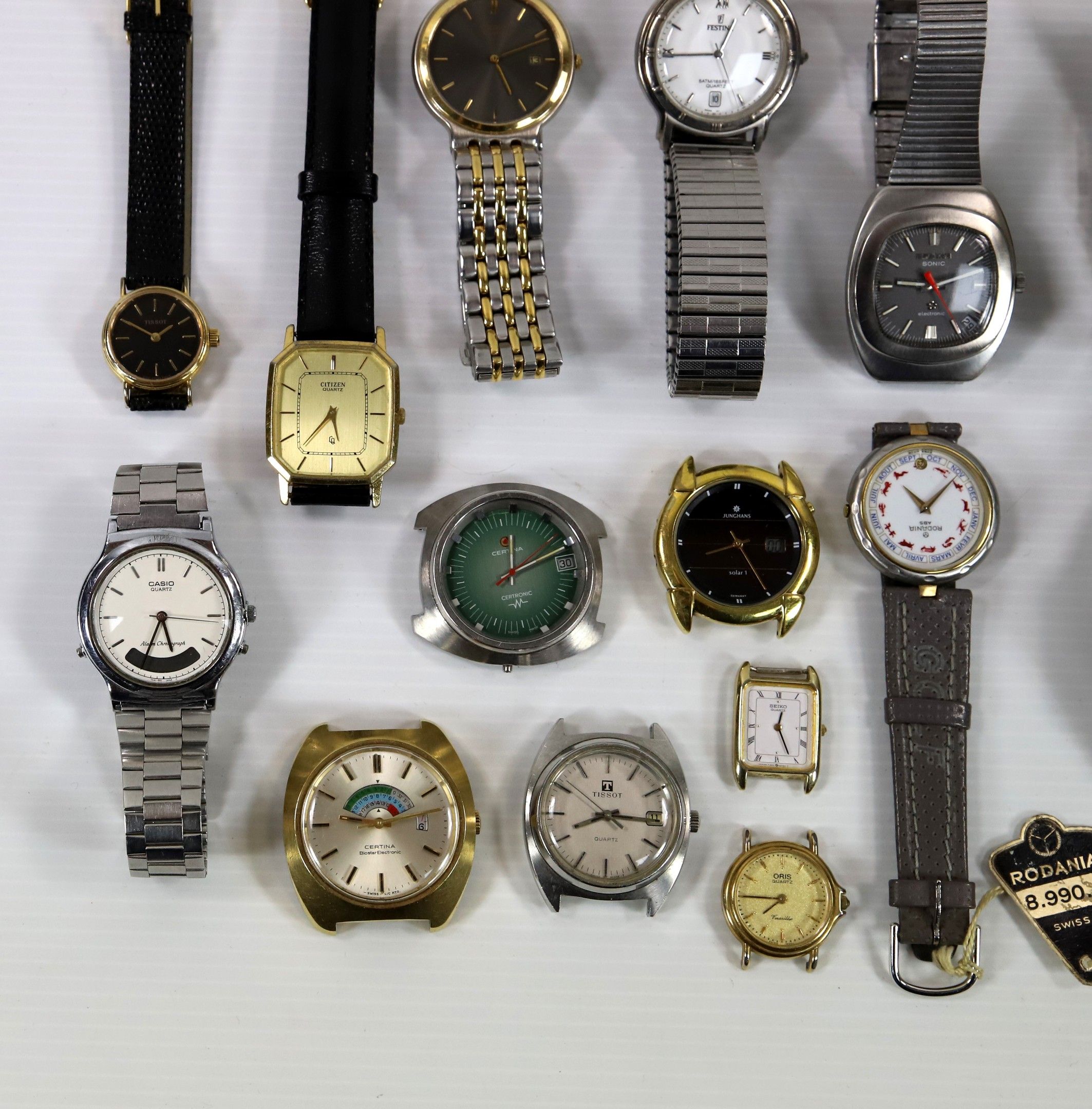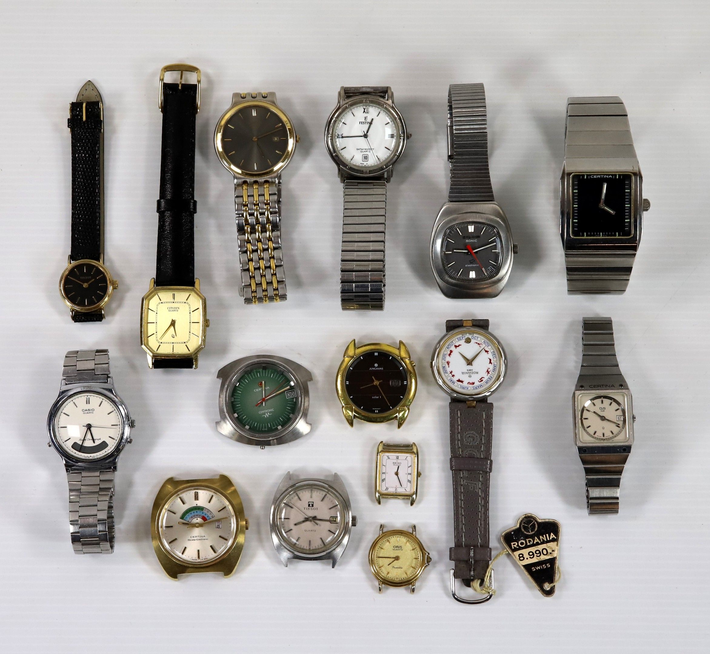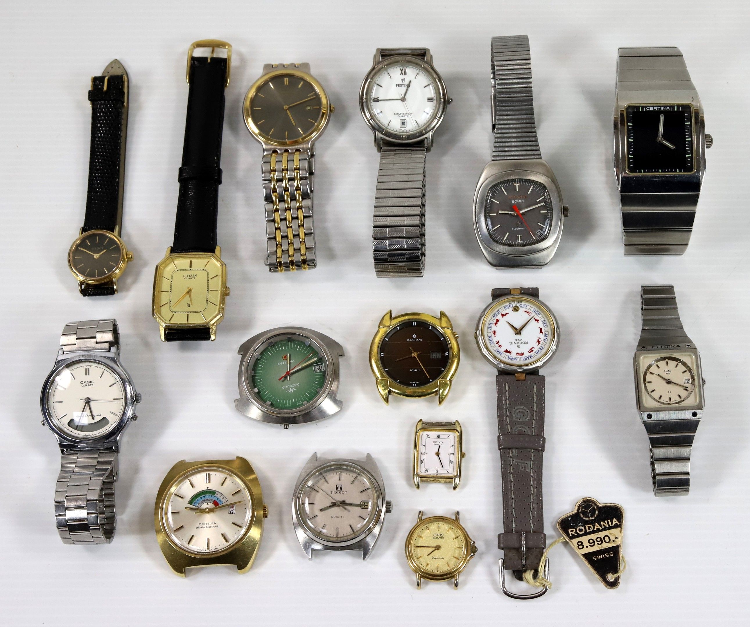 Lot of 15 various quartz watches, as is, no complaints, by CERTINA (x 4), SEIKO, FESTINA, TISSOT, CITIZEN, ORIS, JUNGHANS, ETERNA, RODANIA, CASIO