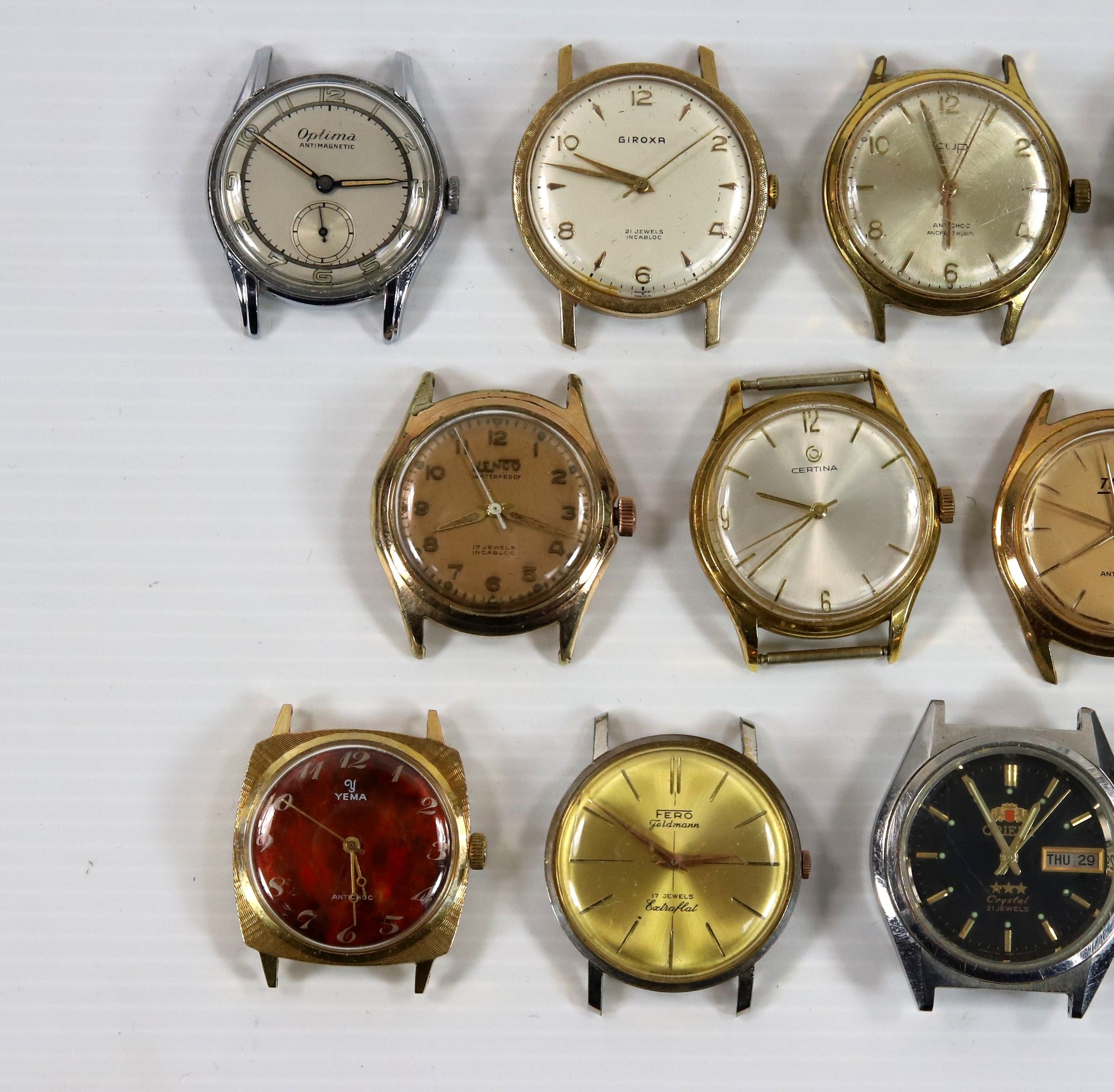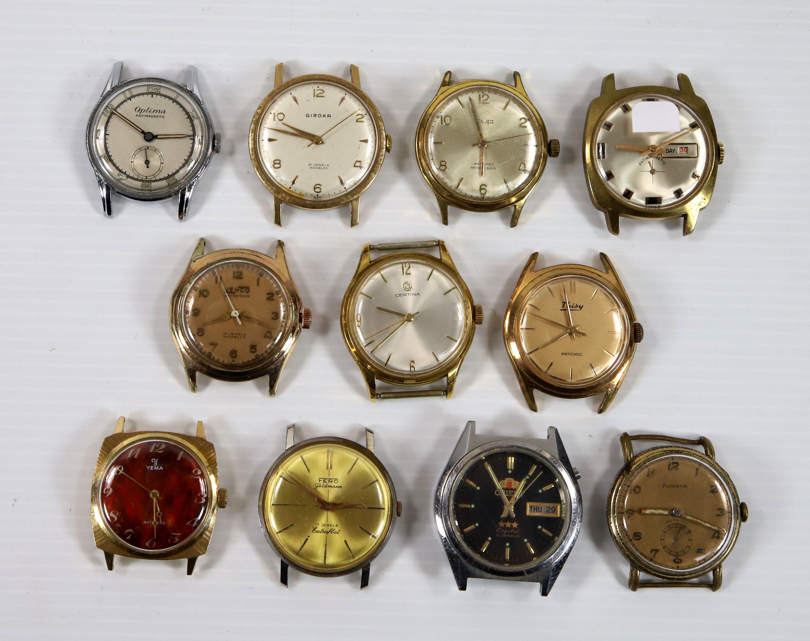 Lot of 11 CERTINA, GIROXA, YEMA, NOVICE, THISY, OPTIMA, FERO FELDMANN, JENCO, CUP, ORIENT (without winders) mechanical watches, in unused condition with no complaints.