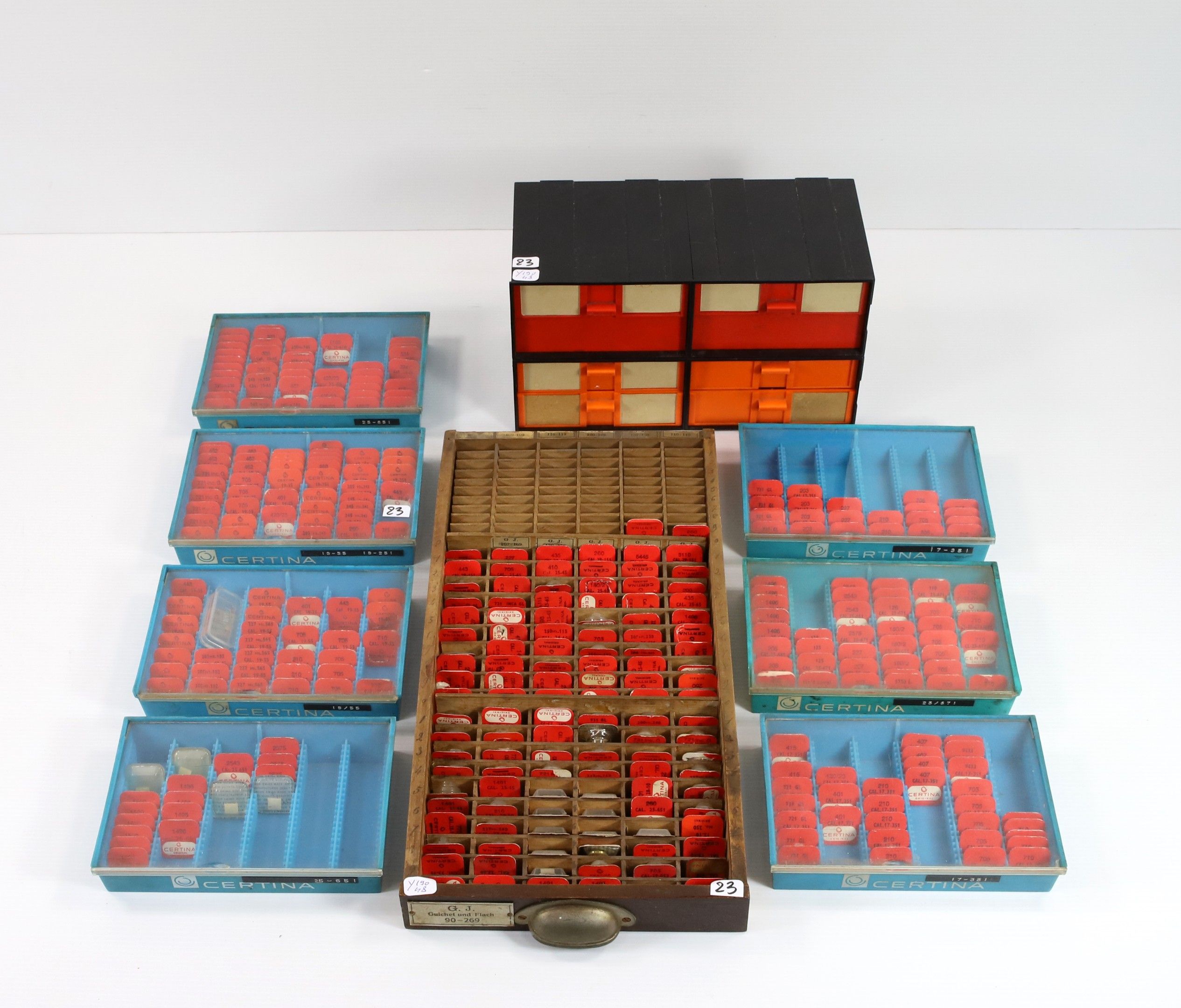 Lot of various spare parts for CERTINA watches in 7 plastic boxes and a drawer, and a lot of watch glasses and miscellaneous in a plastic box - No postal delivery - MBE or cocolis recommended