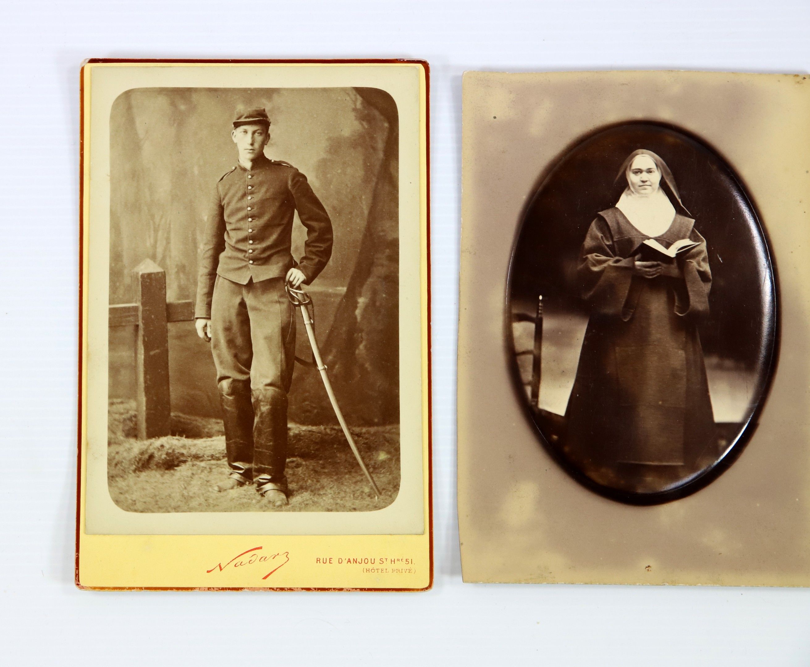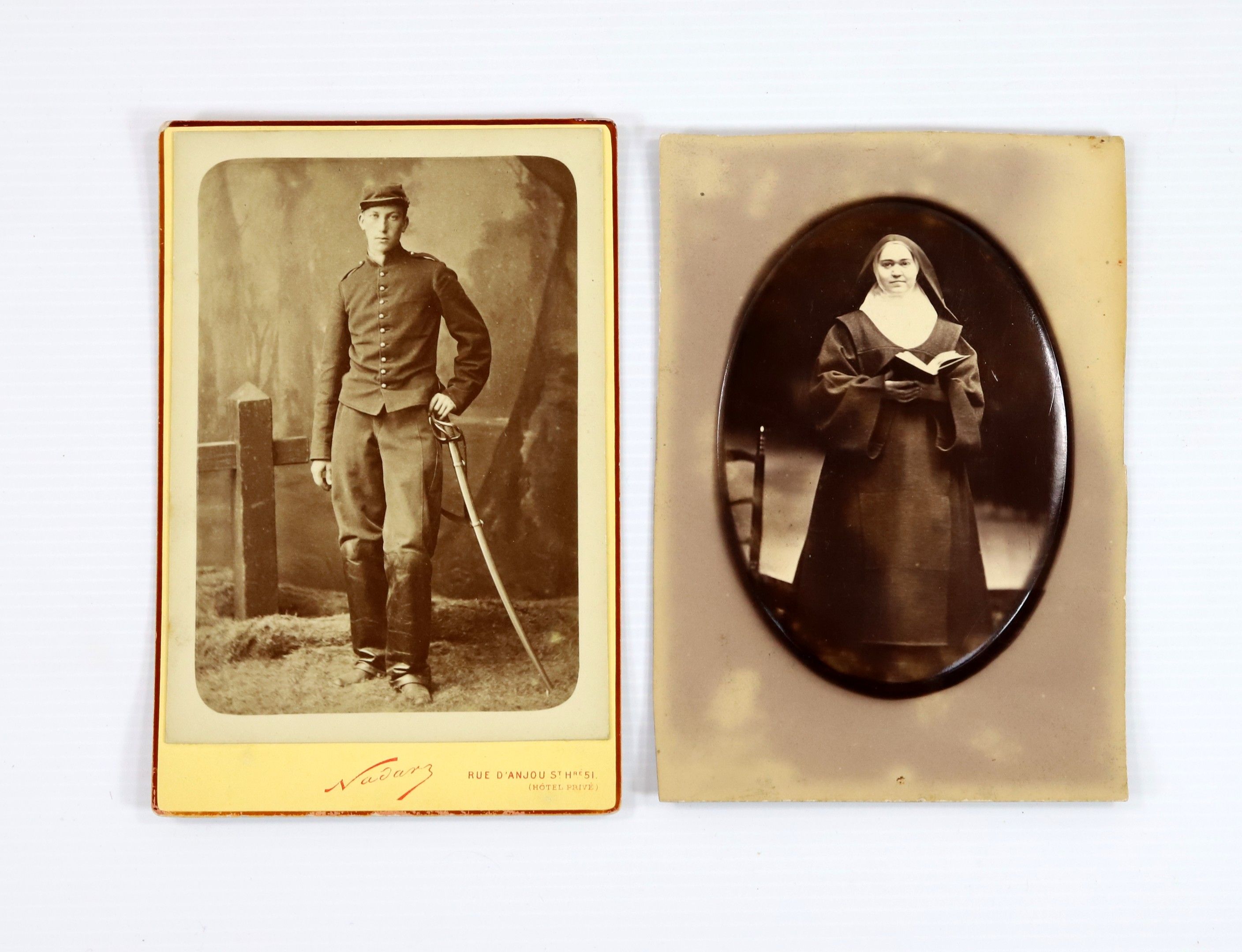 Atelier NADAR, photograph of Lucien MARC, full-length and in uniform (National Guard artillery), 14.4 x 10.2 cm (Lucien Marc was director of Illustration from 1886 to 1903). Attached is a photograph of Sister Marc, 15.8 x 11 cm, Kaltenbacher Enamel Portraits, Amiens.