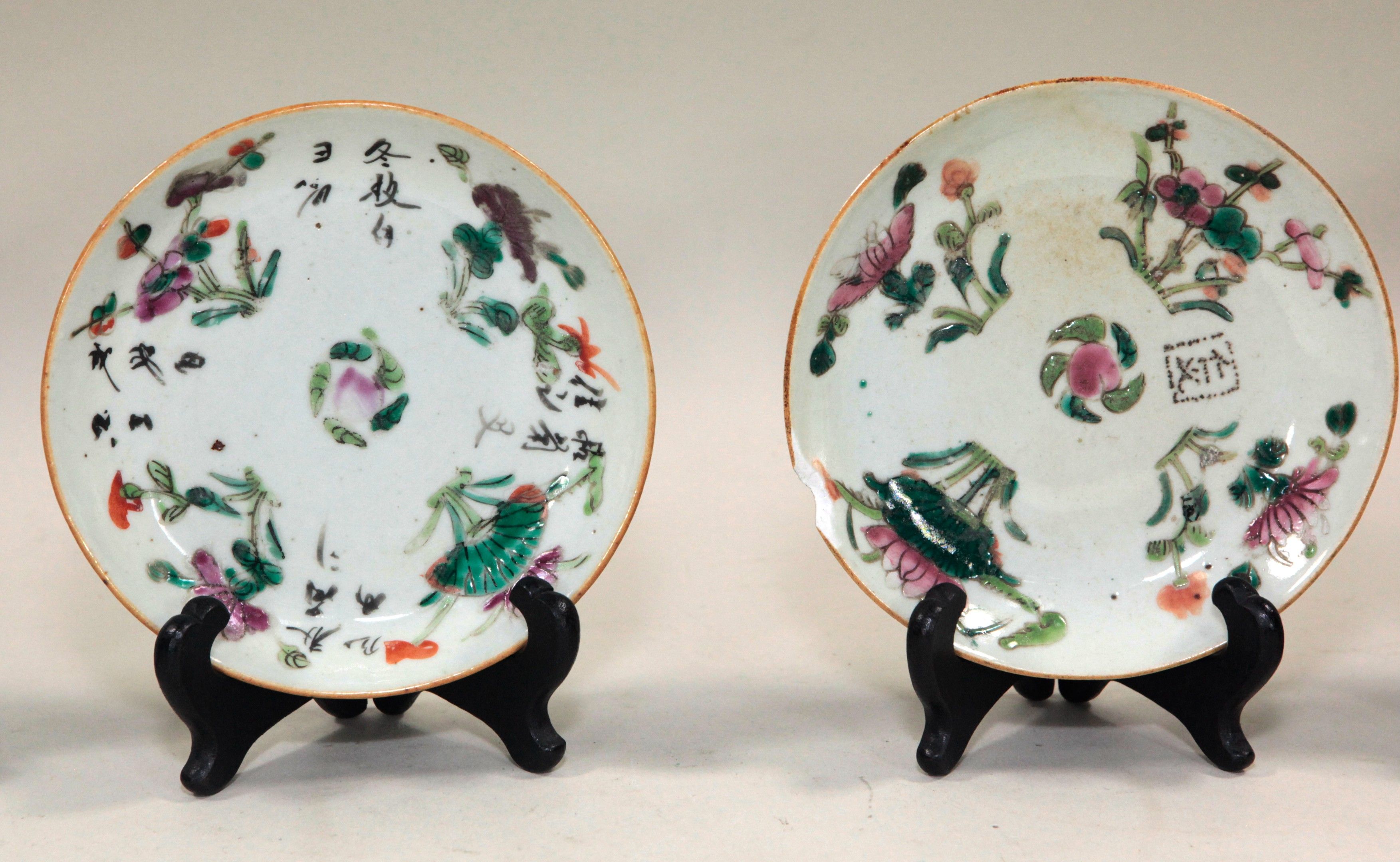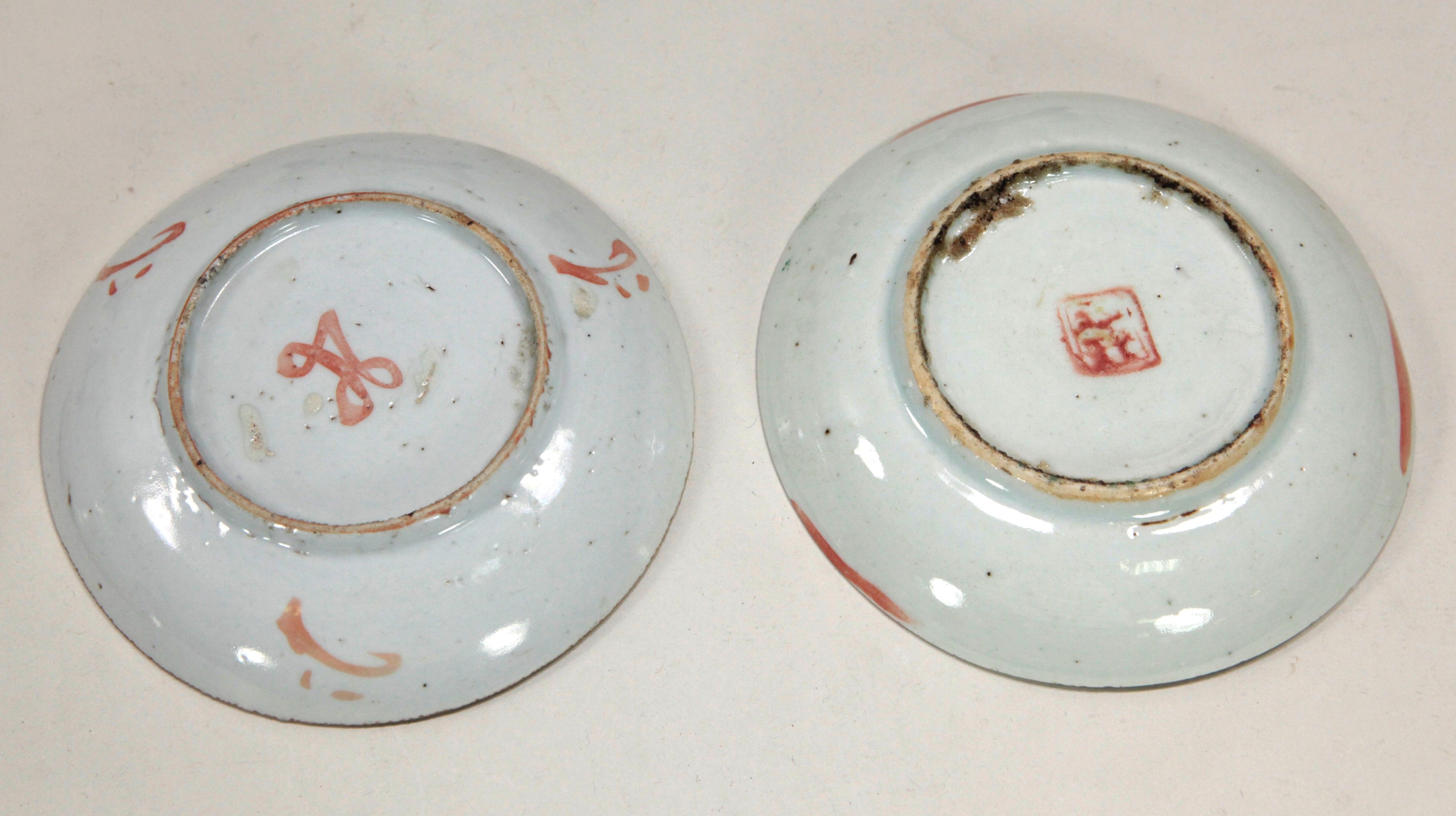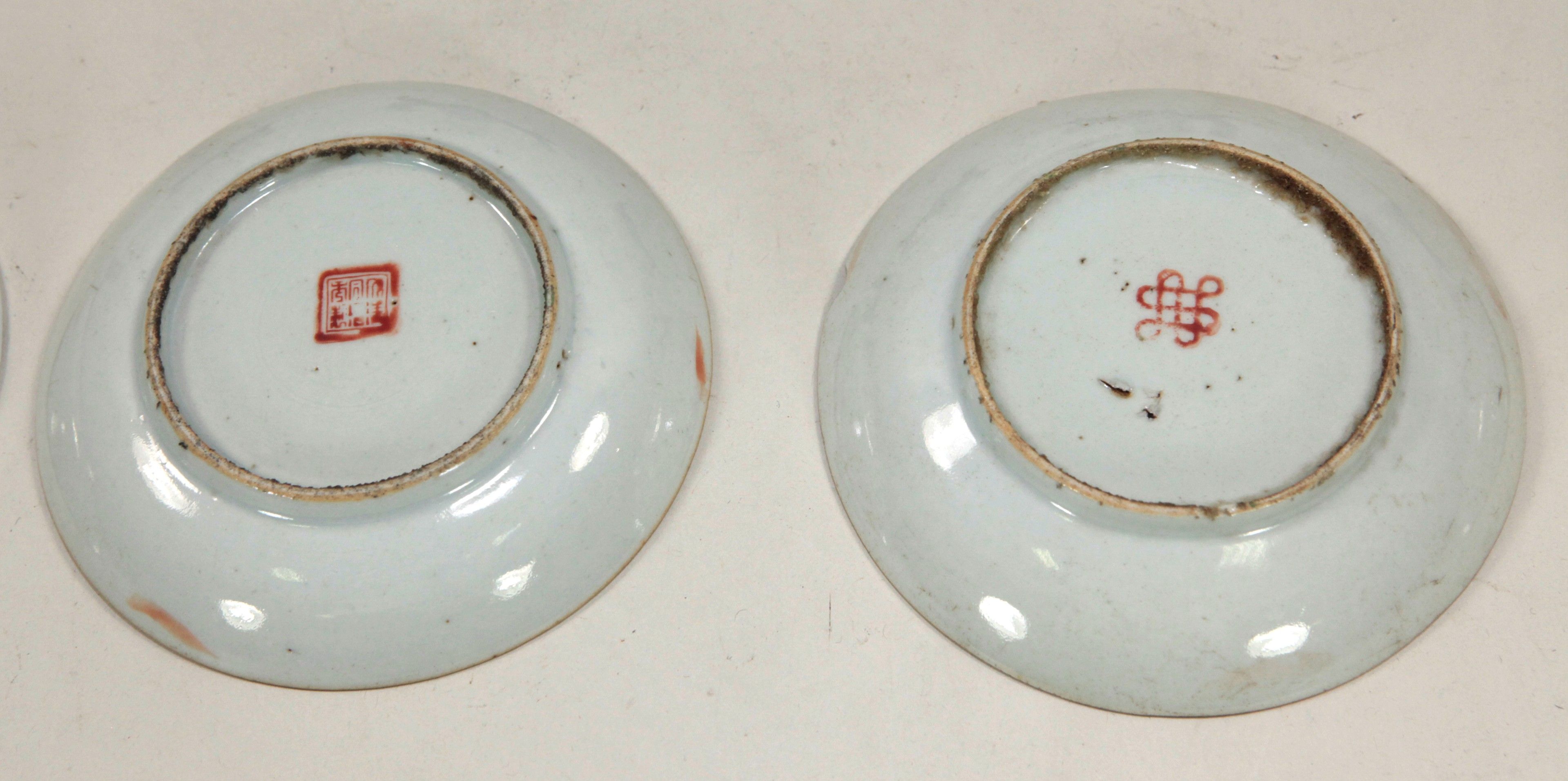 China, Meeting of six small polychrome porcelain plates, with red stamps under the bases. D: 13.5 cm (a chip in one). No postal delivery - MBE or cocolis recommended.