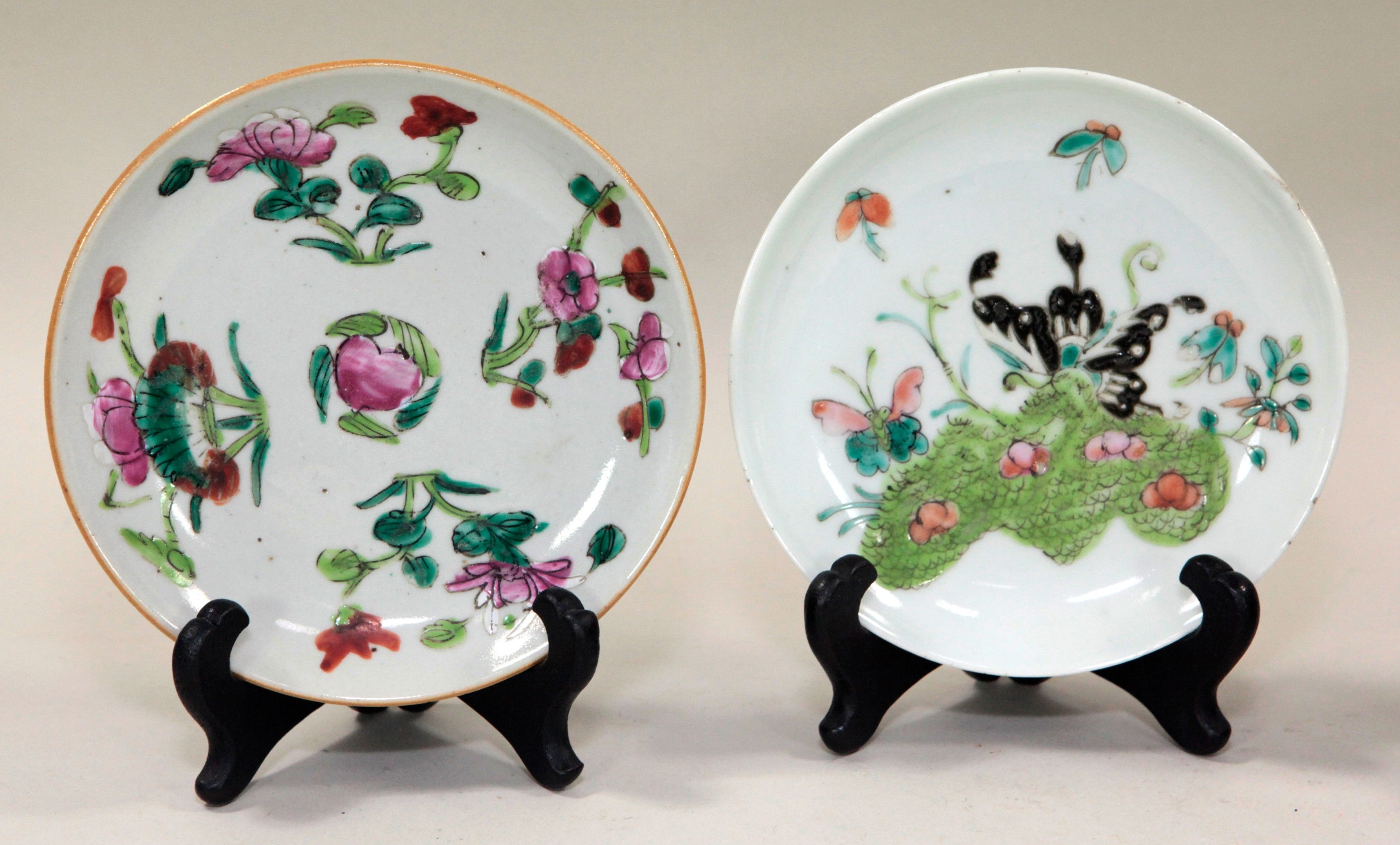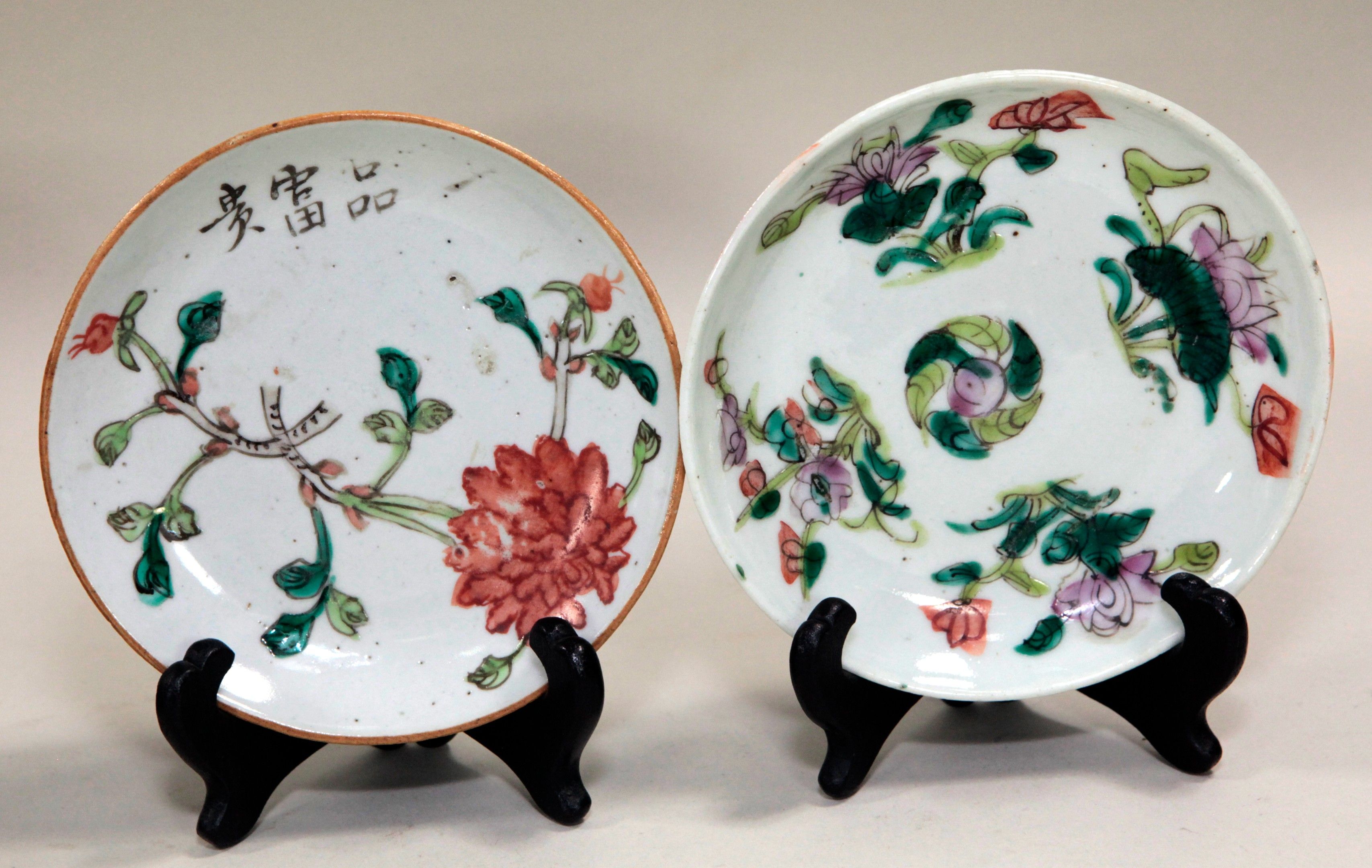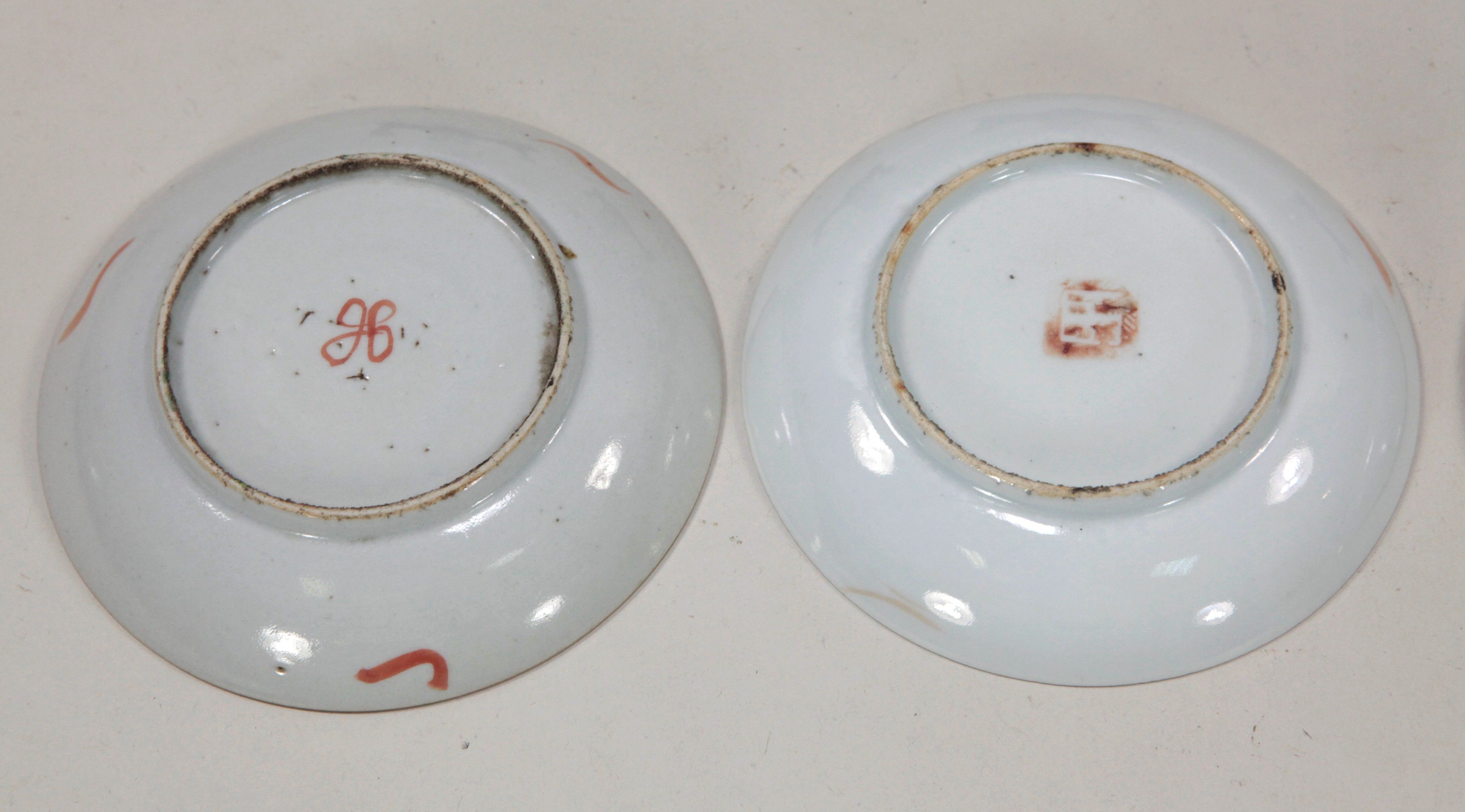 China, Meeting of six small polychrome porcelain plates, with red stamps under the bases. D: 13.5 cm (a chip in one). No postal delivery - MBE or cocolis recommended.