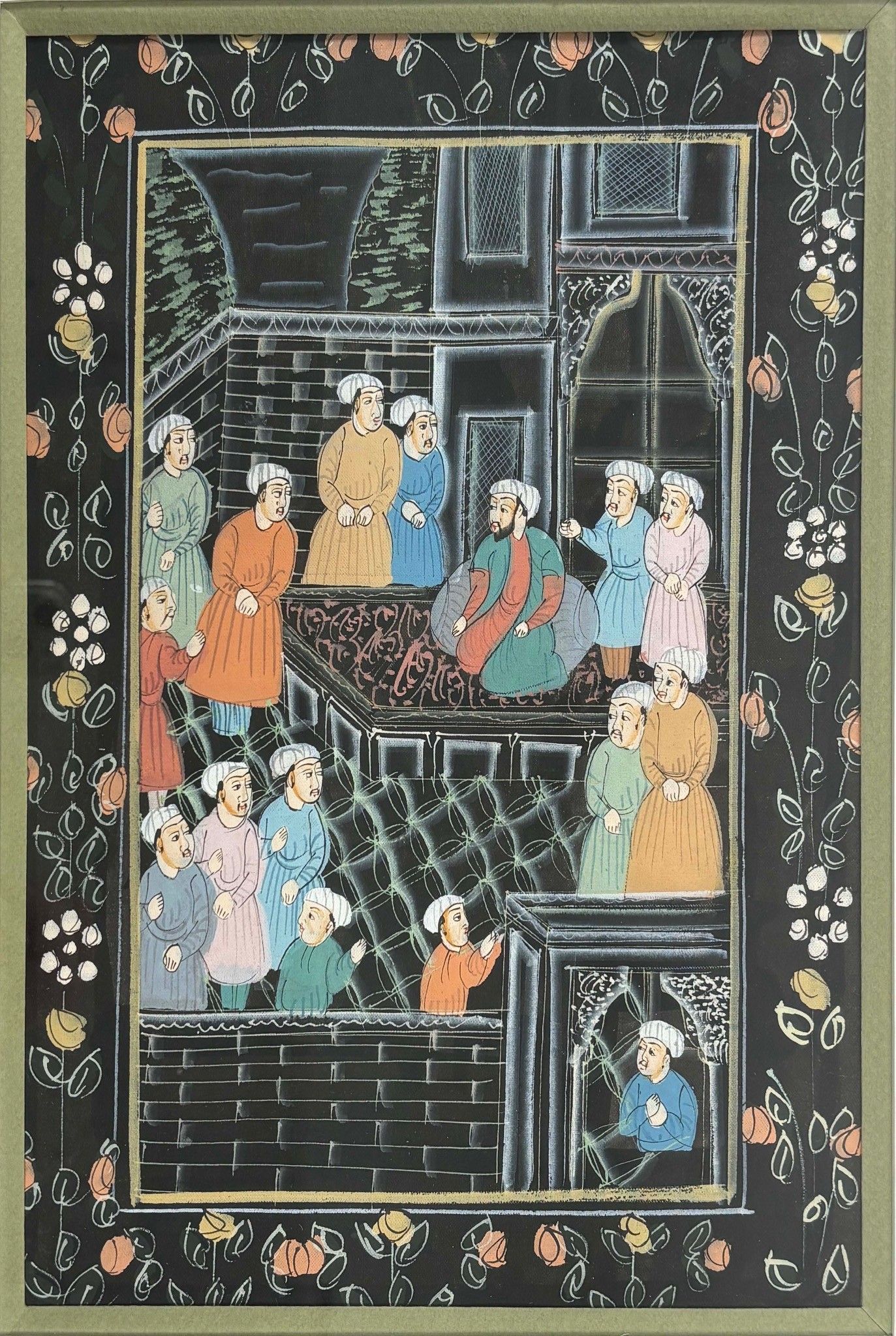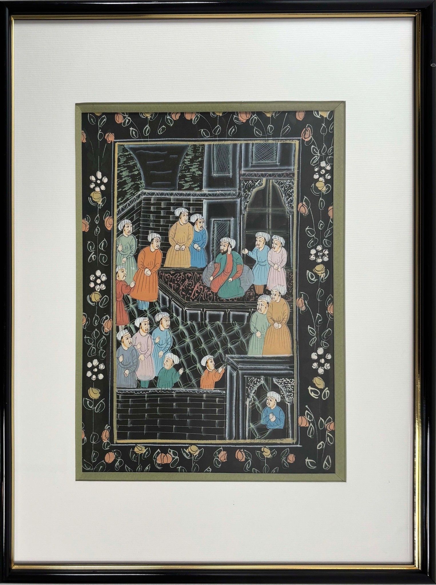 Turkish miniature in painted fabric with black background