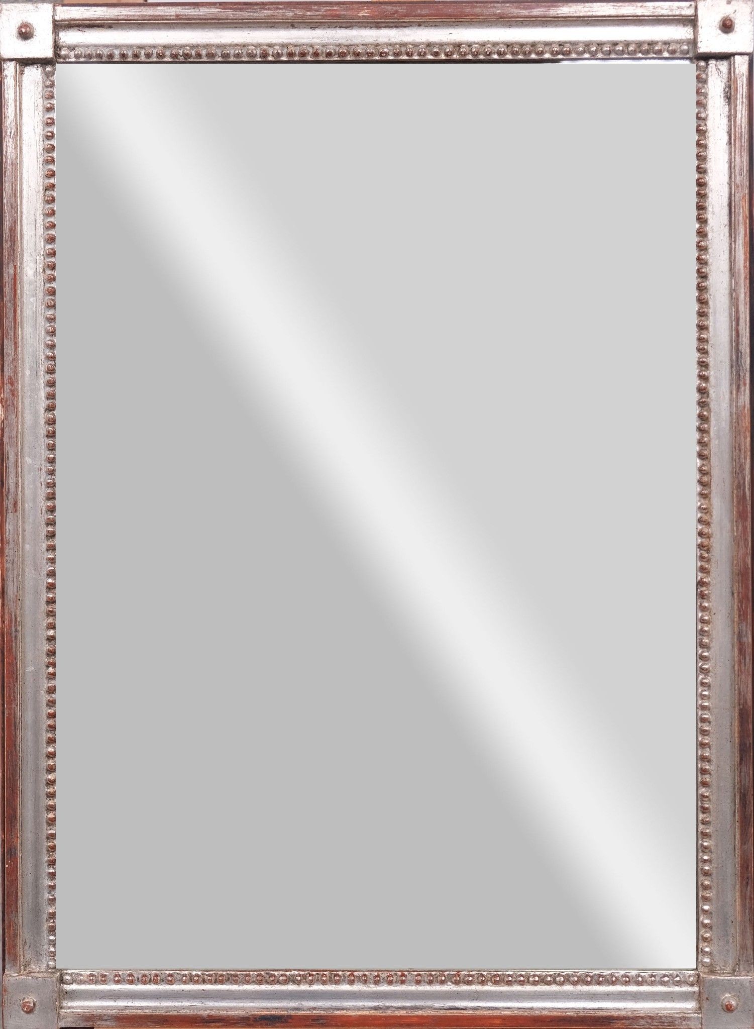 2 rectangular moulded and silvered wood mirrors decorated with a frieze of pearls. 80 x 58 cm and 123 x 34 cm