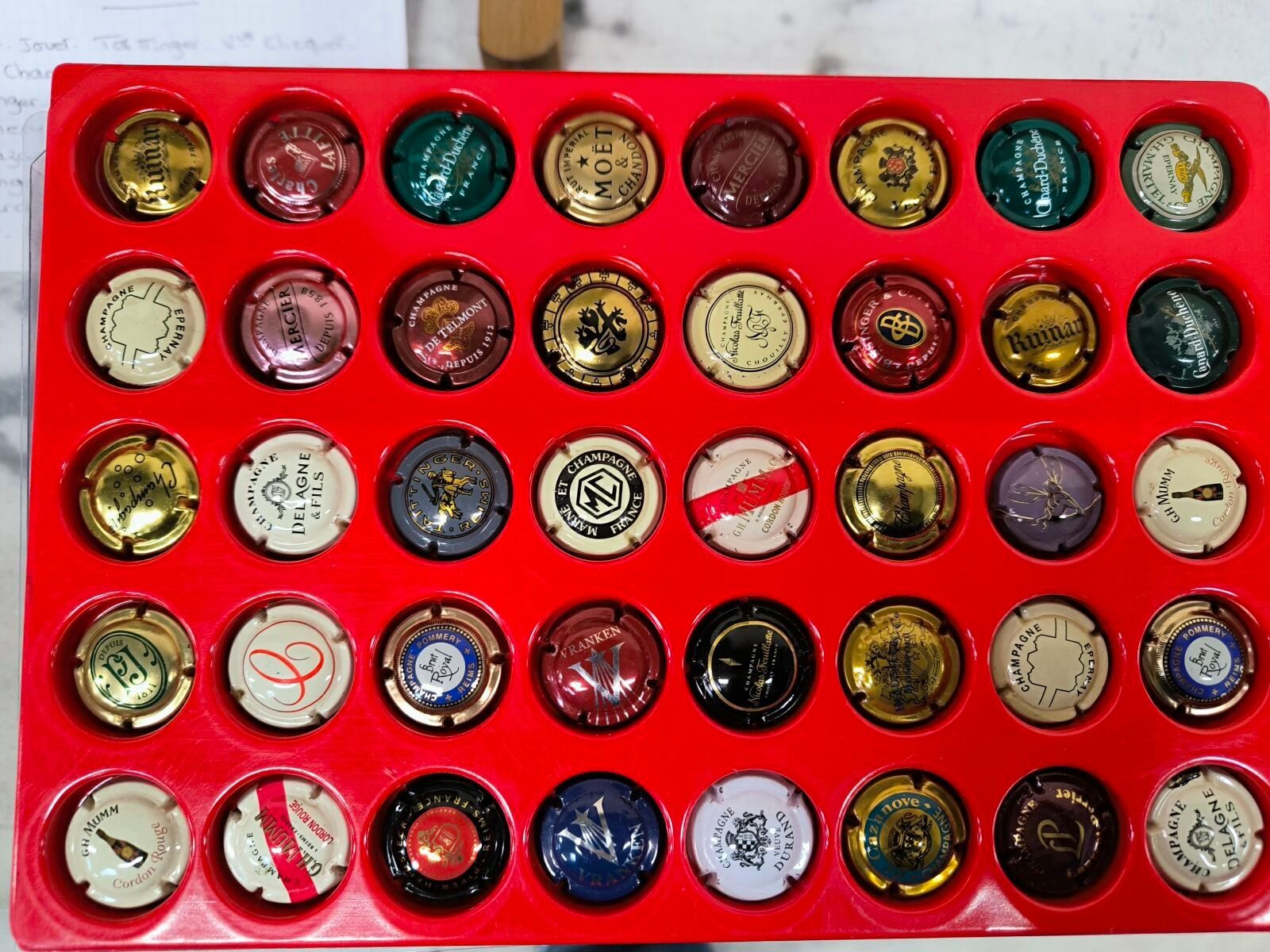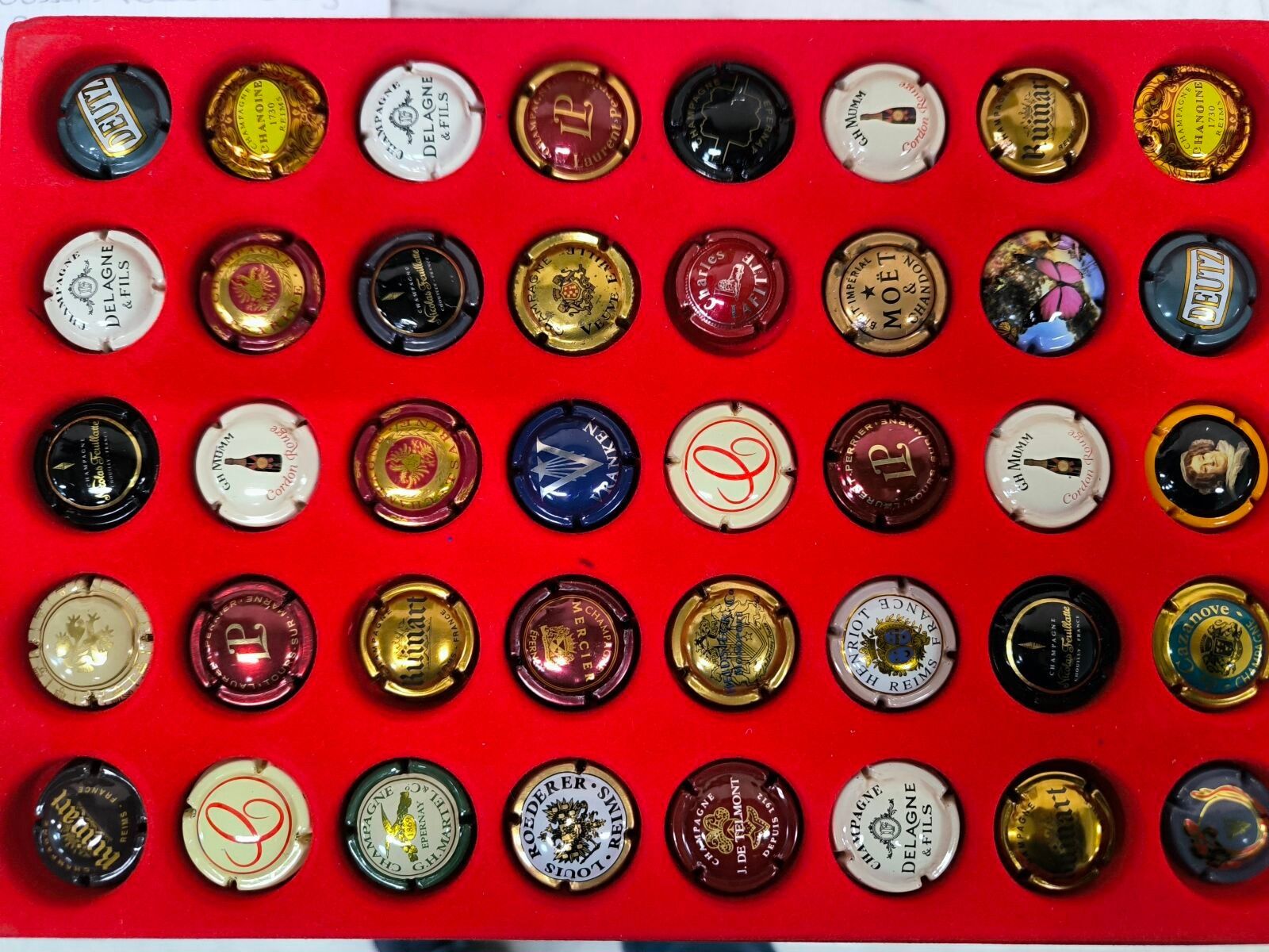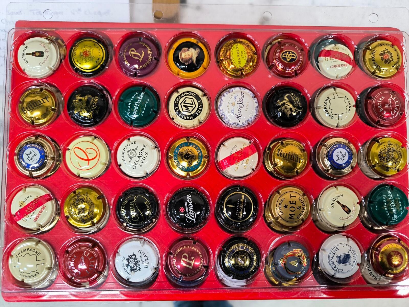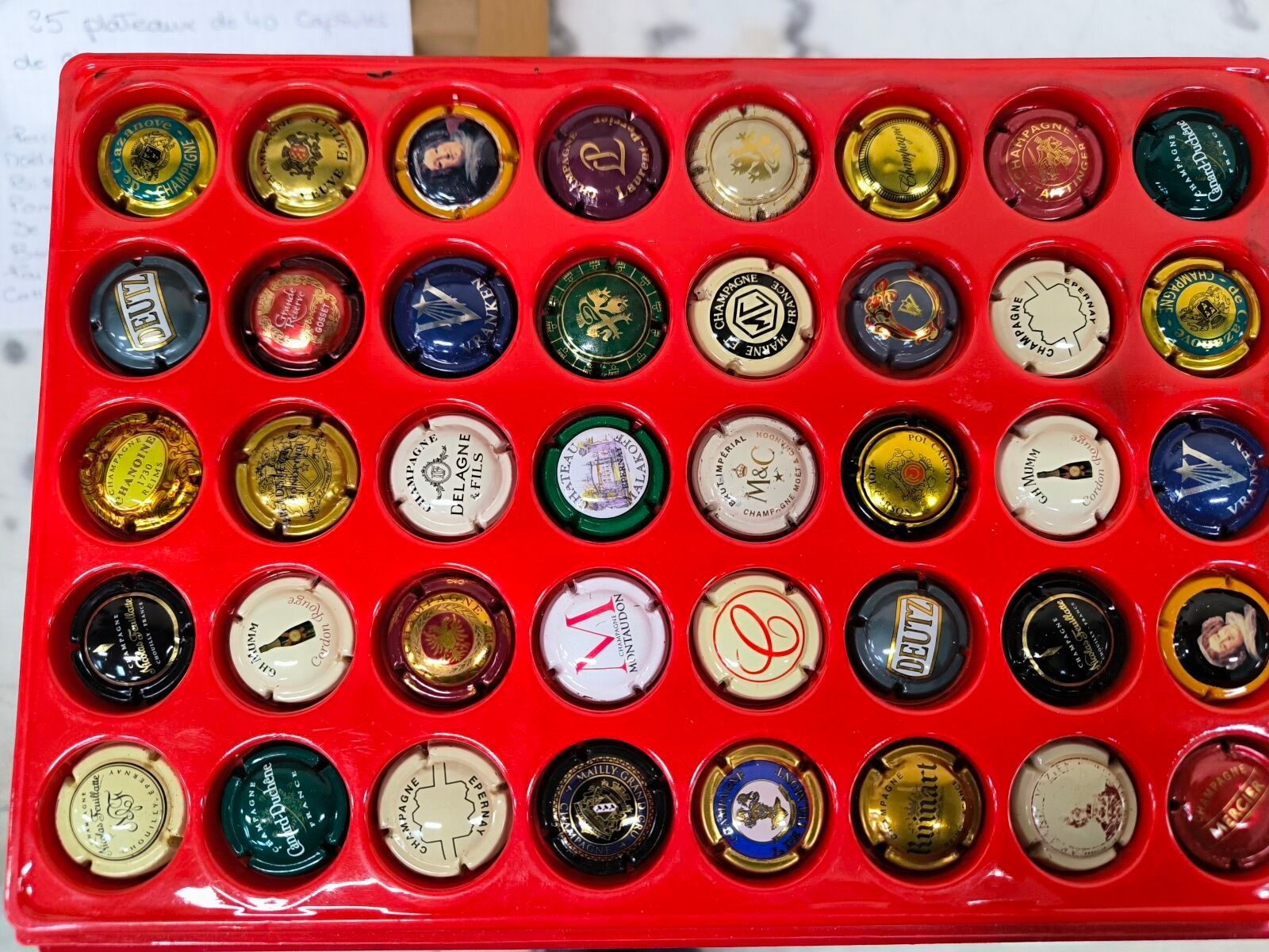 Batch of 1000 champagne capsules in 25 trays of 40 capsules.