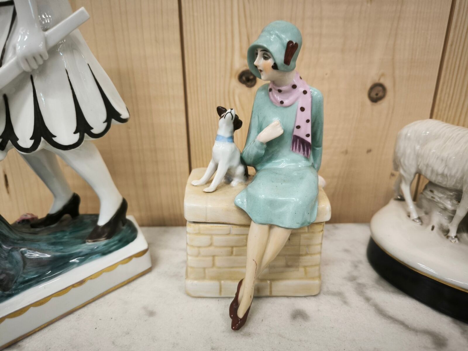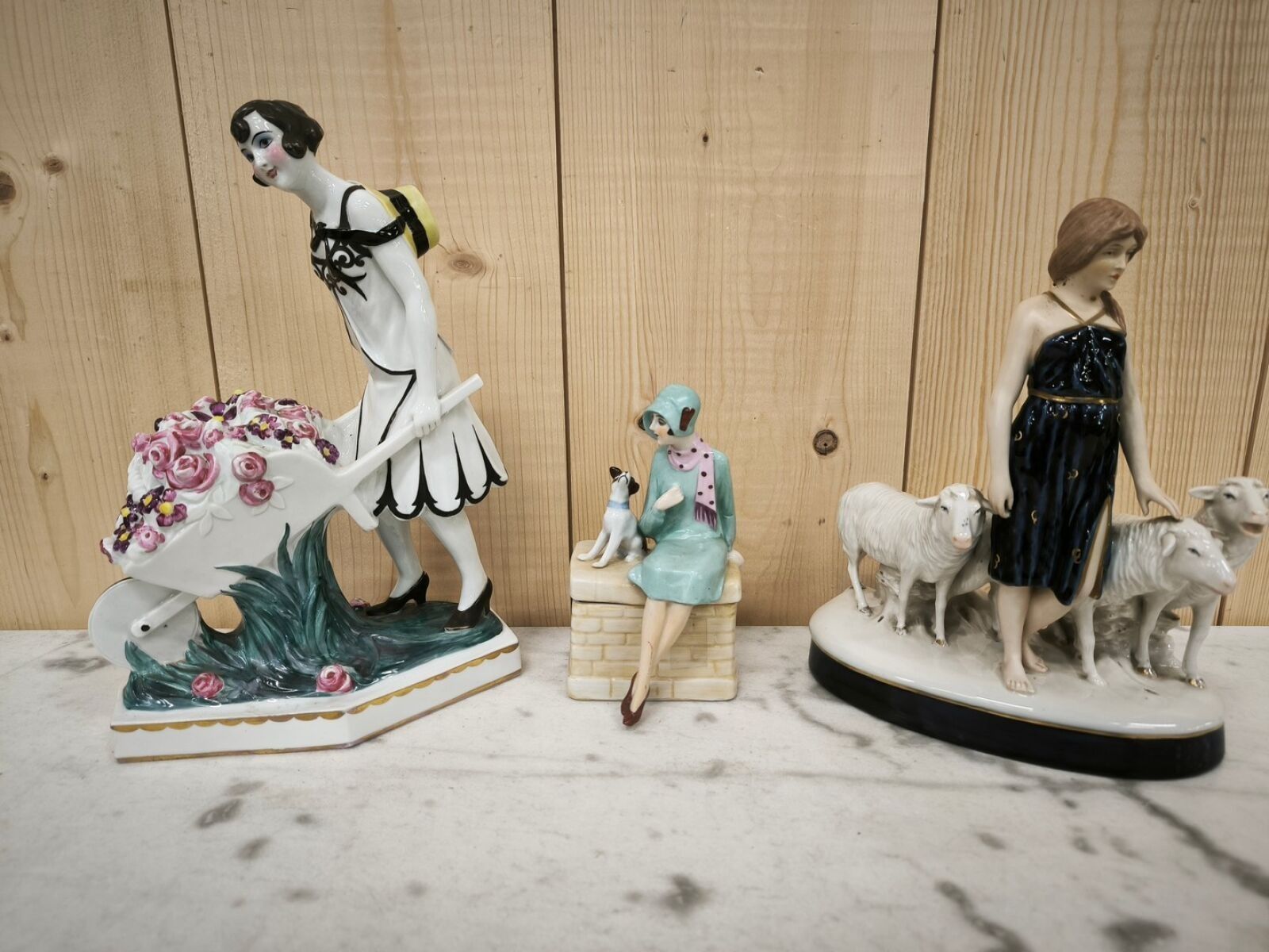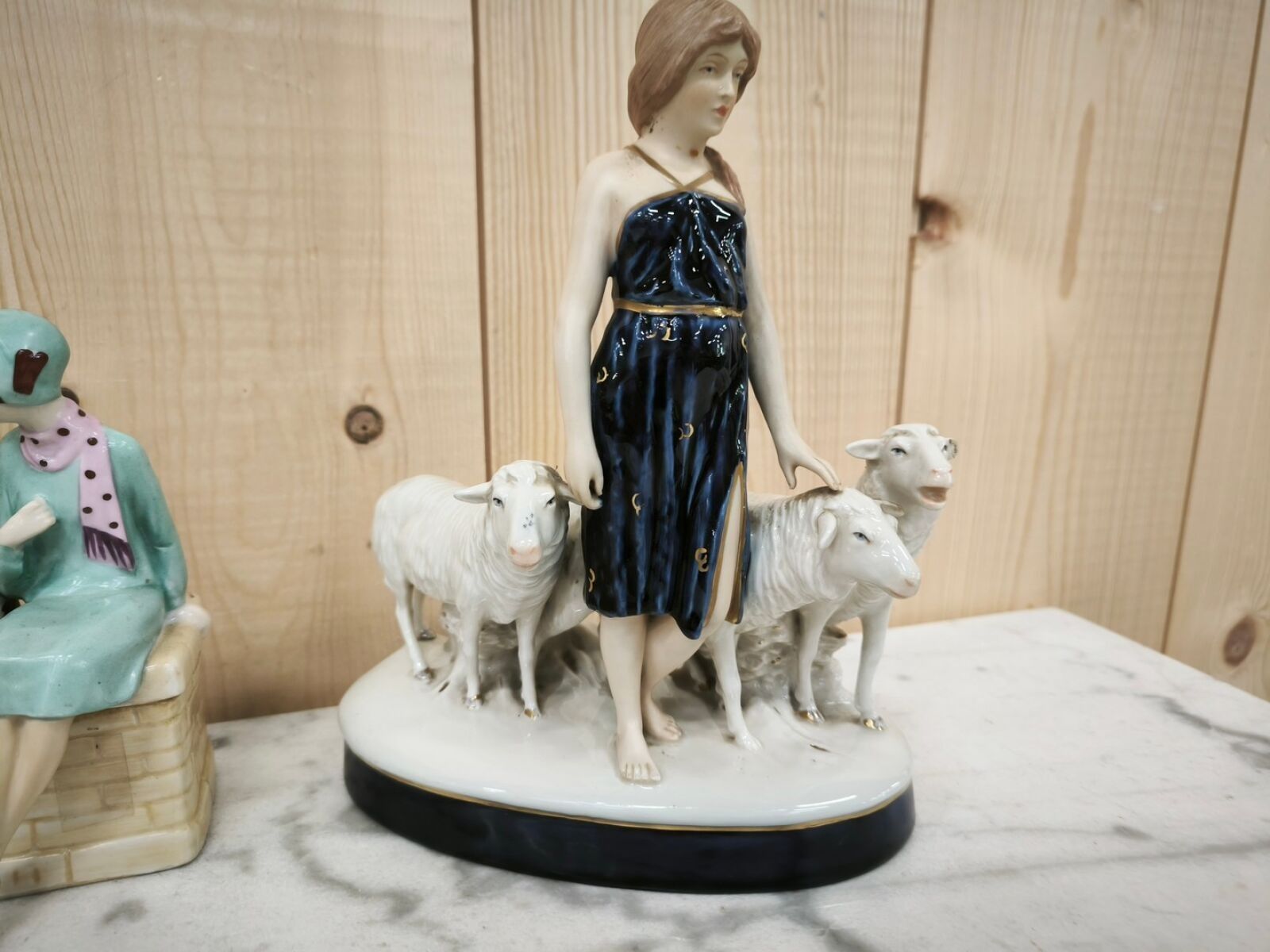 - Royal Dux Bohemia, shepherdess and her sheep, signed, H.: 25 cm; W.: 20 cm, accident to an ear