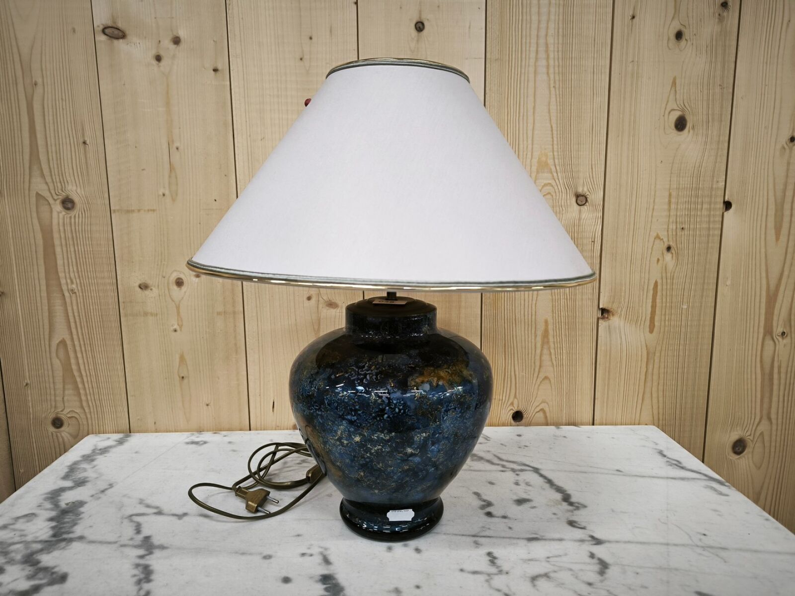LAQUE LINE Lamp base in marbled glass with sequins on a blue…