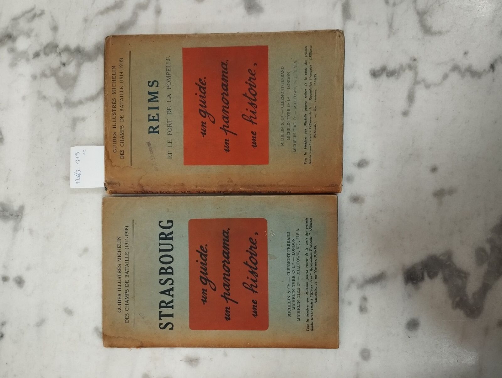 Set of two illustrated Michelin battlefield guides (1914-1918), 1 volume on Reims (1920) and 1 volume on Strasbourg (1921).