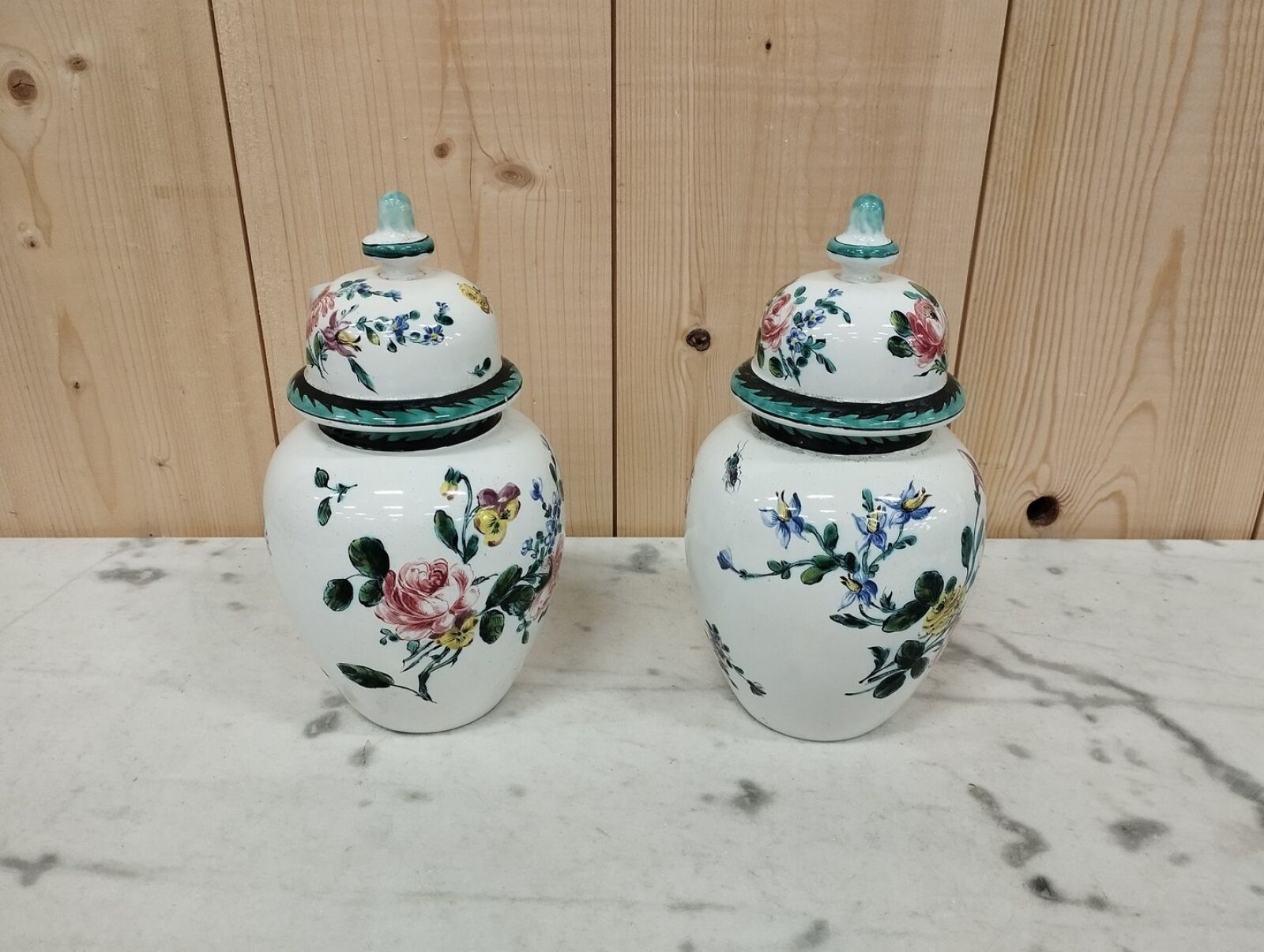 In the style of Veuve Perrin Pair of glazed earthenware cove…