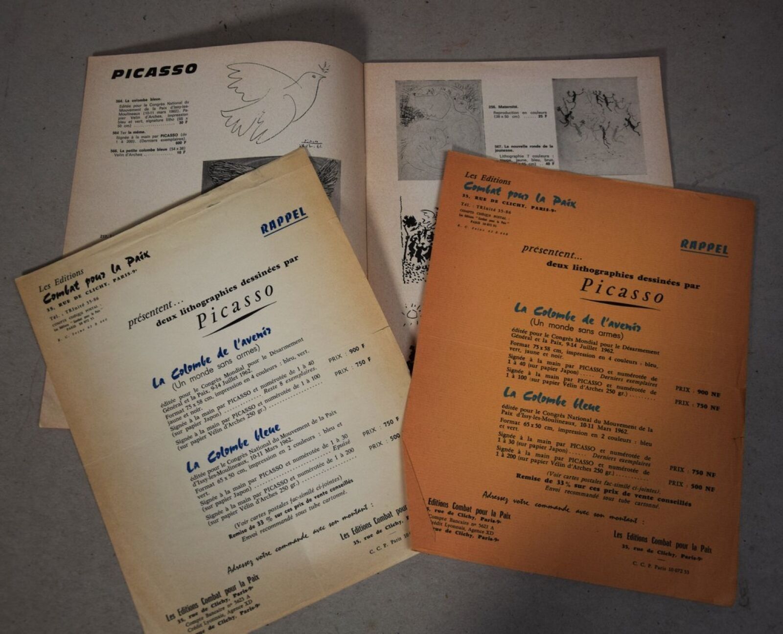 (Publisher's catalogue) Combat pour la paix. Art and peace, catalogues of works by Picasso, Lurçat, Picart-Le-Doux, etc., plates, prints, objects, 2 inserts.