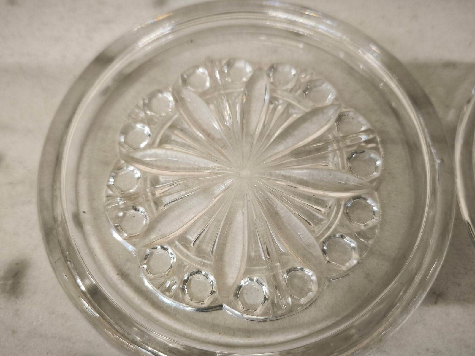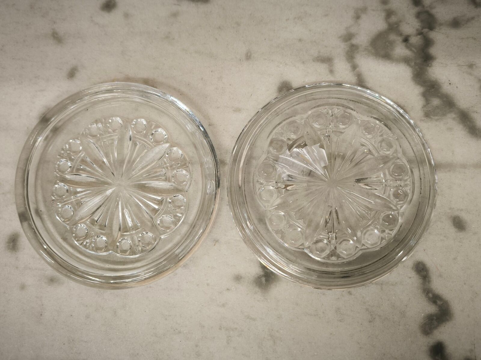 Pair of moulded crystal coasters.