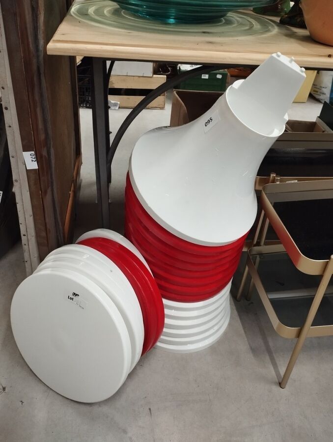 Suite of 3 white stools (complete) and 2 red stools (complete) Tam-Tam model in plastic.