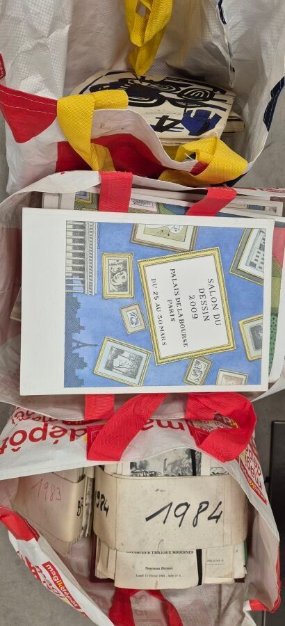 Set of 3 book bags including auction catalogues and catalogues for the Salon du Dessin.
