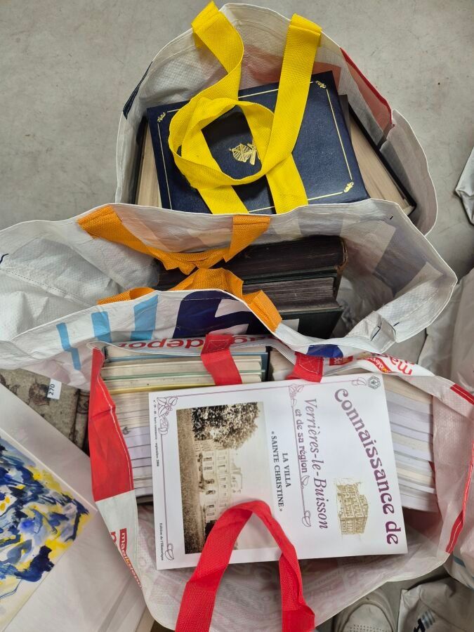 Set of 3 bags of various books, including encyclopaedias, and a series of "Connaissance de Verrière-le-buisson".