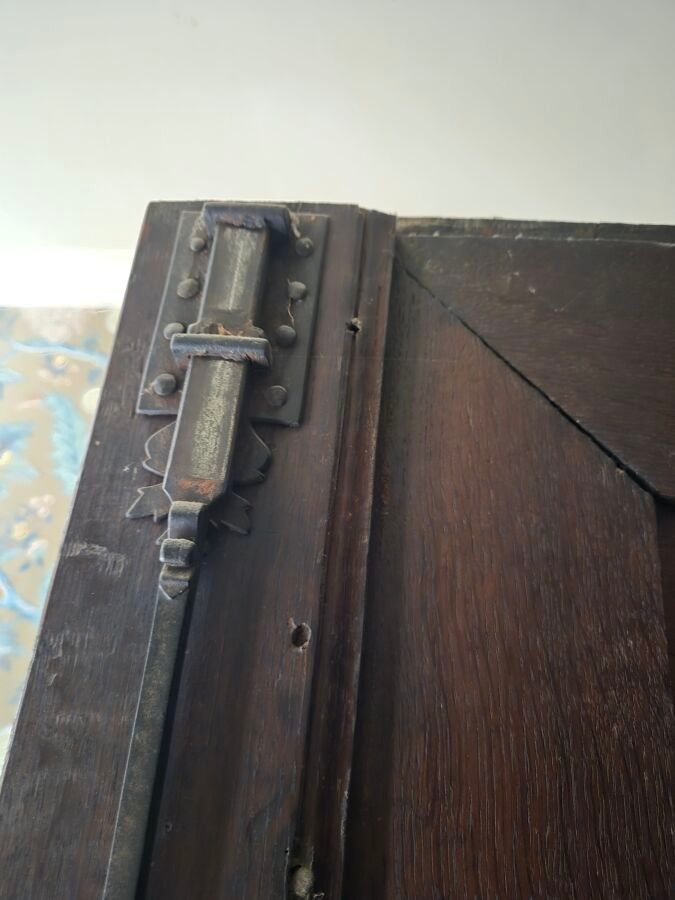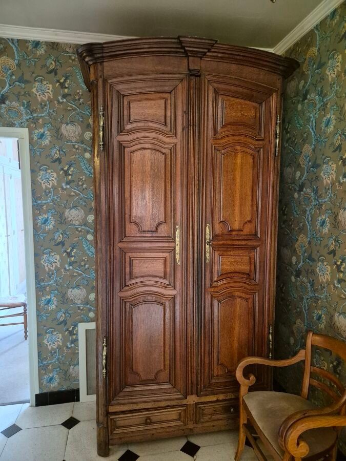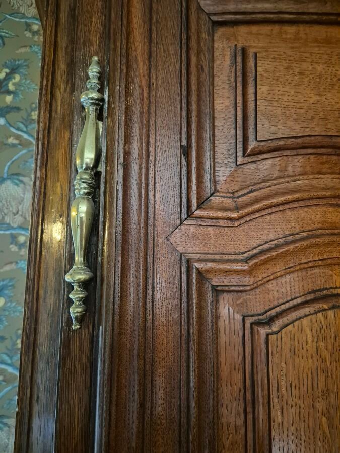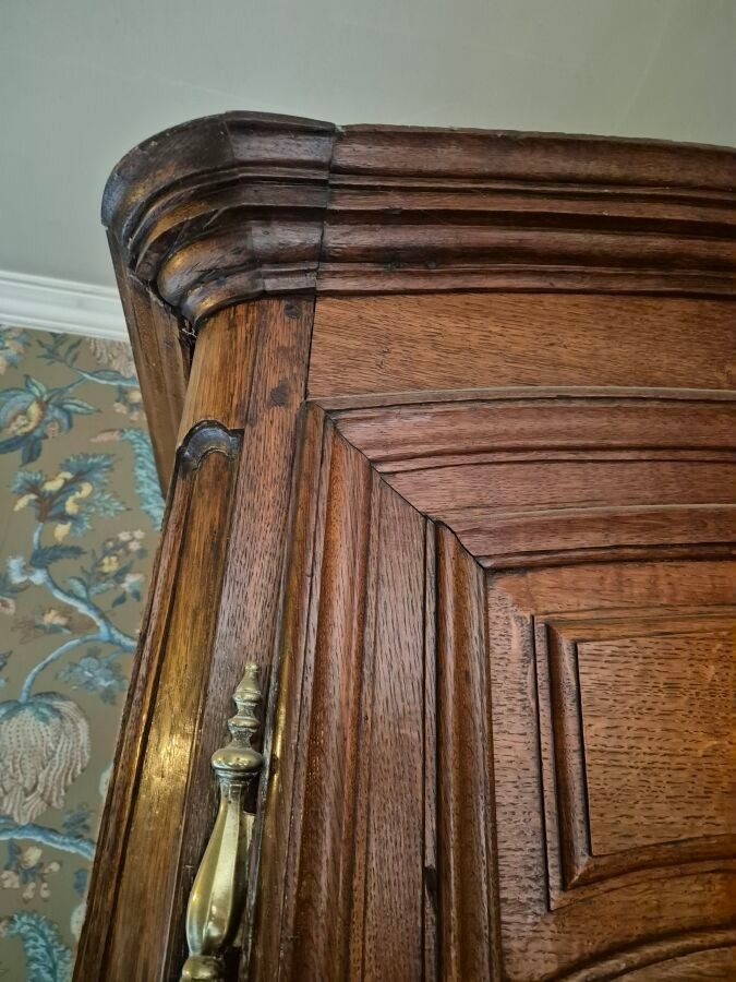 -Tall moulded oak cupboard with two doors and two drawers, Flanders, late 18th century