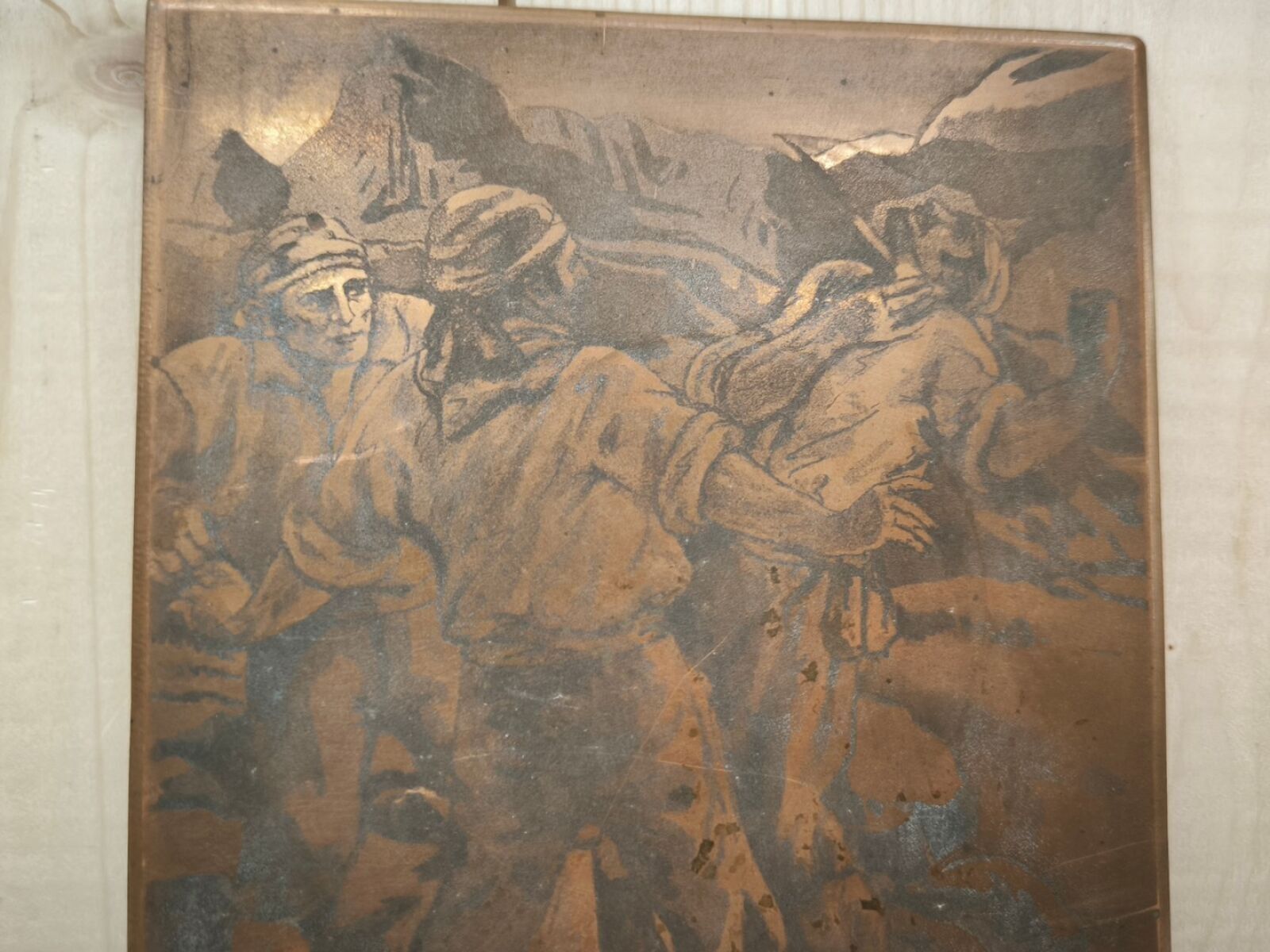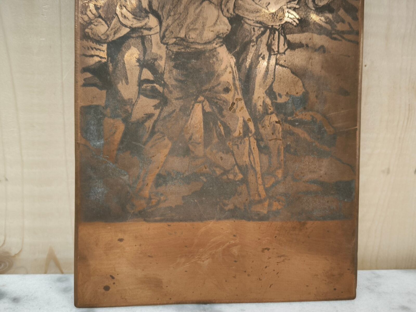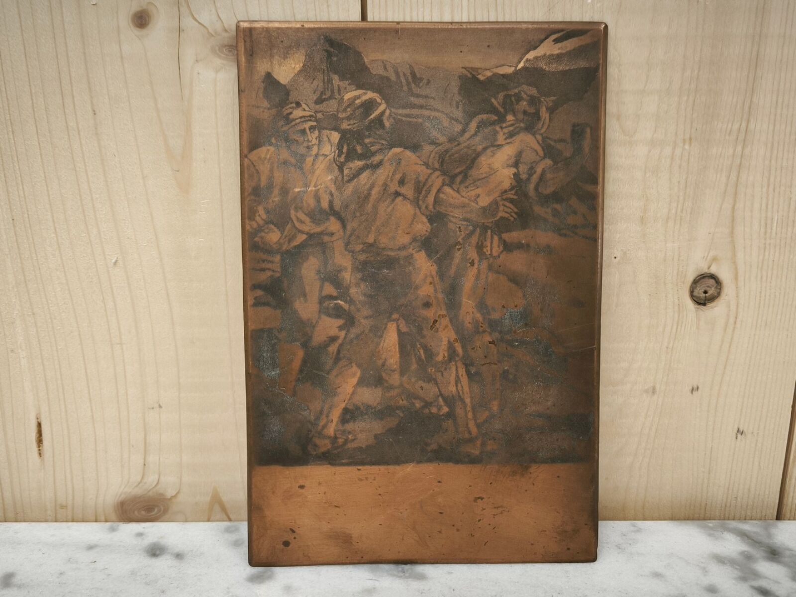 Copper matrix engraved with a combat scene