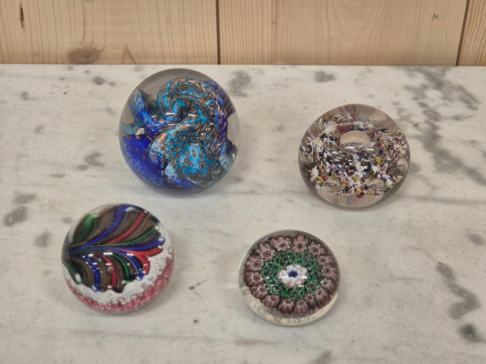 Set of 4 sulphur balls. H. 4.5 to 8 cm