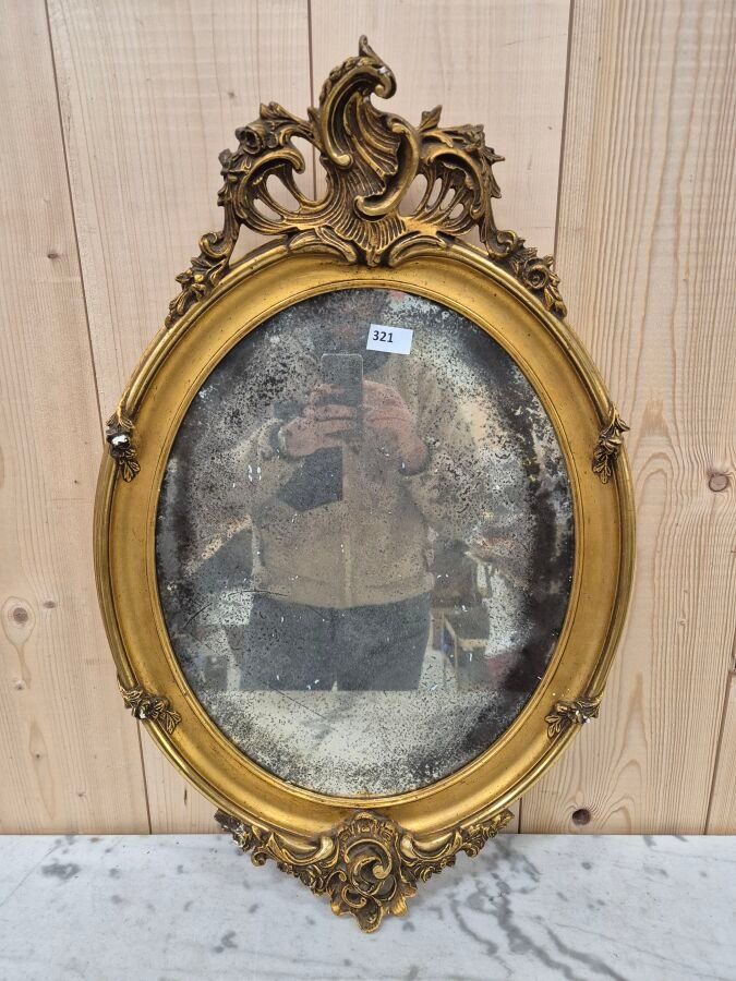 Wood and gilded stucco oval mirror with Rocaille-style decor…