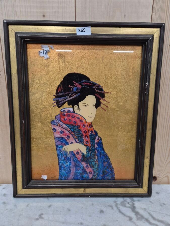 MICHEL ZELLER (20th) Geisha Painting mounted under glass, si…
