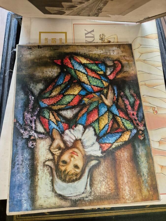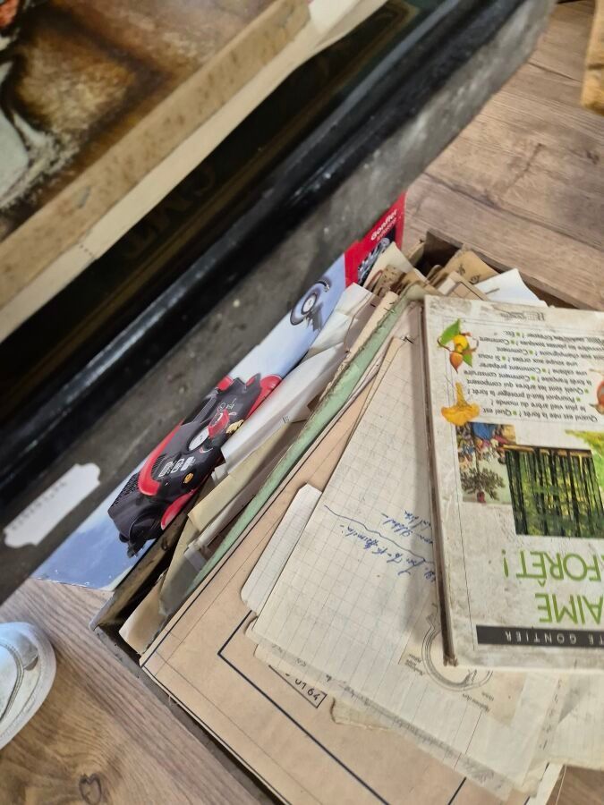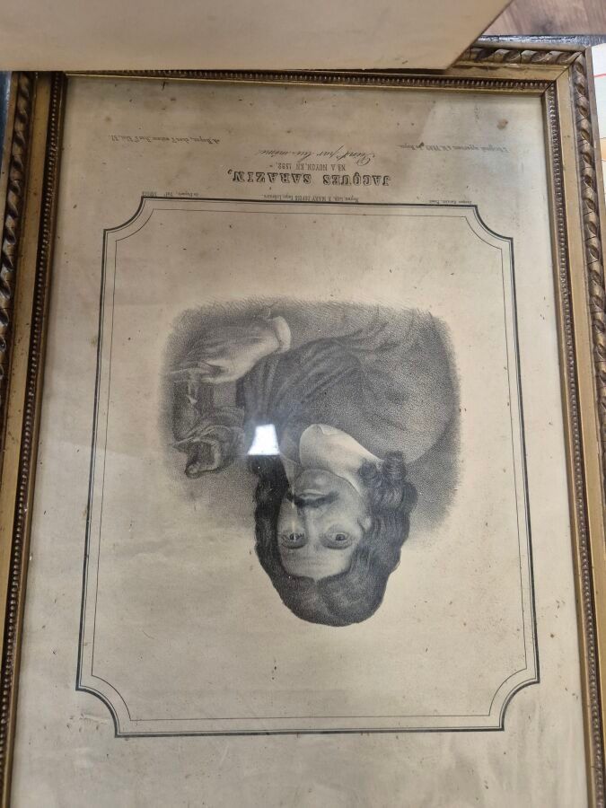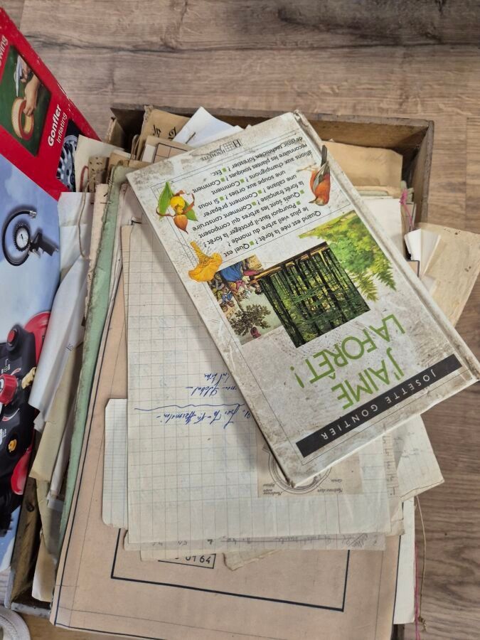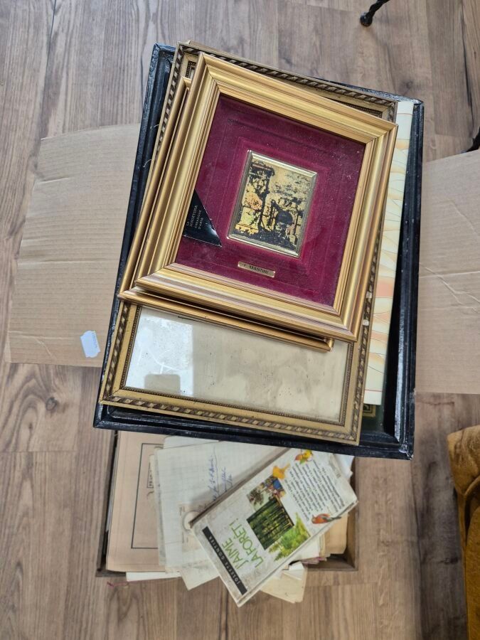 Lot consisting of old private papers, including notarial papers, old small decorative dolls and various framed items