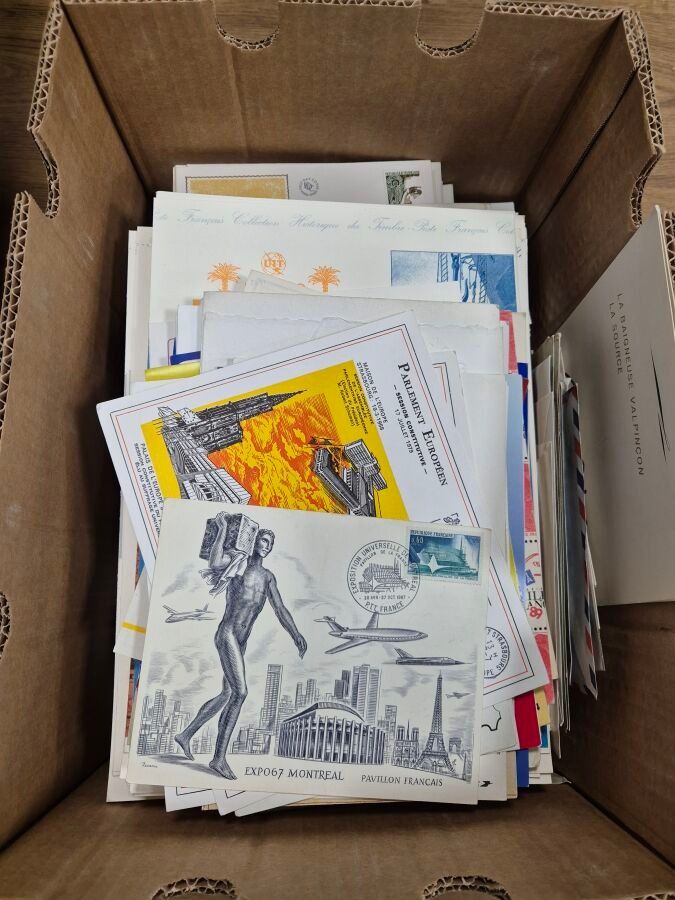 Philately France Box containing several hundred first-day covers, together with a hundred or so philatelic sheets and booklets.