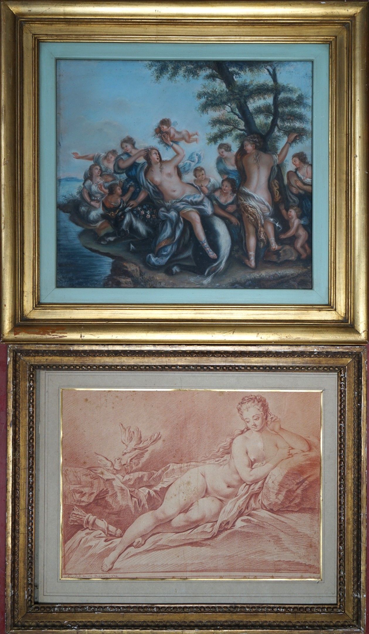 20th century French SCHOOL. The Abduction of Europa. Pastel (44 x 49 cm) and Venus allanguie, engraving (restorations).