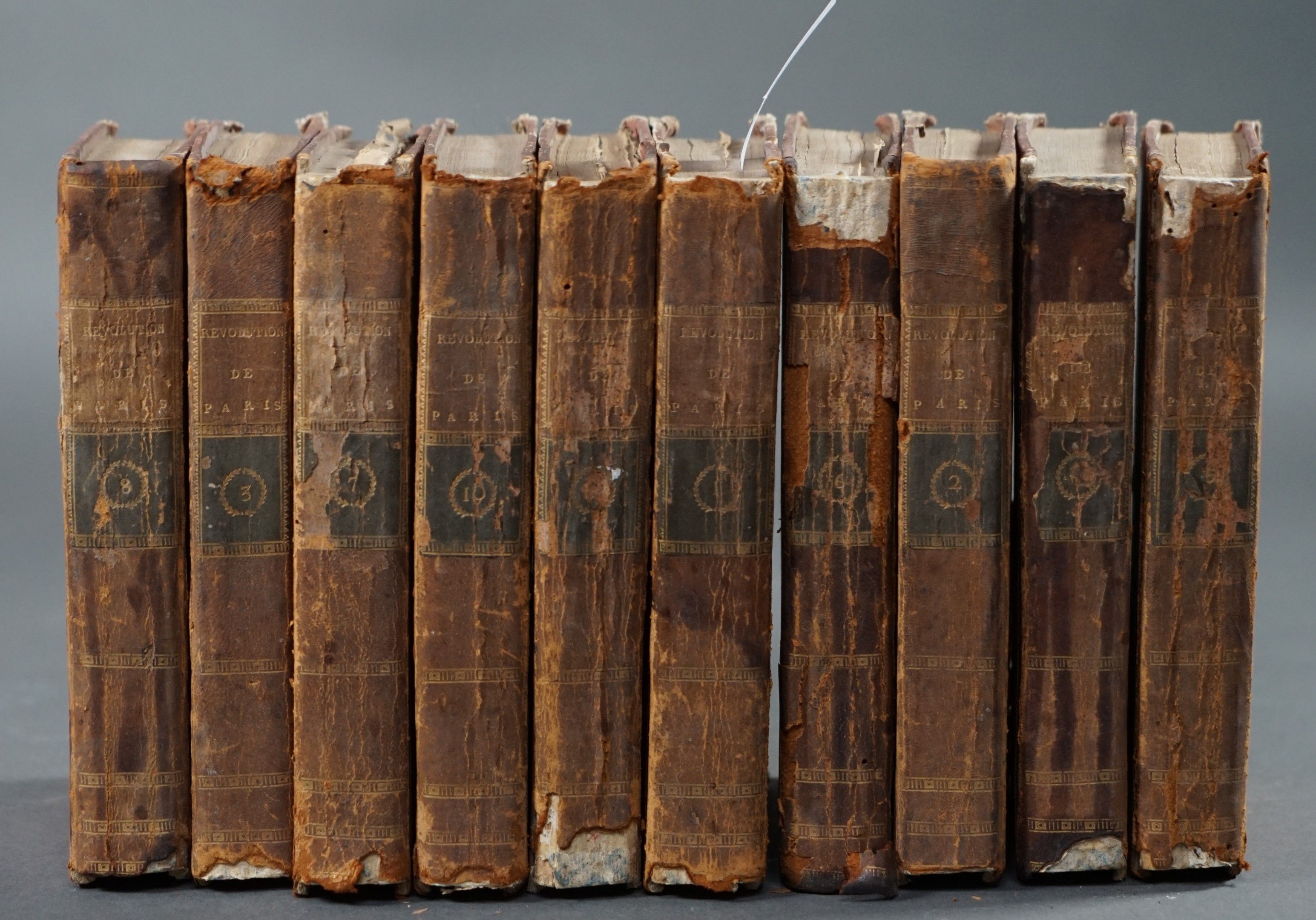 PRUDHOMME Révolutions de Paris, dédiées à la nation et au district des petits augustins. Imprimerie des révolutions, rue Jacob à Paris, 1790. Ten volumes (wear).