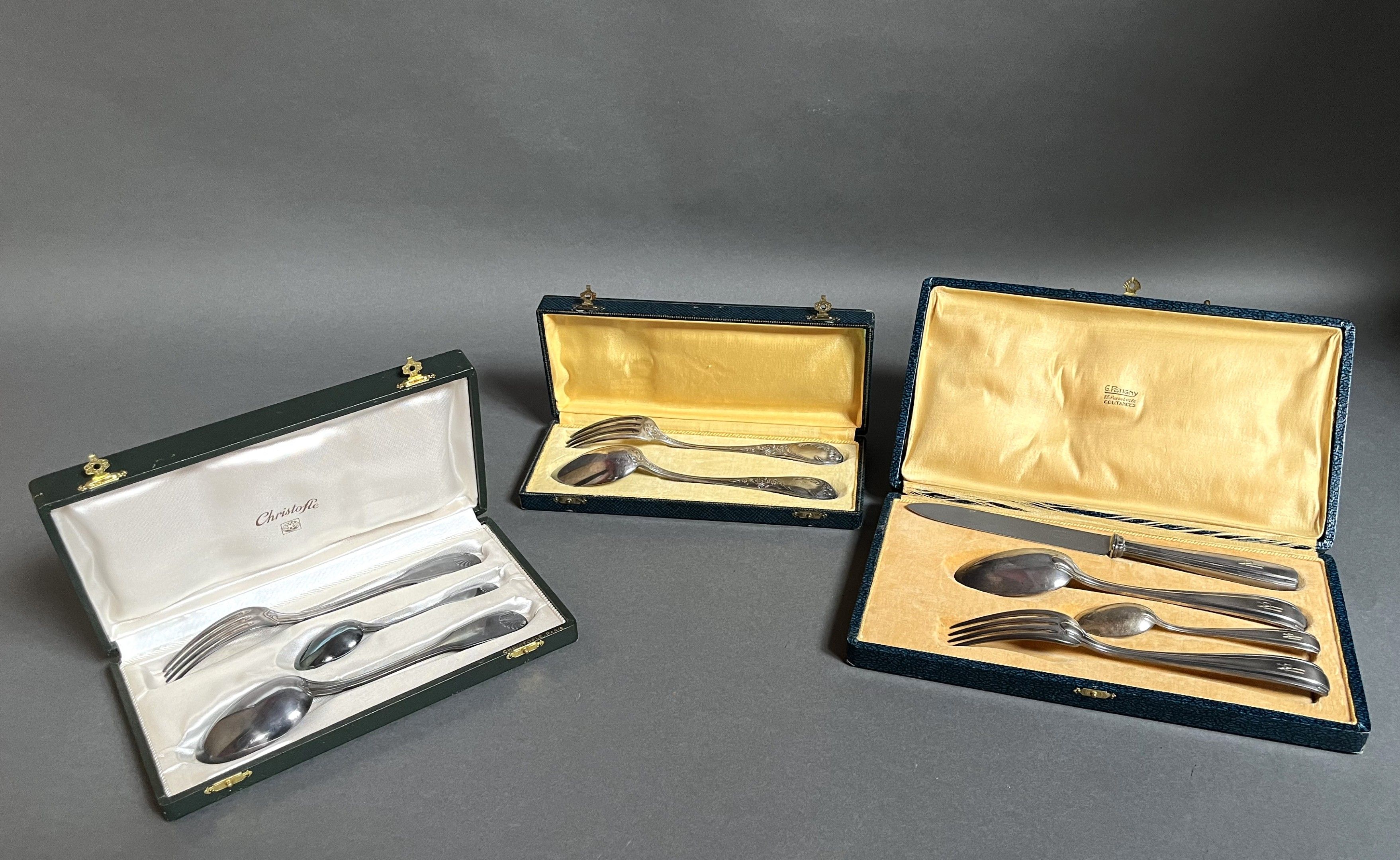 Set of silver-plated cutlery with rocaille decoration, a BOULENGER art deco cutlery set and a CHRISTOFLE shell cutlery set, in a CHRISTOFLE PARIS presentation case.