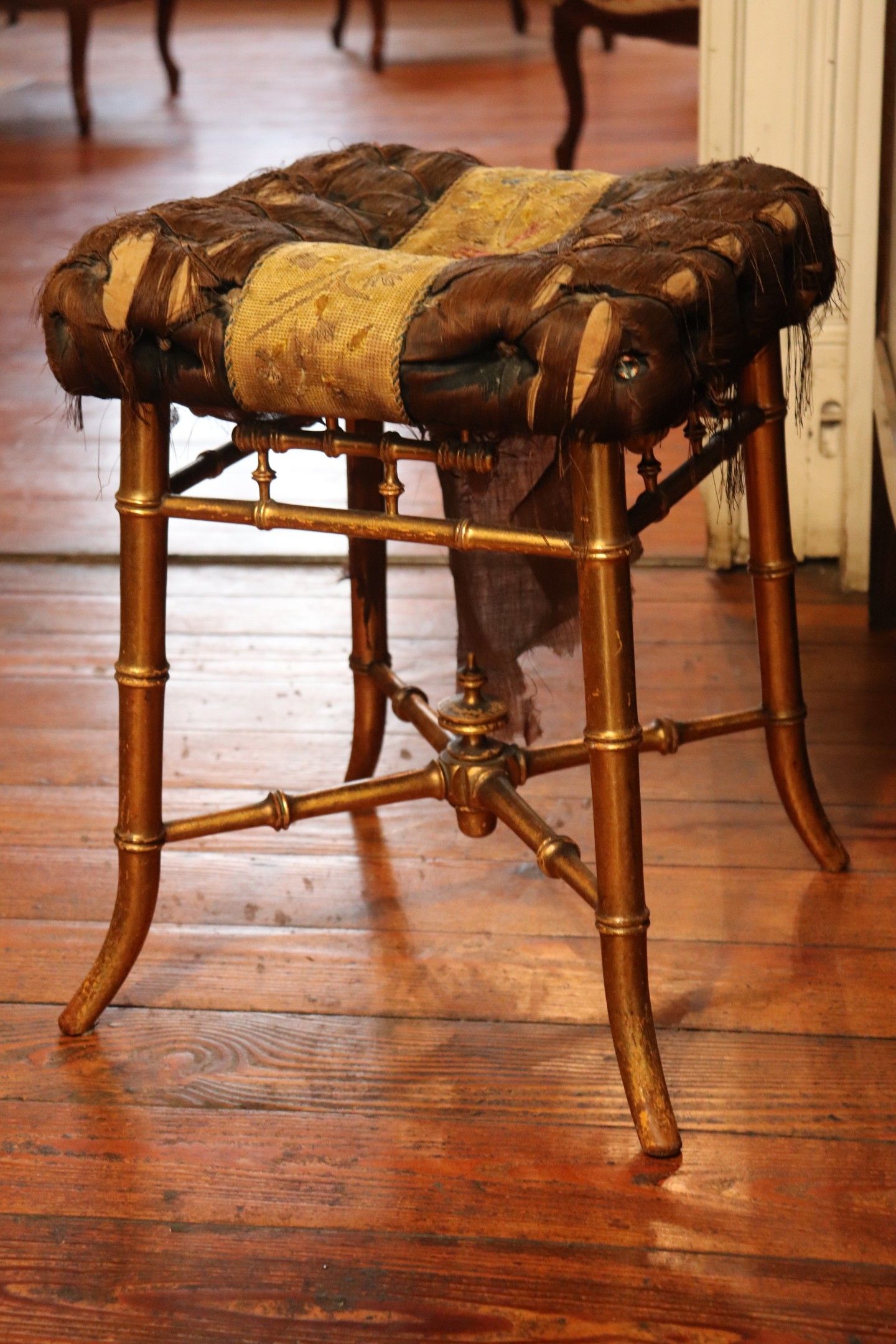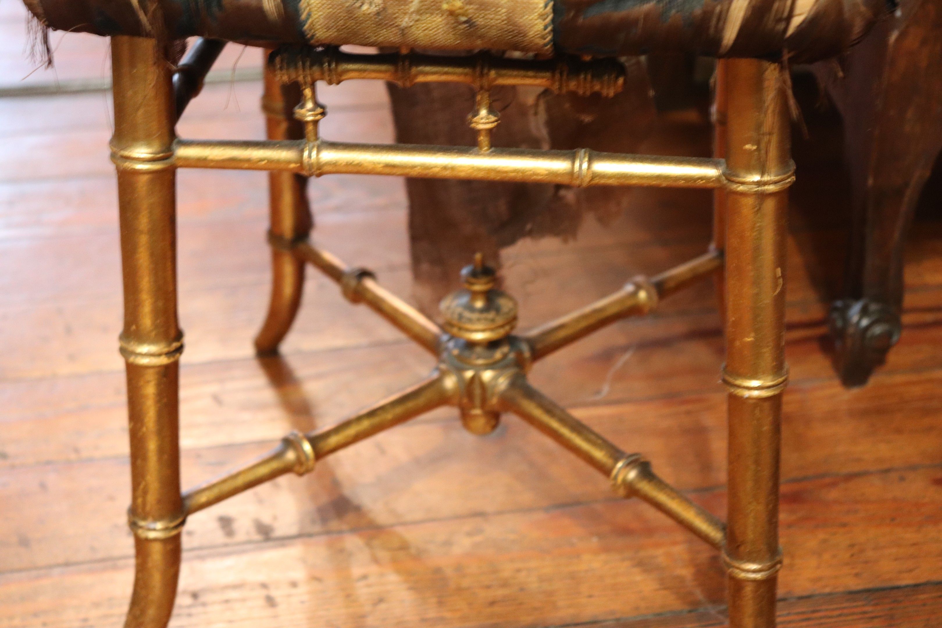 Gilded bamboo stool, silk seat (damaged), Napoleon III.