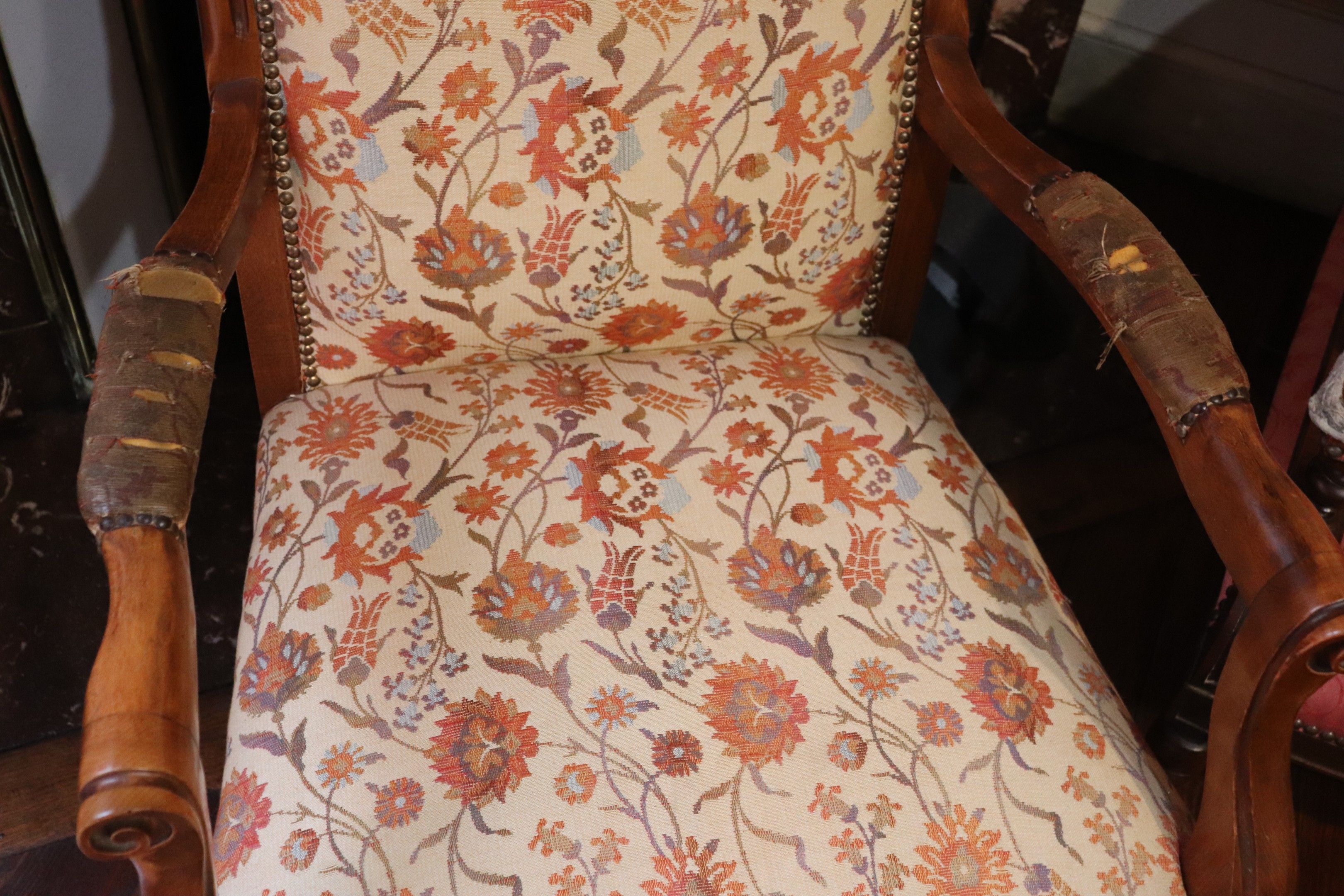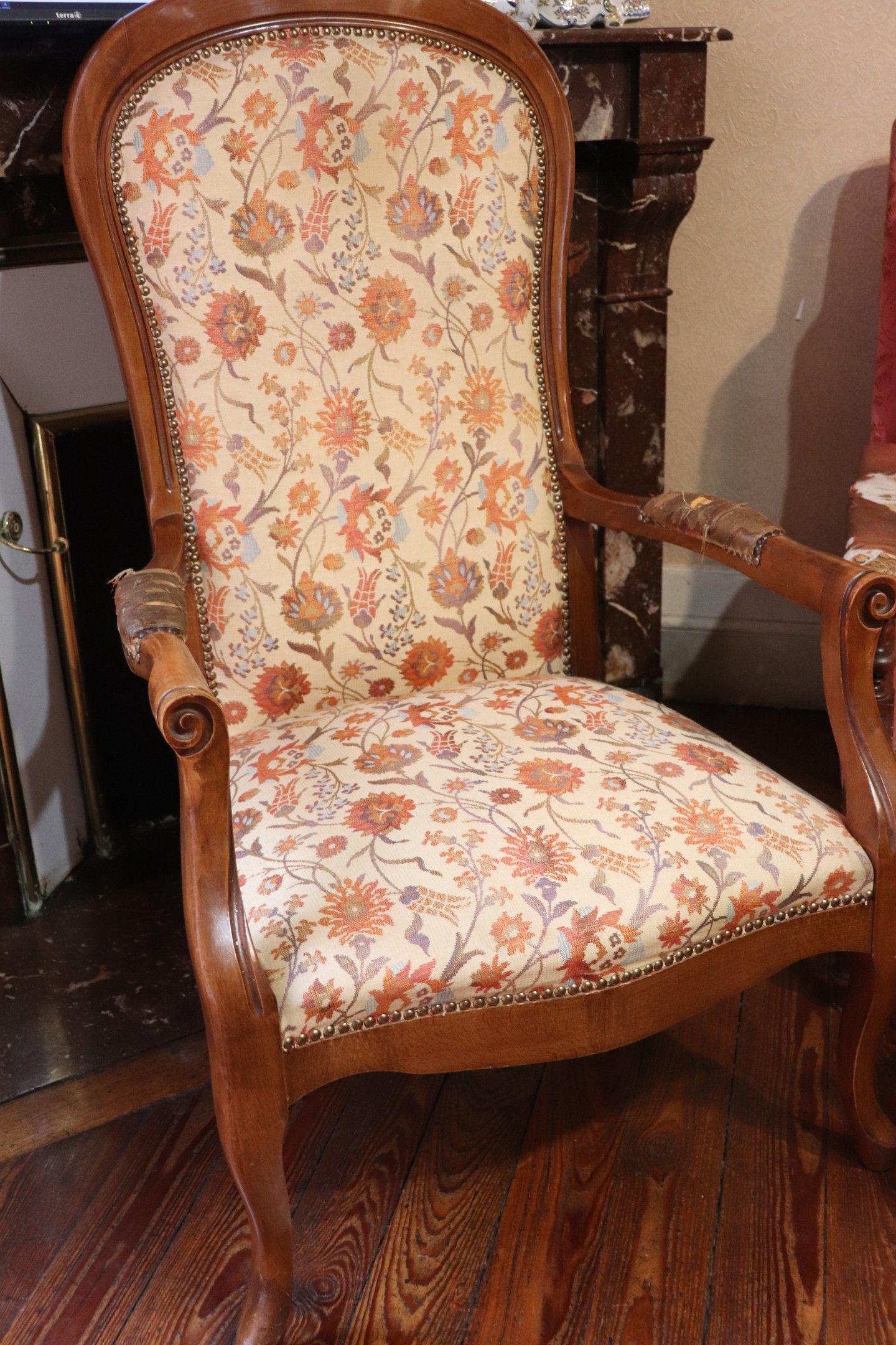 Set of four chairs: an English armchair, a Voltaire armchair…