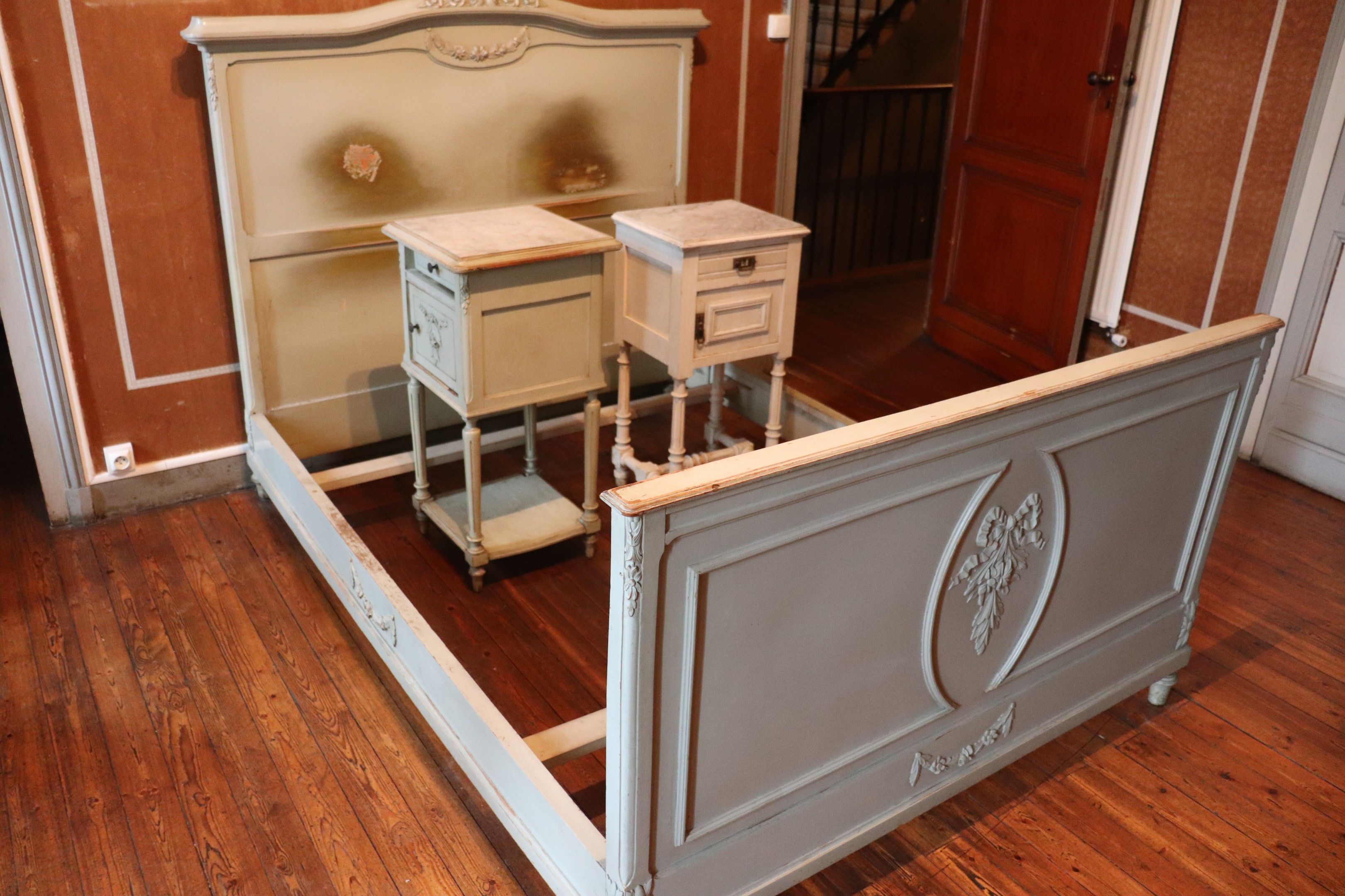 Louis XVI style bedroom in grey champi comprising a 140 cm w…